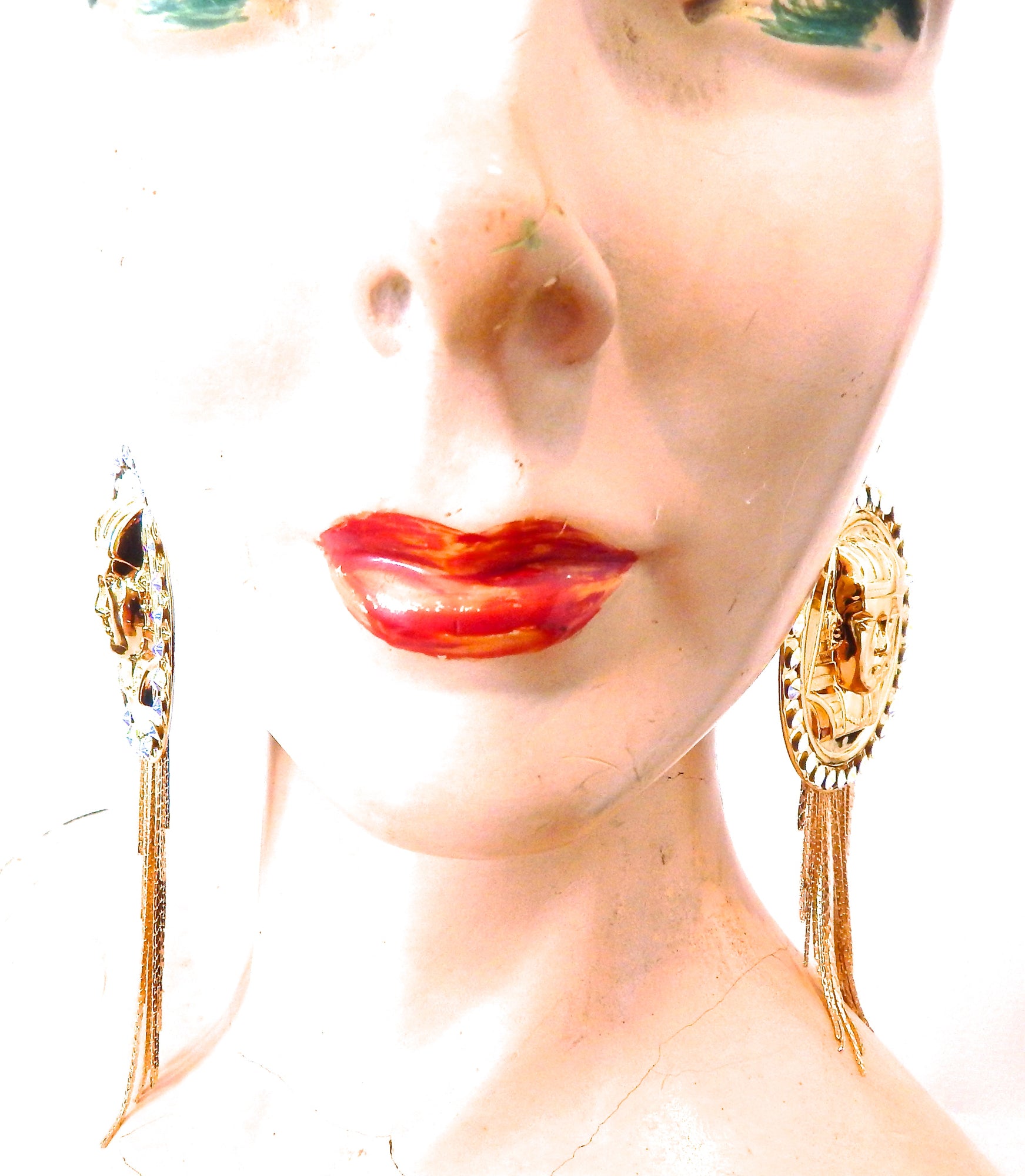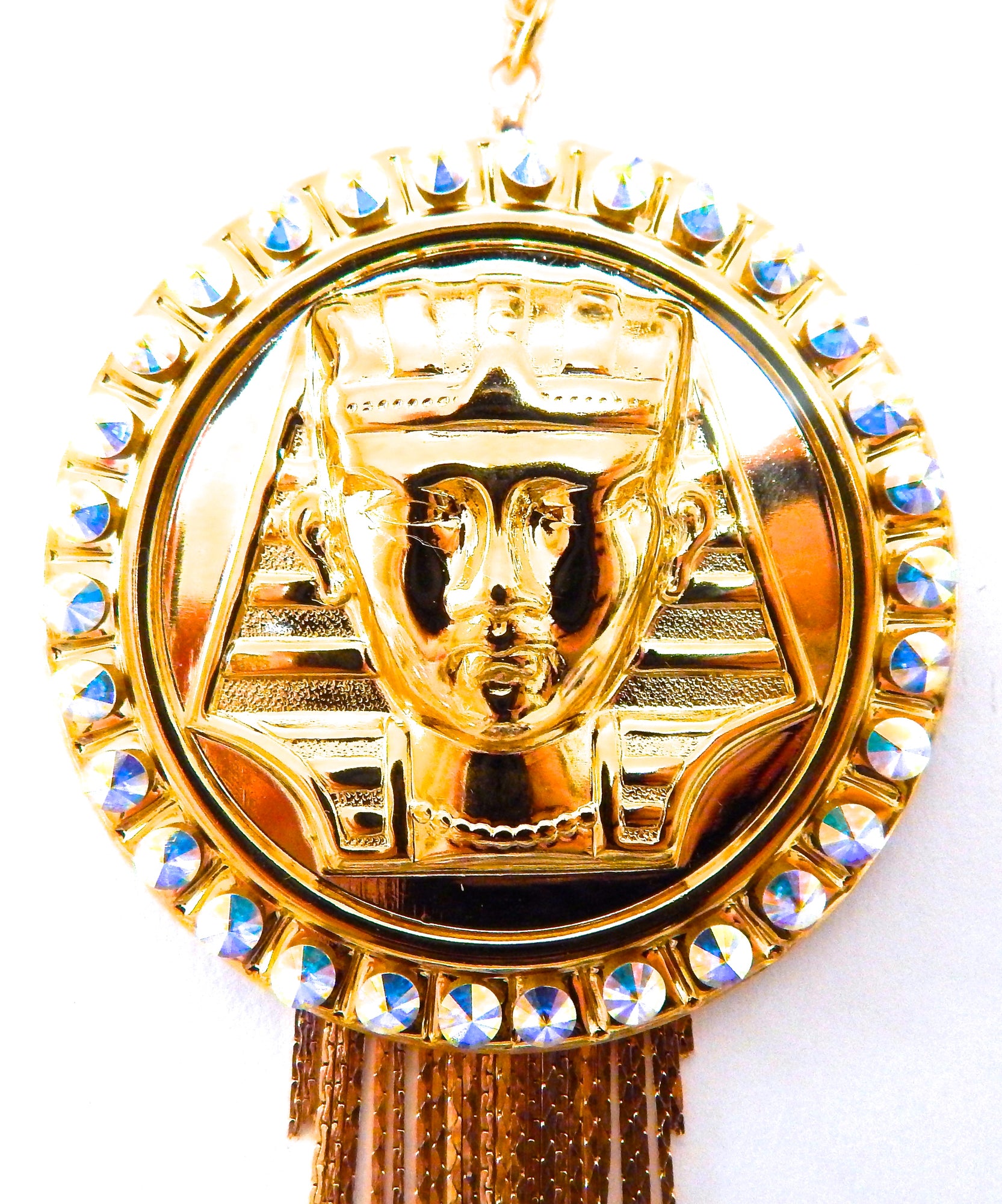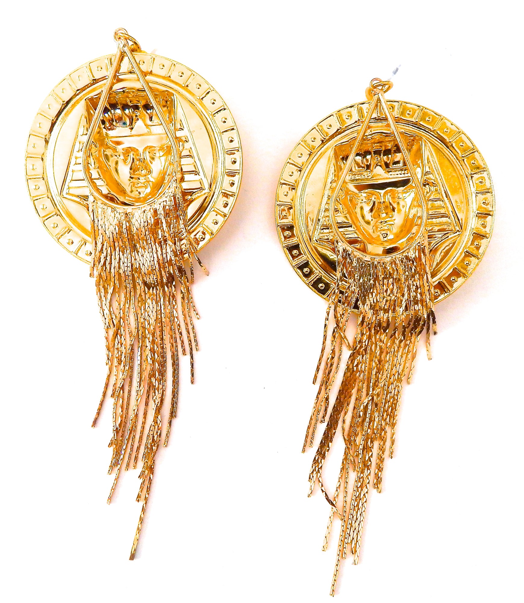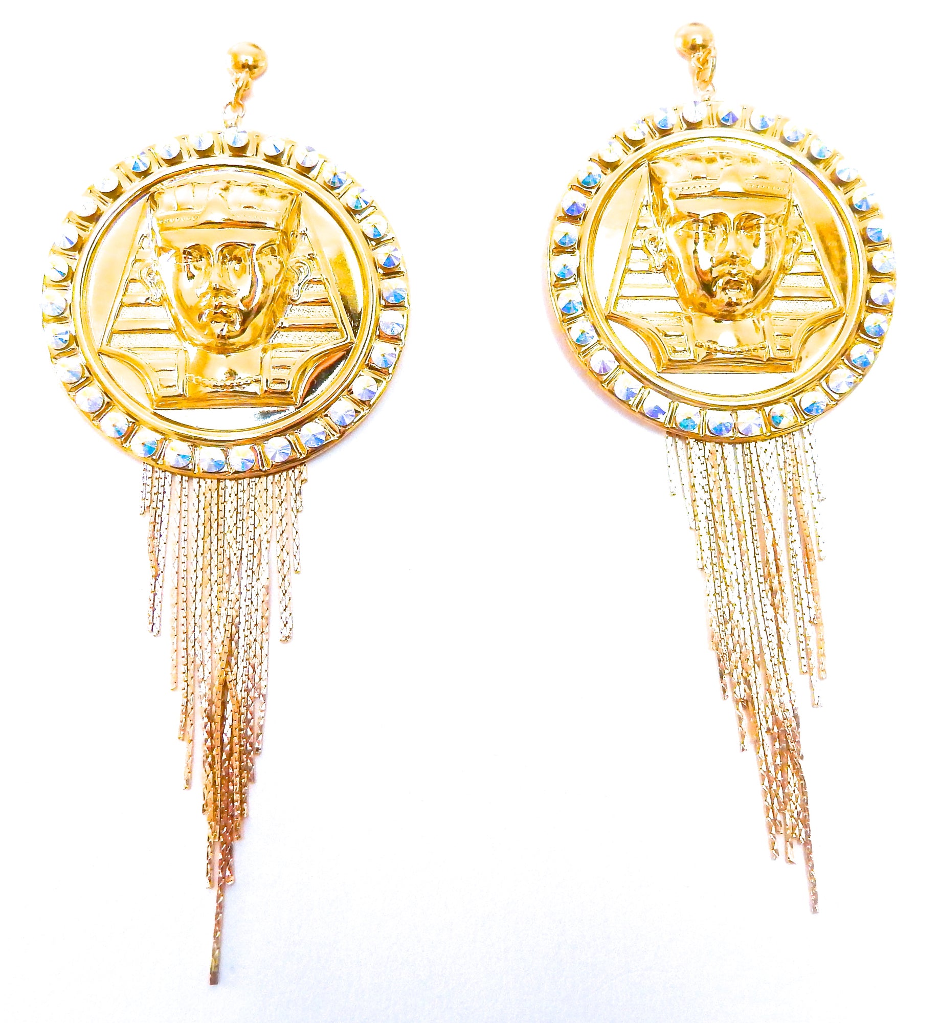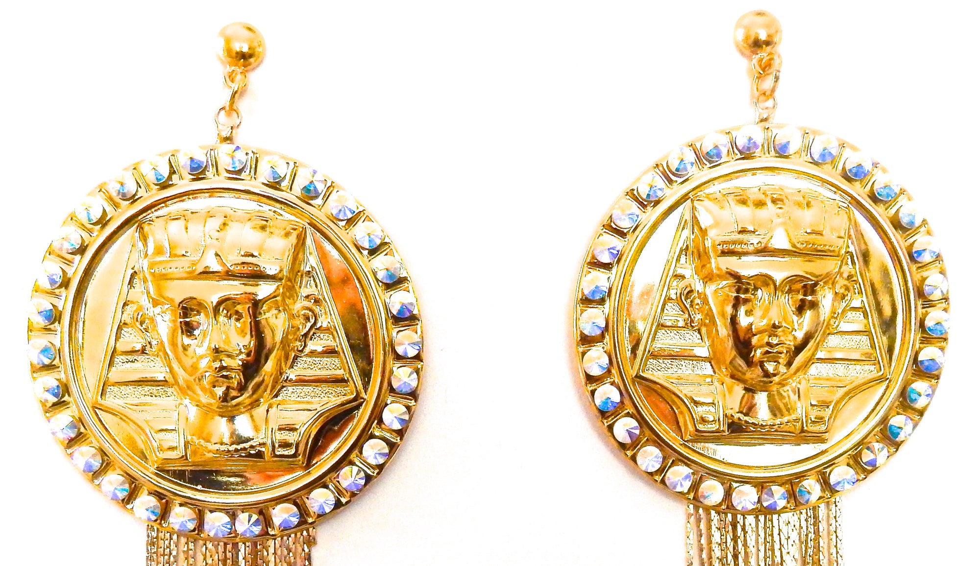 EGYPTIAN GOLD KING TUT OPAL RHINESTONE FRINGE EARRINGS