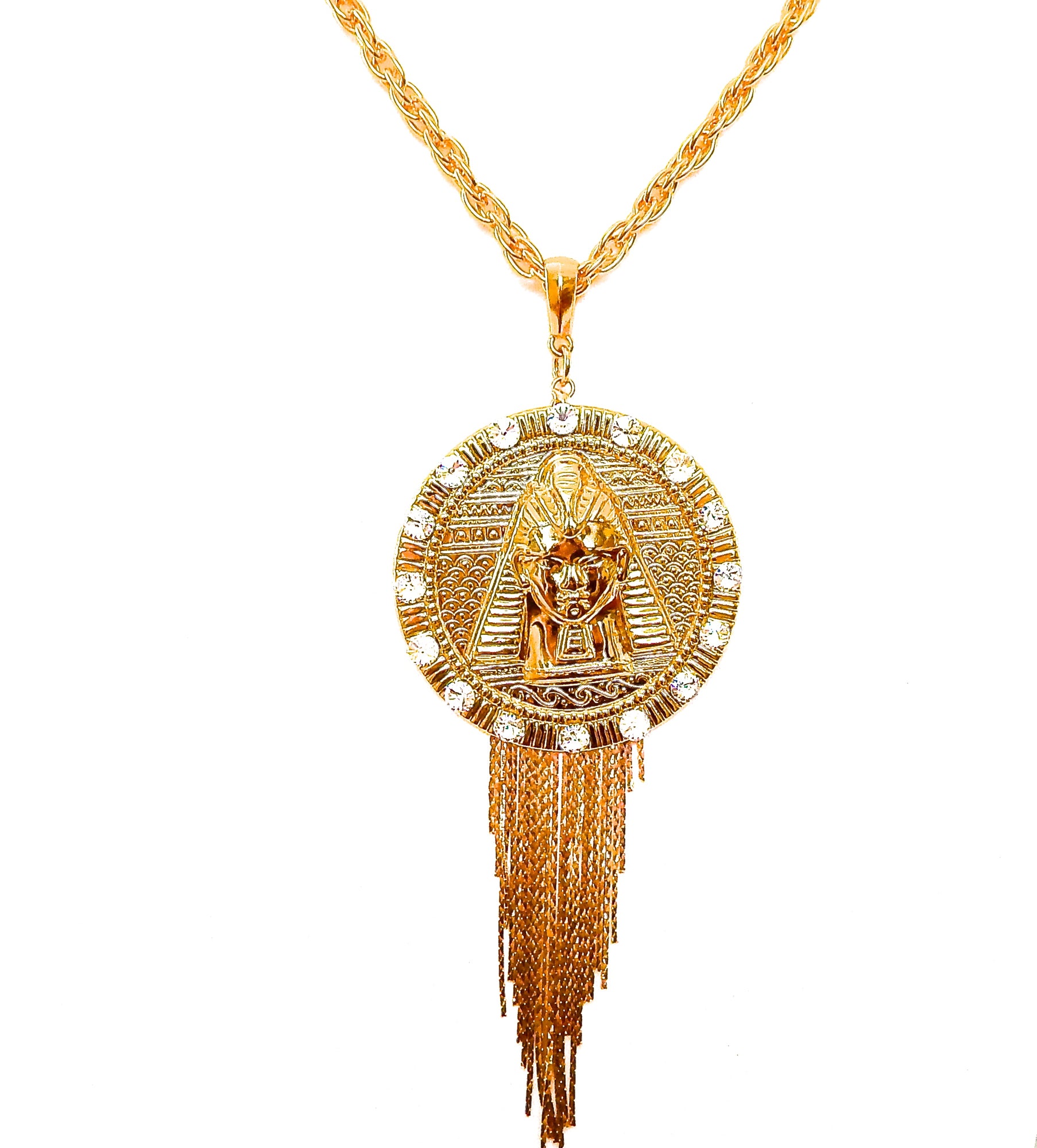 EGYPTIAN GOLD TUTANKHAMUN MOONDUST FRINGE NECKLACE