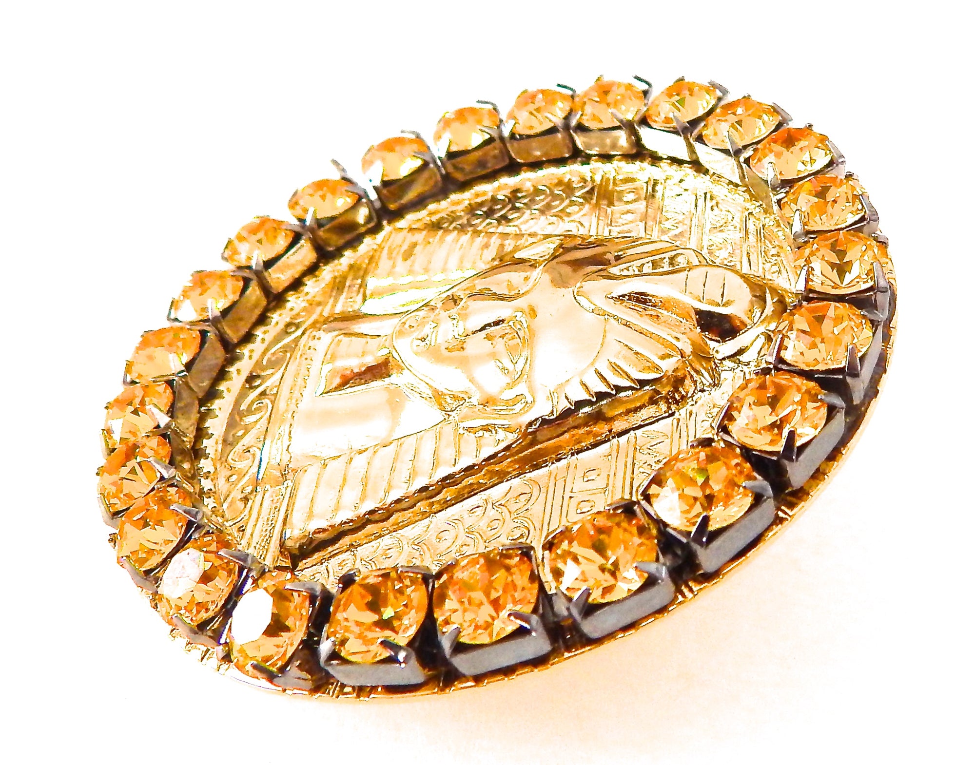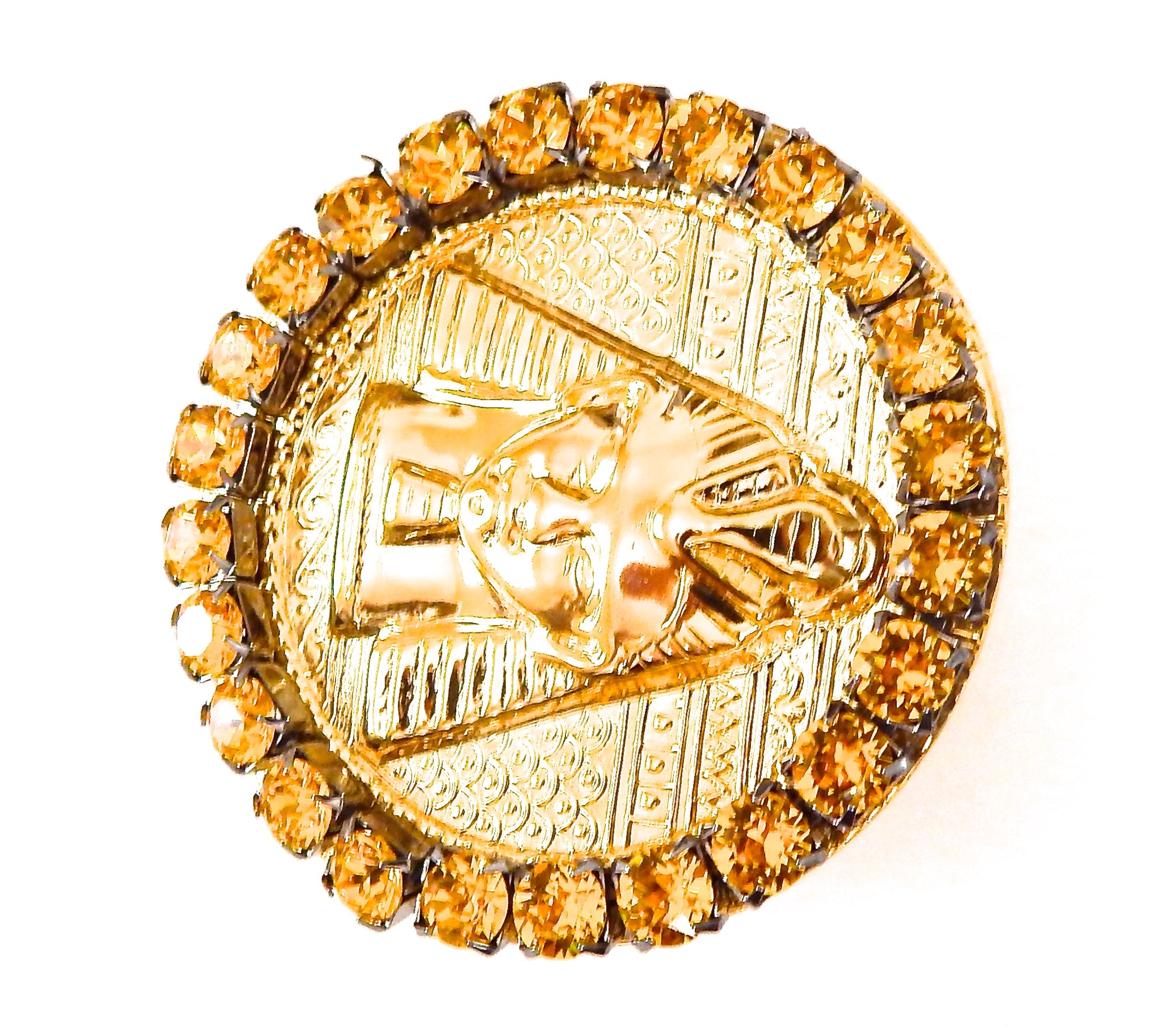 EGYPTIAN GOLD TUTANKHAMUN SUN DUST RHINESTONE MEDALLION RING