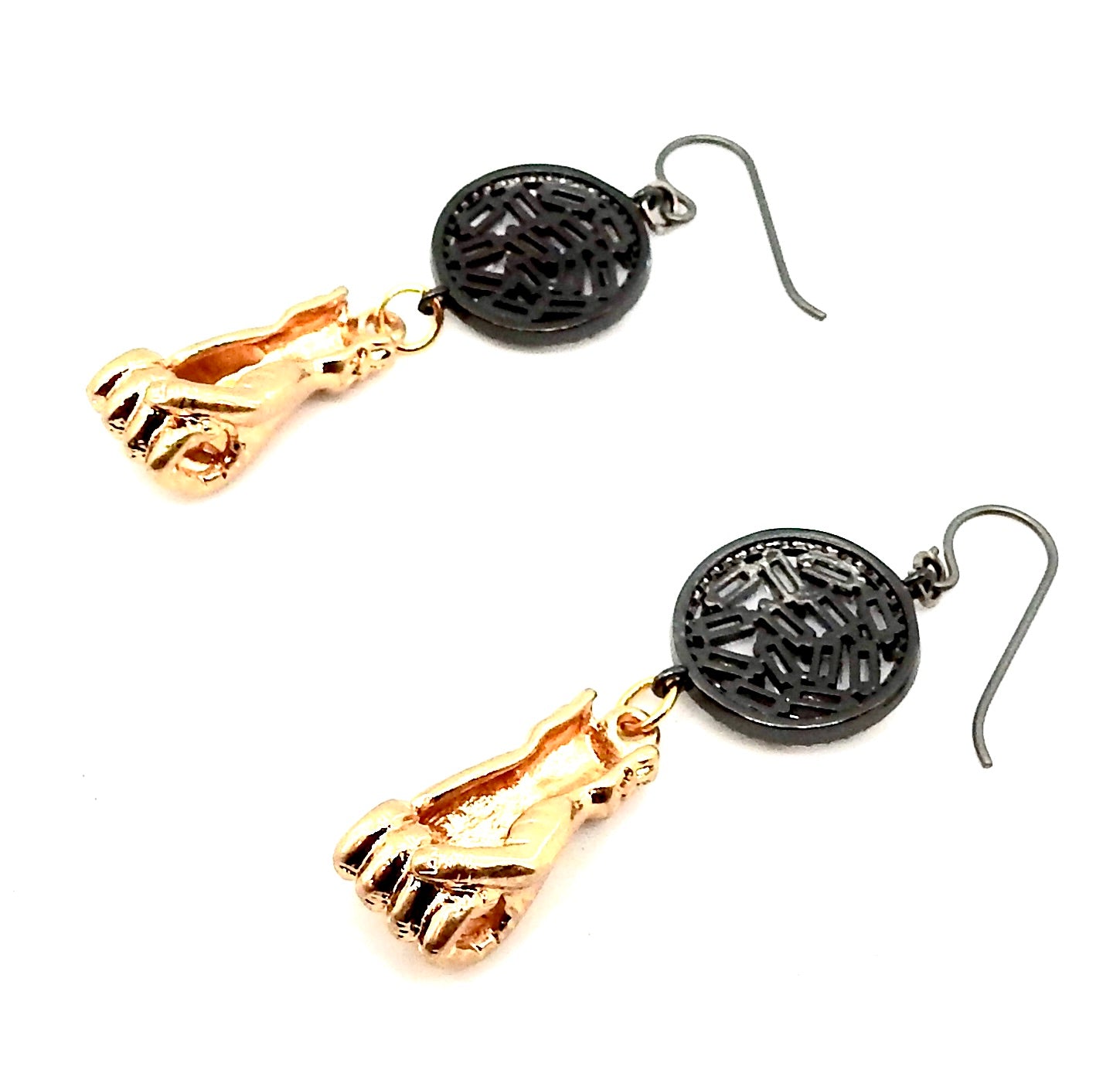 • FISTS OF FURY BLACK & GOLD COIN EARRINGS