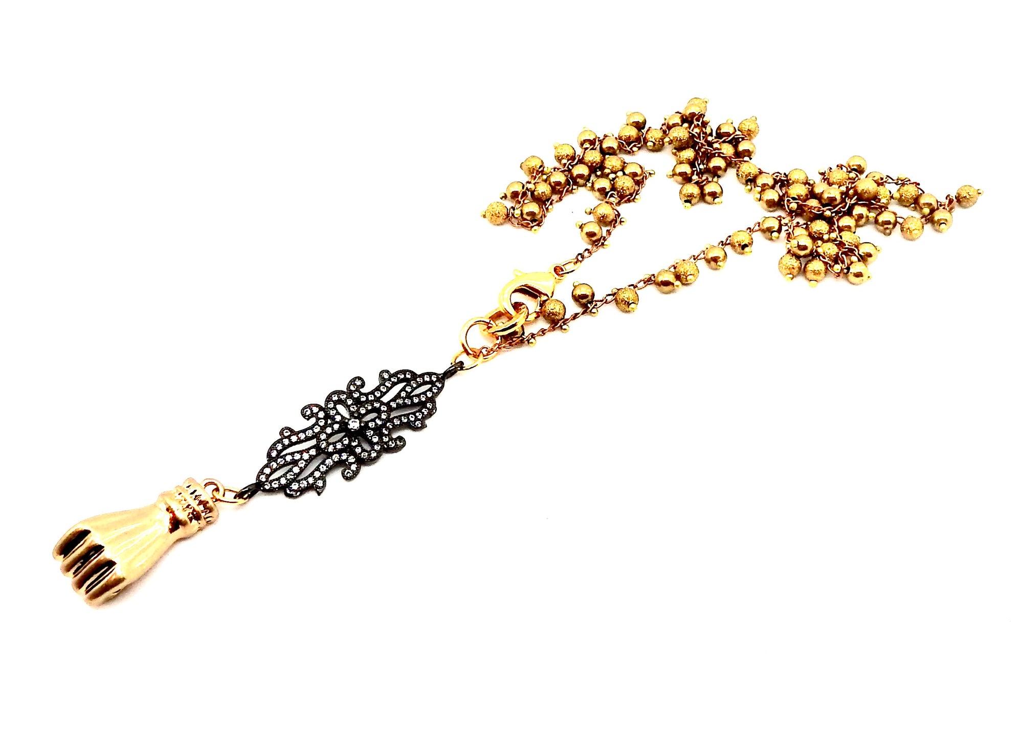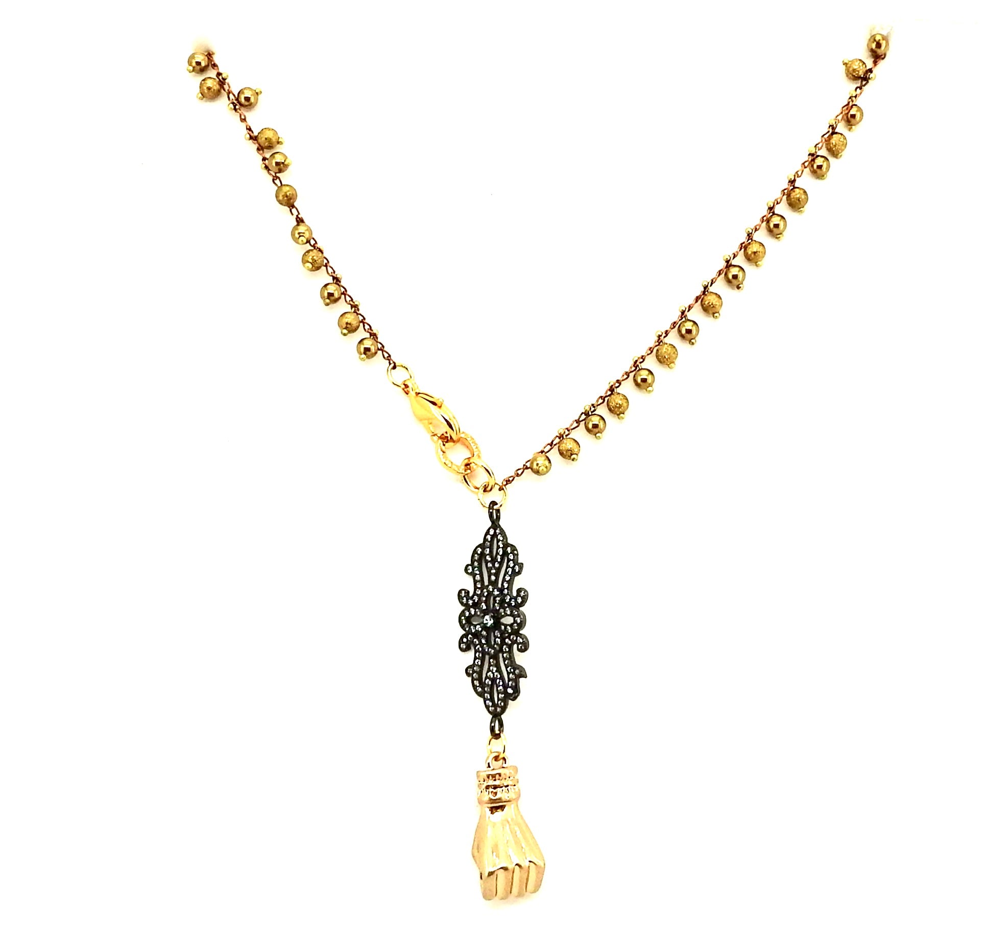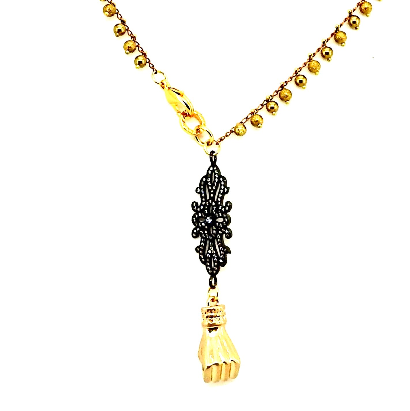 FISTS OF FURY BLACK & GOLD FILAGREE NECKLACE