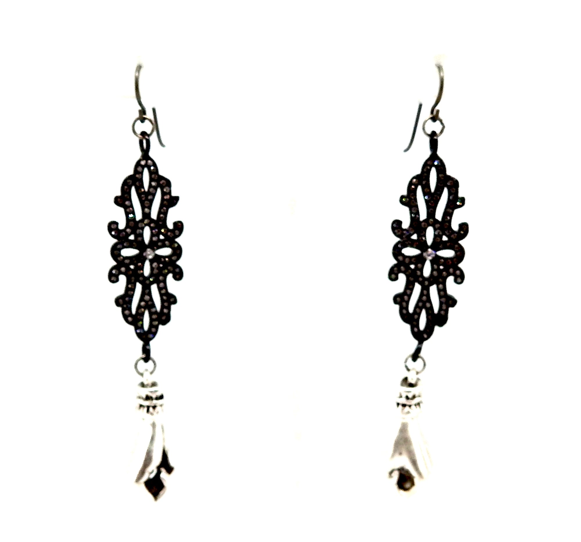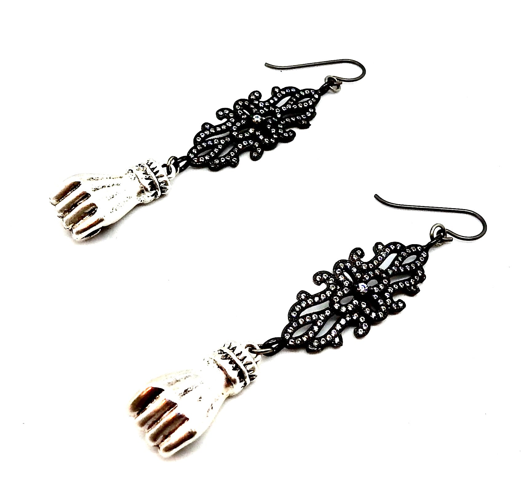 • FISTS OF FURY BLACK & SILVER FILAGREE EARRINGS