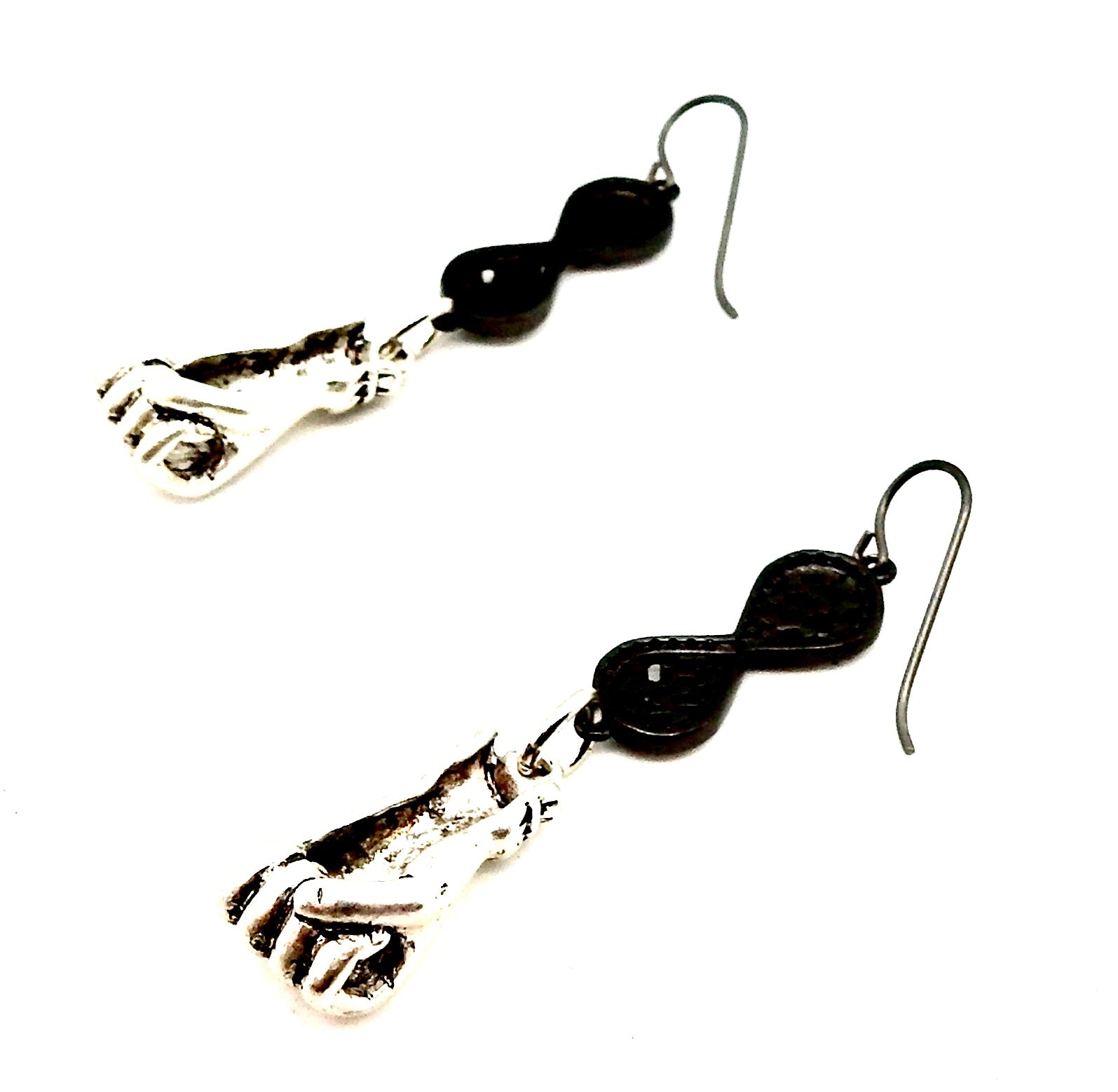 • FISTS OF FURY BLACK & SILVER INFINITY EARRINGS