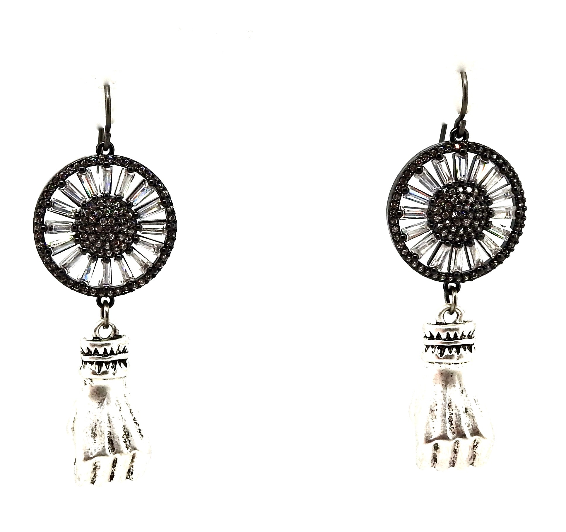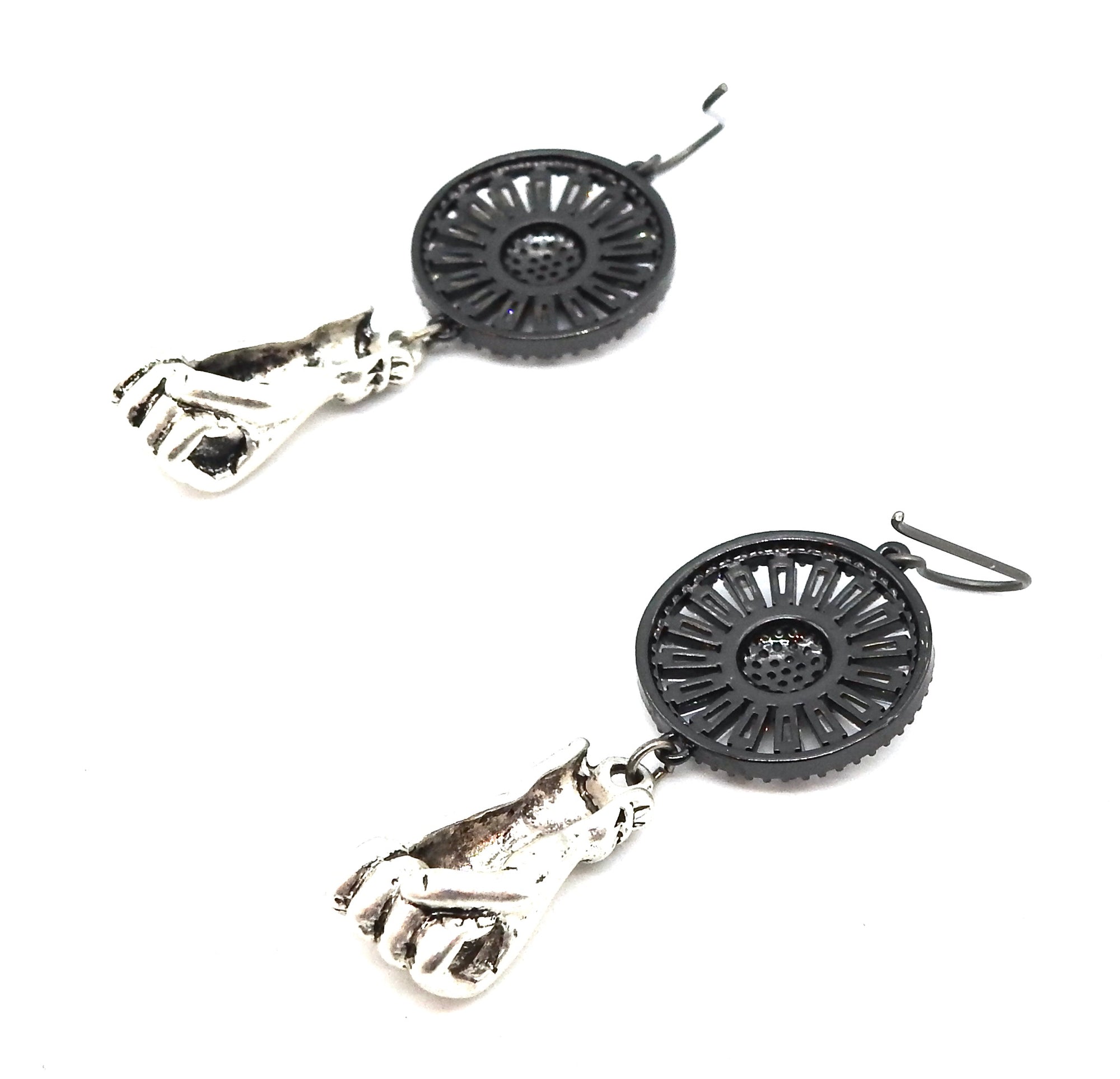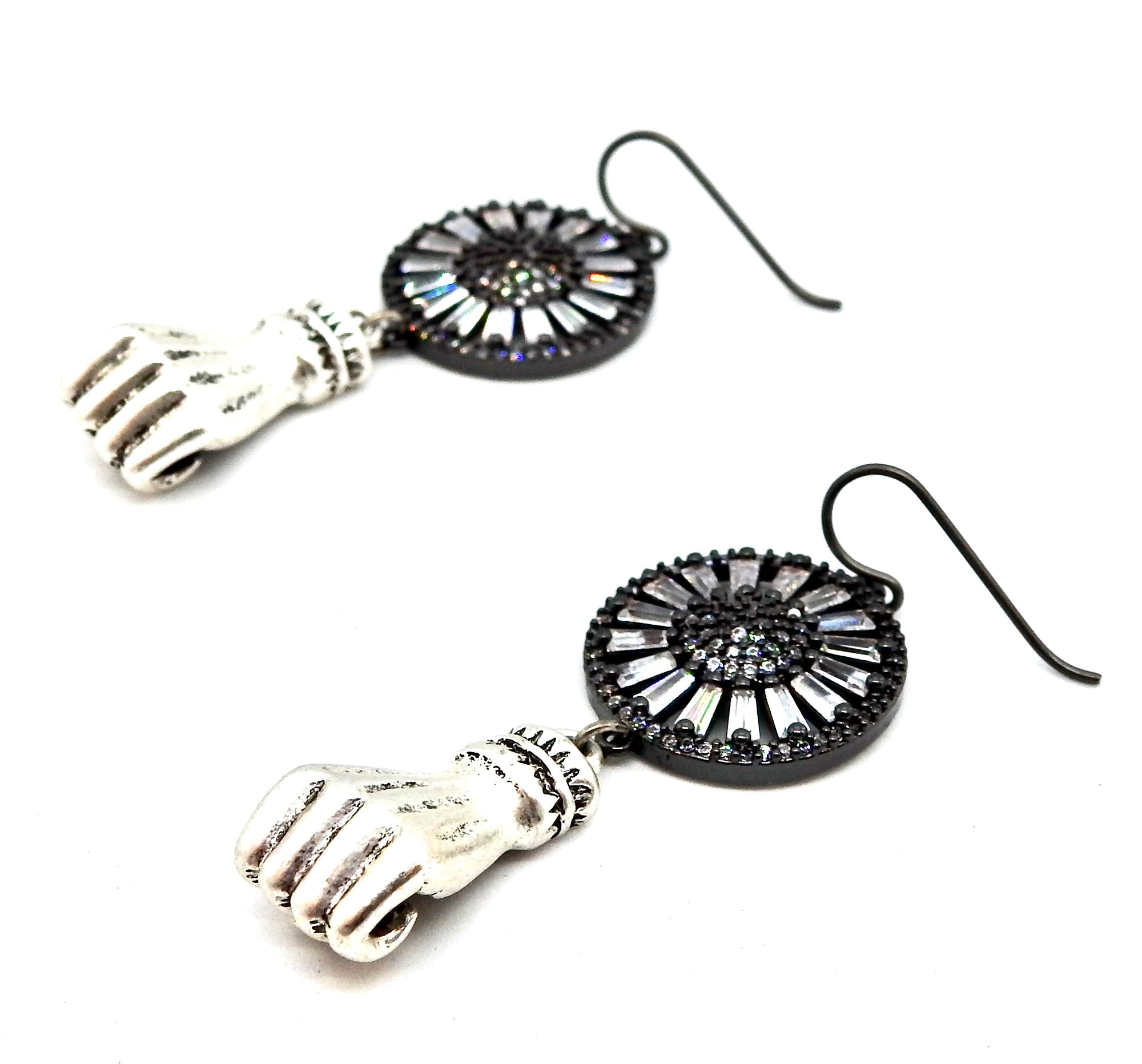 • FISTS OF FURY BLACK & SILVER SUNFLOWER EARRINGS
