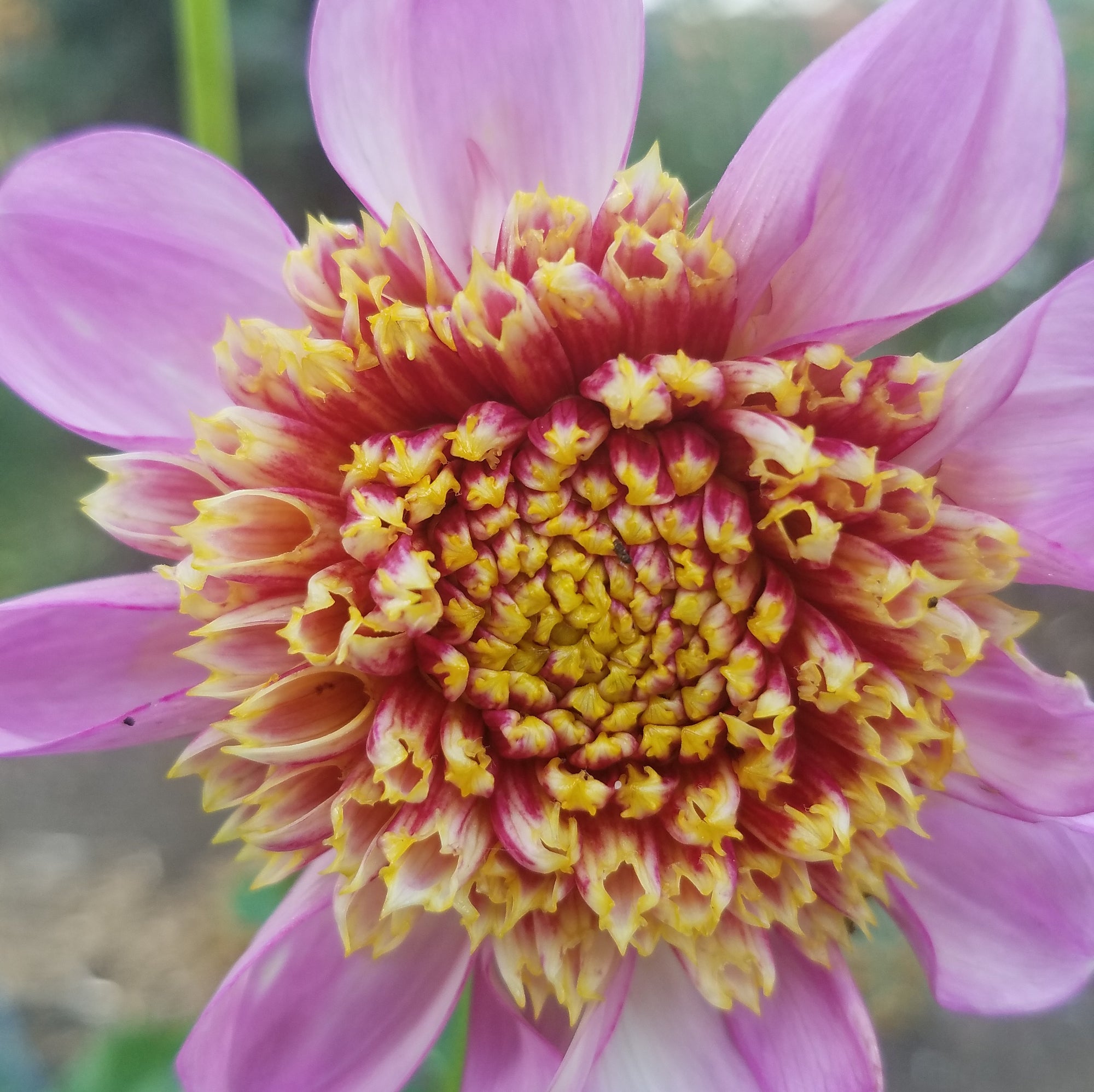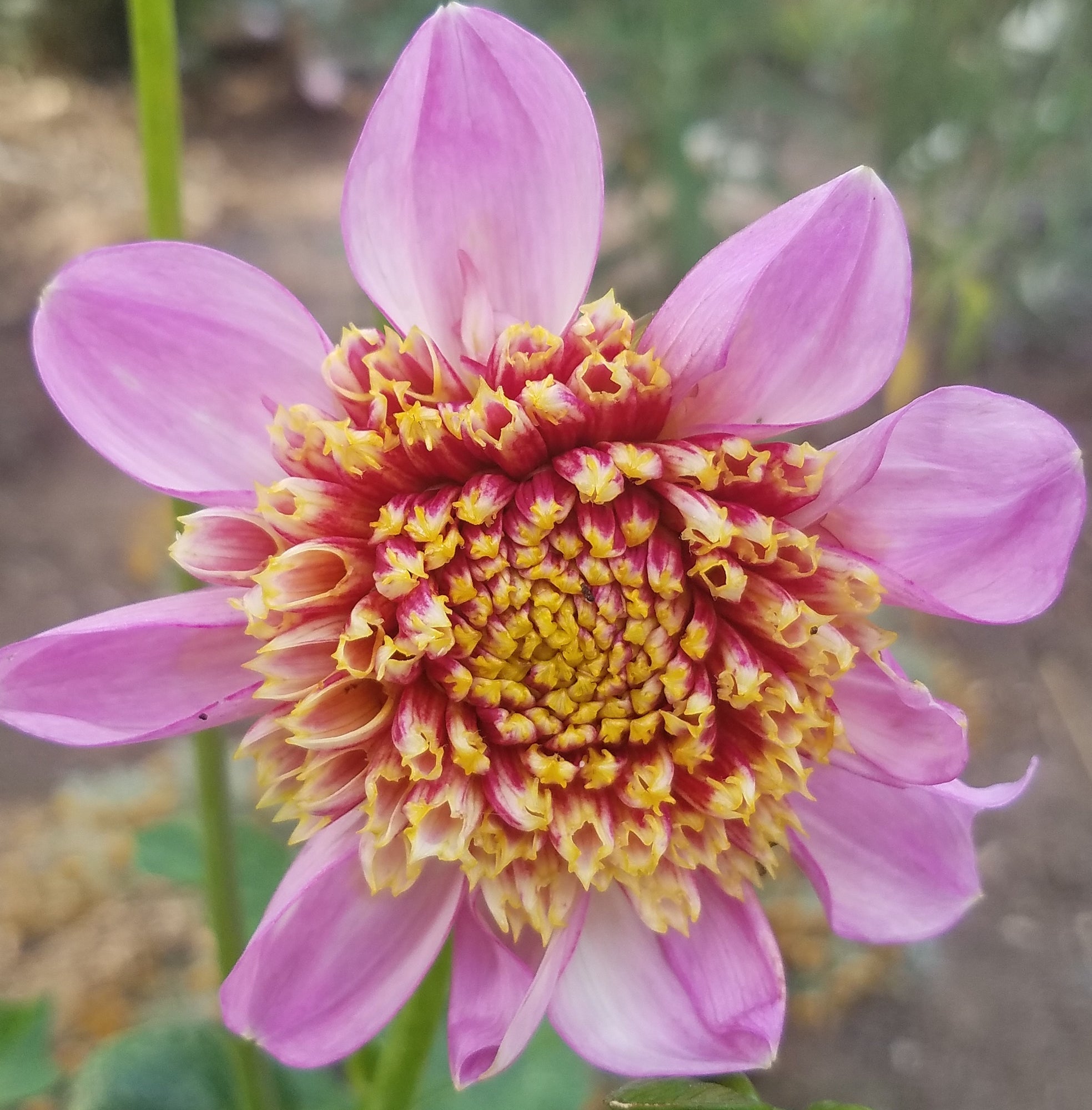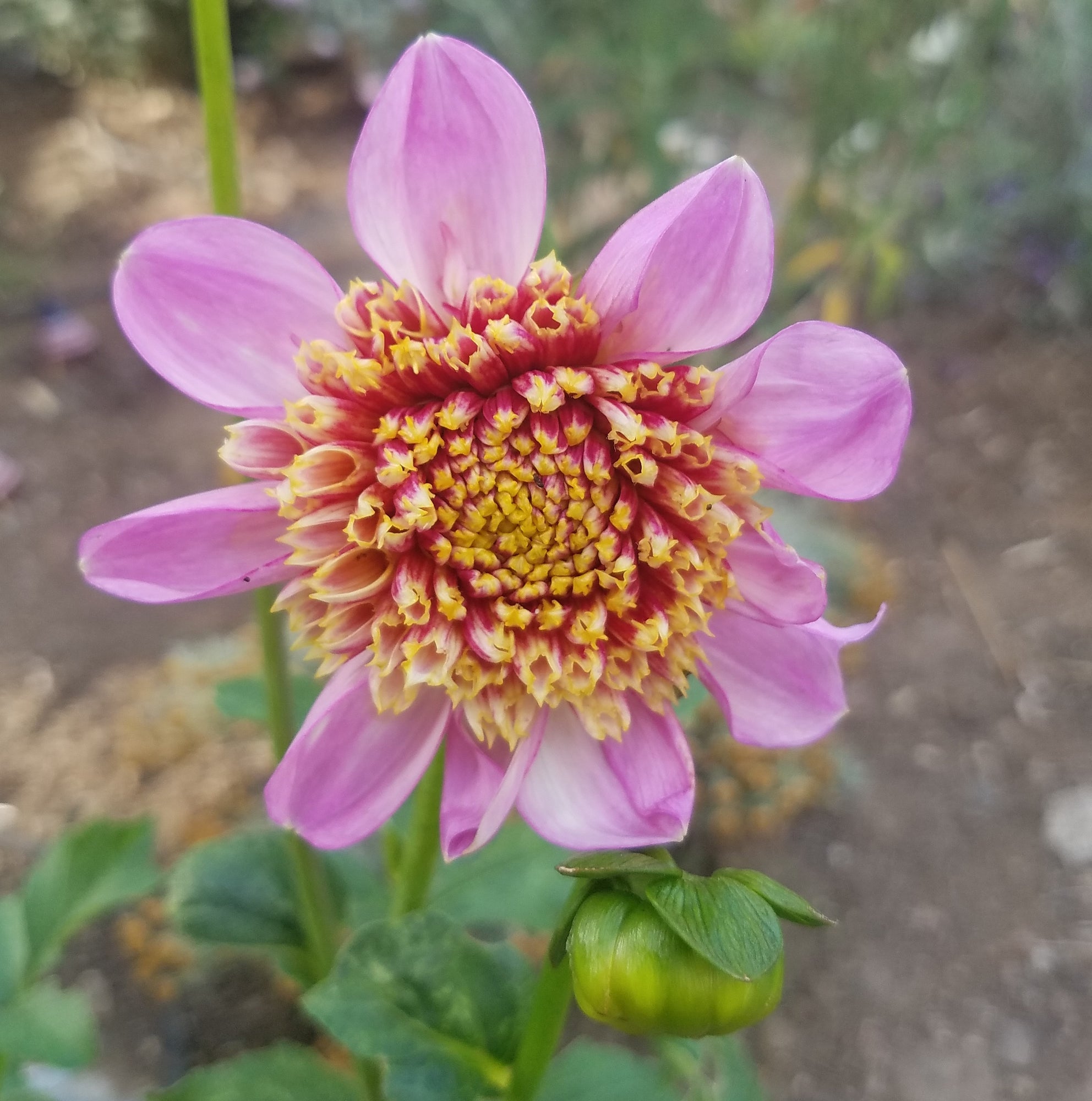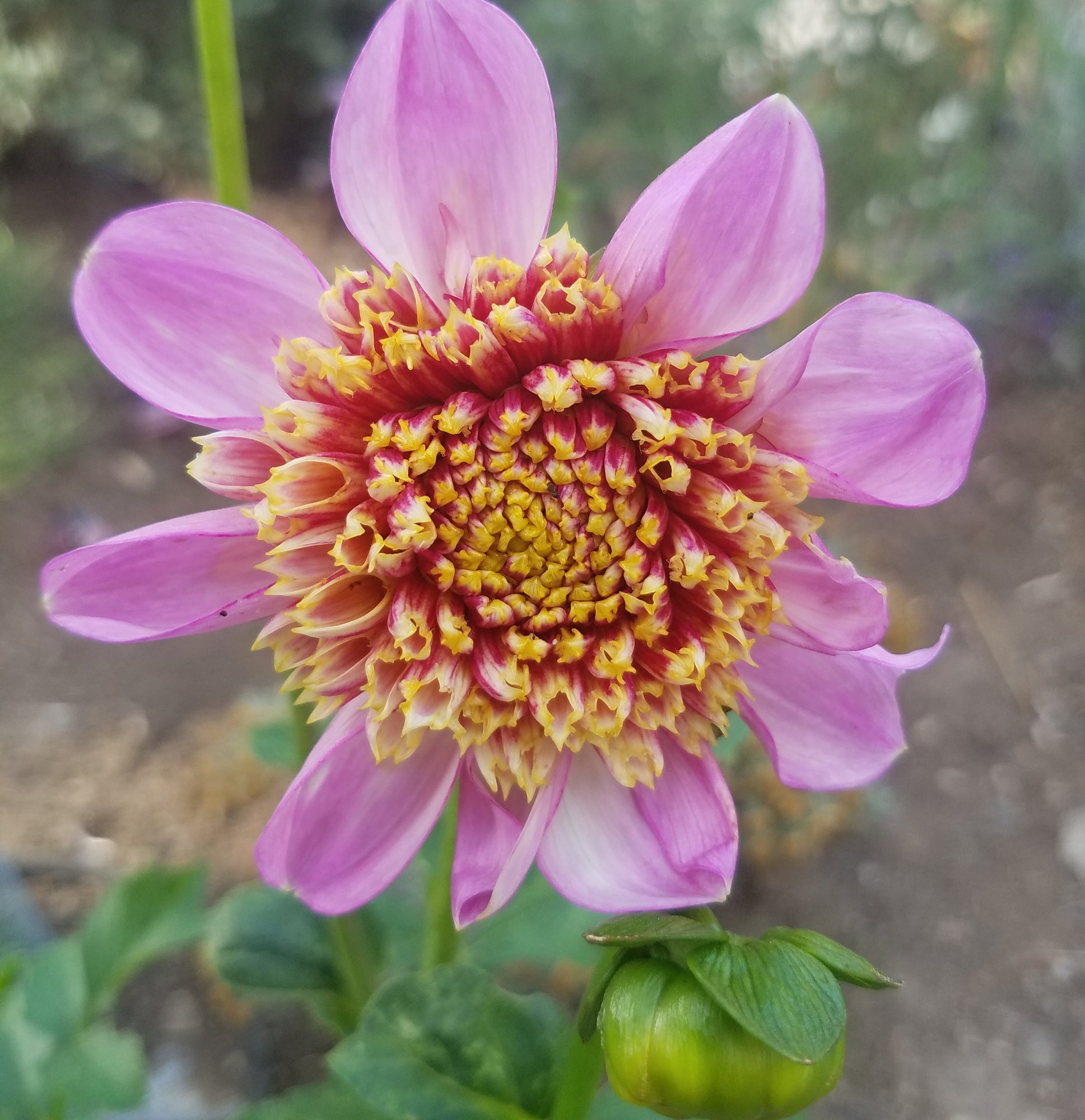 DAHLIA IS A GENUS OF BUSHY, TUBEROUS, HERBACEOUS PERENNIAL PLANTS NATIVE TO MEXICO. A MEMBER OF THE ASTERACEAE, DICOTYLEDONOUS PLANTS, RELATED SPECIES INCLUDE THE SUNFLOWER, DAISY, CHRYSANTHEMUM, AND ZINNIA. THE DAHLIA IS NAMED AFTER THE SWEDISH 18TH CENTURY BOTANIST ANDERS DAHL, WHO ORIGINALLY DECLARED THE FLOWER A VEGETABLE, AS THE TUBERS ARE EDIBLE. NEW DAHLIA FOR ME IN 2019 IT'S SO RADICALLY BEAUTIFUL IT HURTS SO FAR 3 WHOLE BLOOMS AND 4 MORE ON THE PLANT. INTRODUCED IN 2010, 4 INCH BLOOMS OF LAVENDER HAVE A WATERMELON PINK PINCUSHION IN THE CENTER.