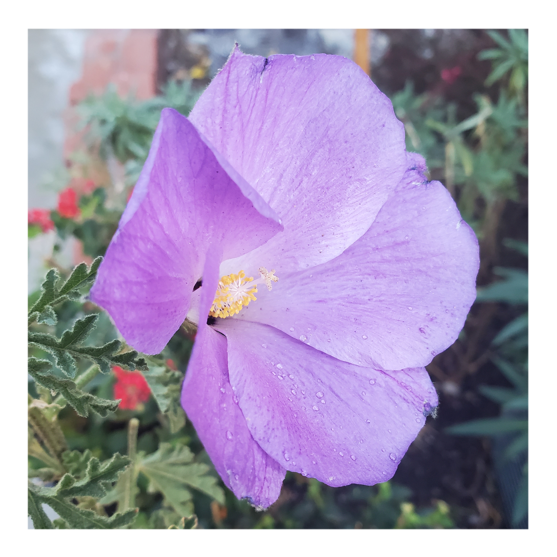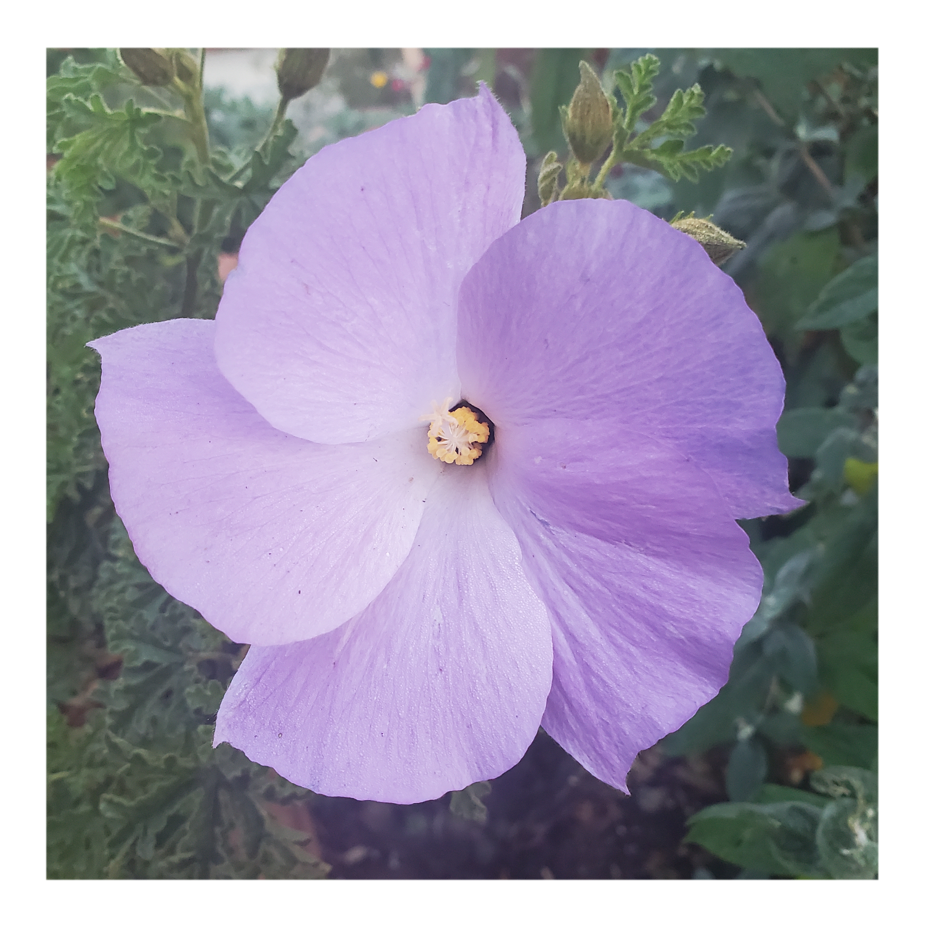 Alyogyne huegelii is a flowering plant found in the Southwest botanical province of Western Australia, extending along its entire coastline. A large flowered shrub, the species favours the sands of coastal shrublands and heath. The large flower, highly variable in colour, is similar to that of Hibiscus.