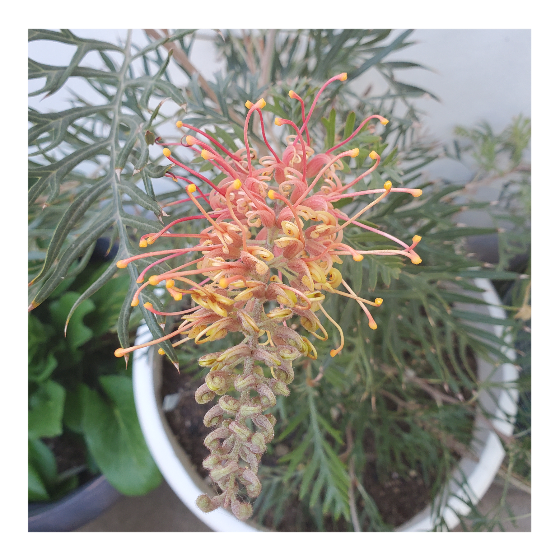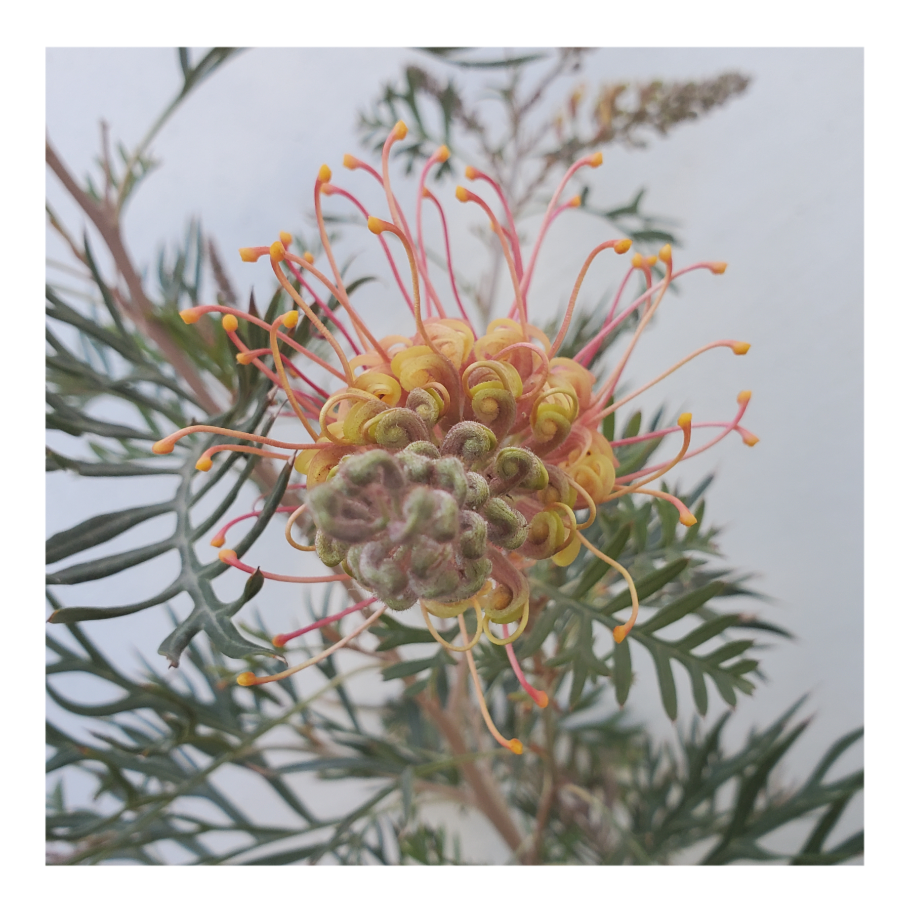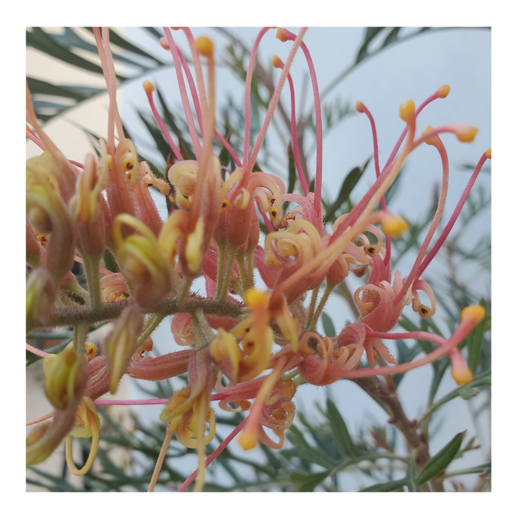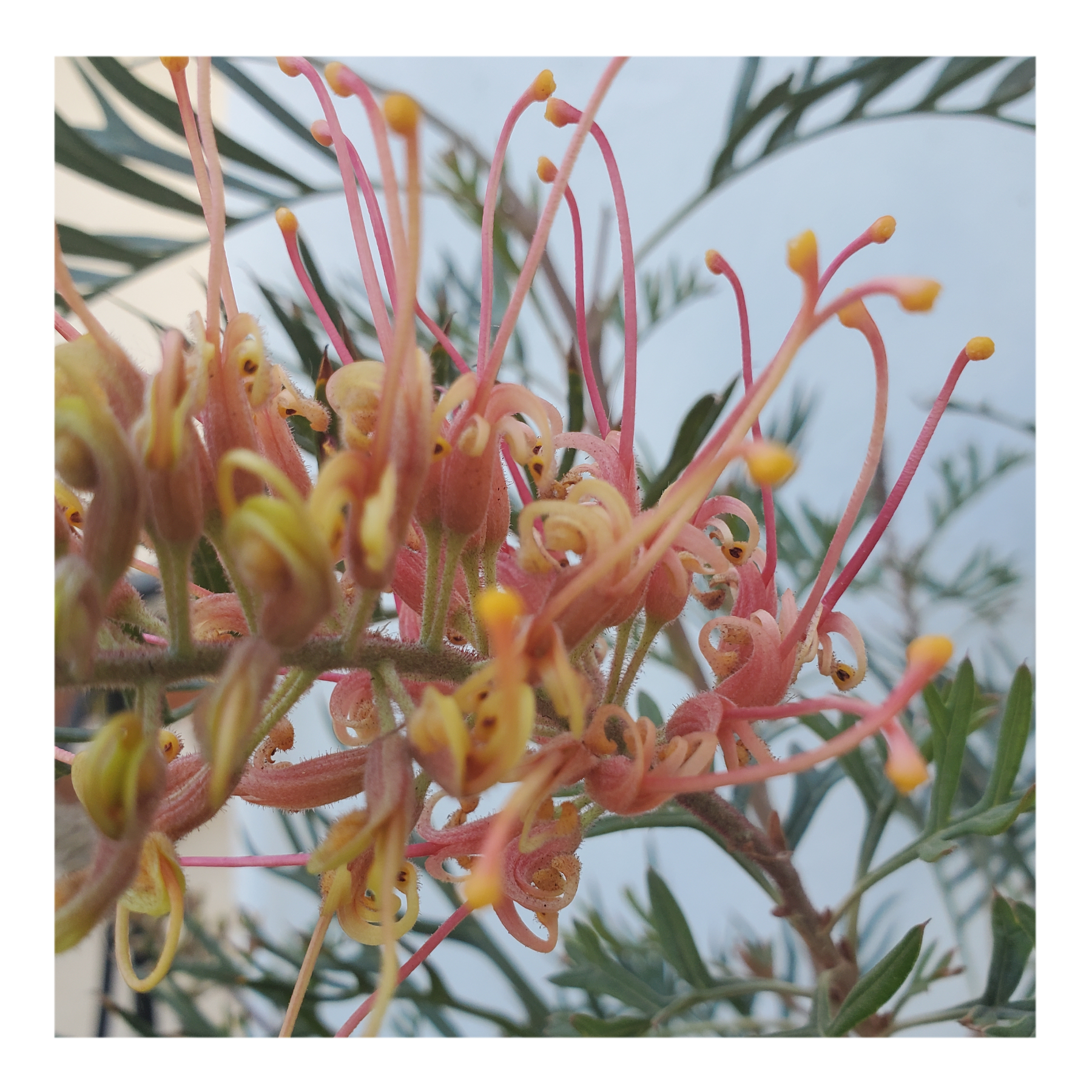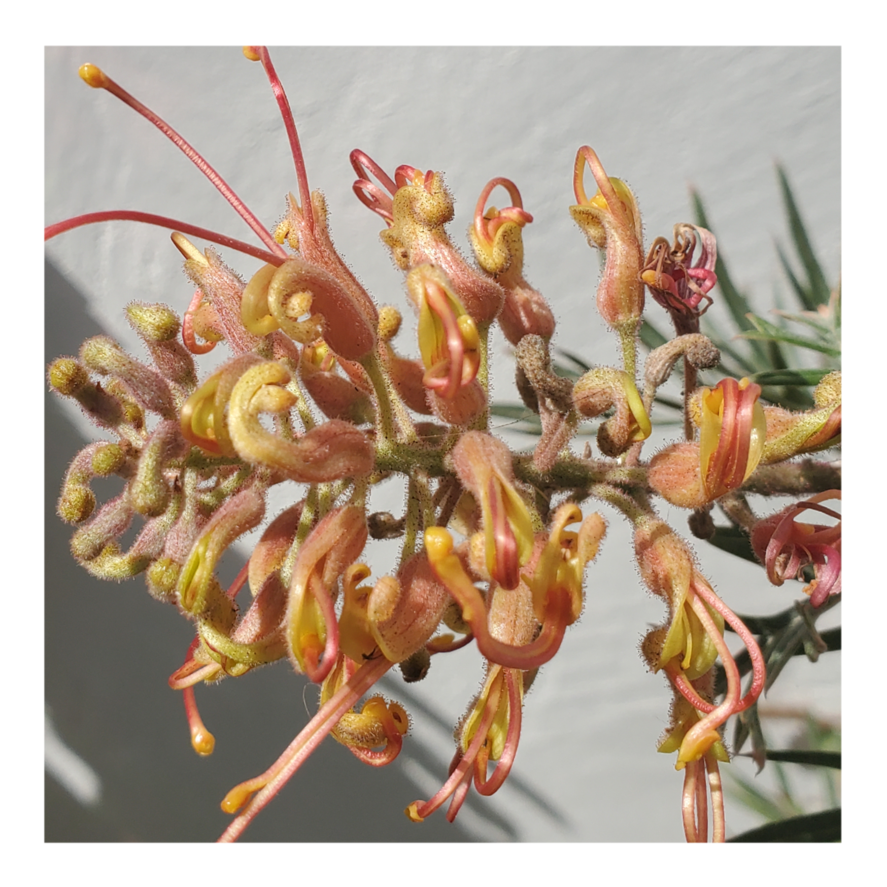 Grevillea is a diverse genus of about 360 species of evergreen flowering plants in the family Proteaceae, native to rainforest and more open habitats in Australia, New Guinea, New Caledonia, Sulawesi and other Indonesian islands east of the Wallace Line.