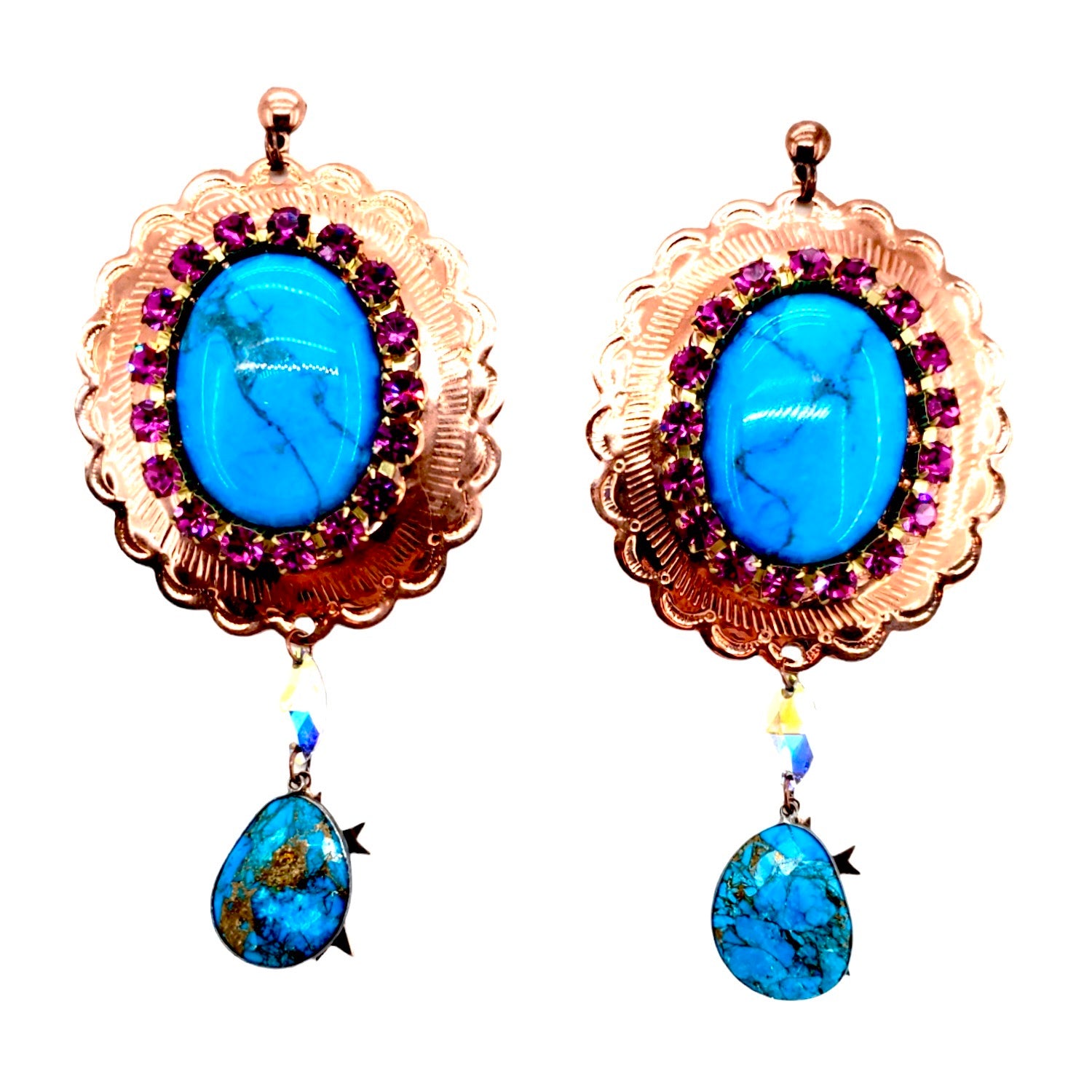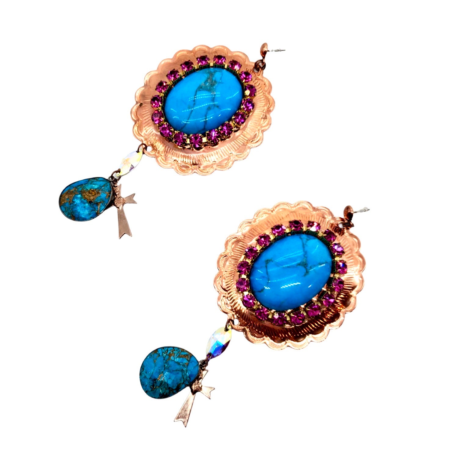- 22X33MM COPPER TURQUOISE FACETED BEZEL DROP
