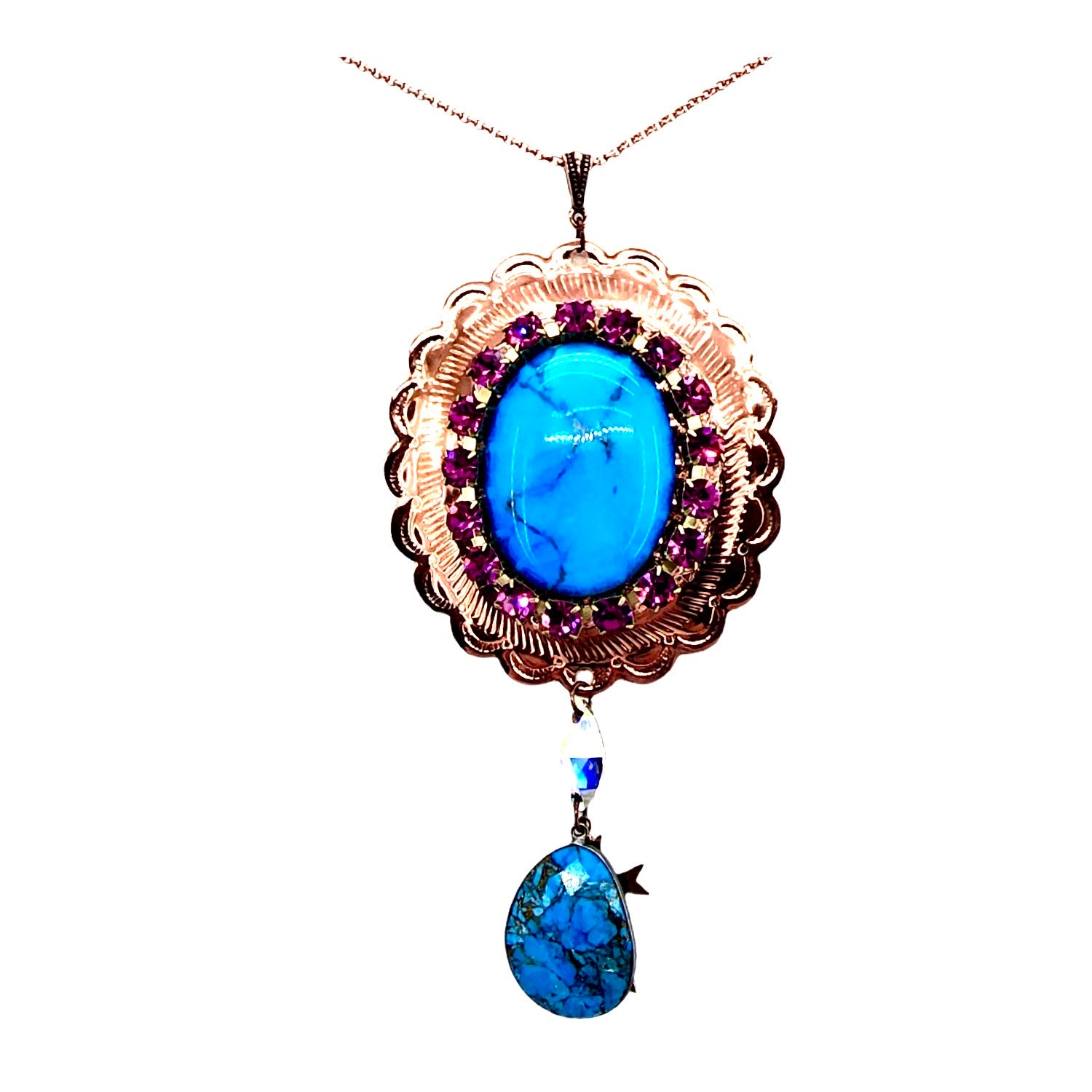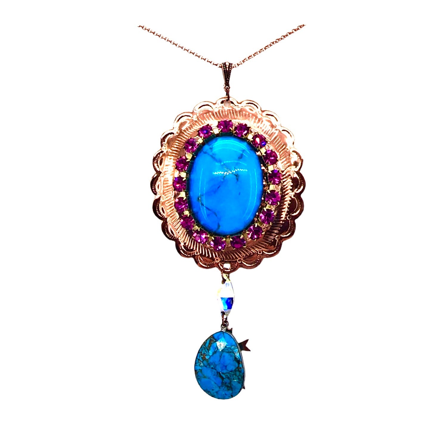 - 22X33MM COPPER TURQUOISE FACETED BEZEL DROP