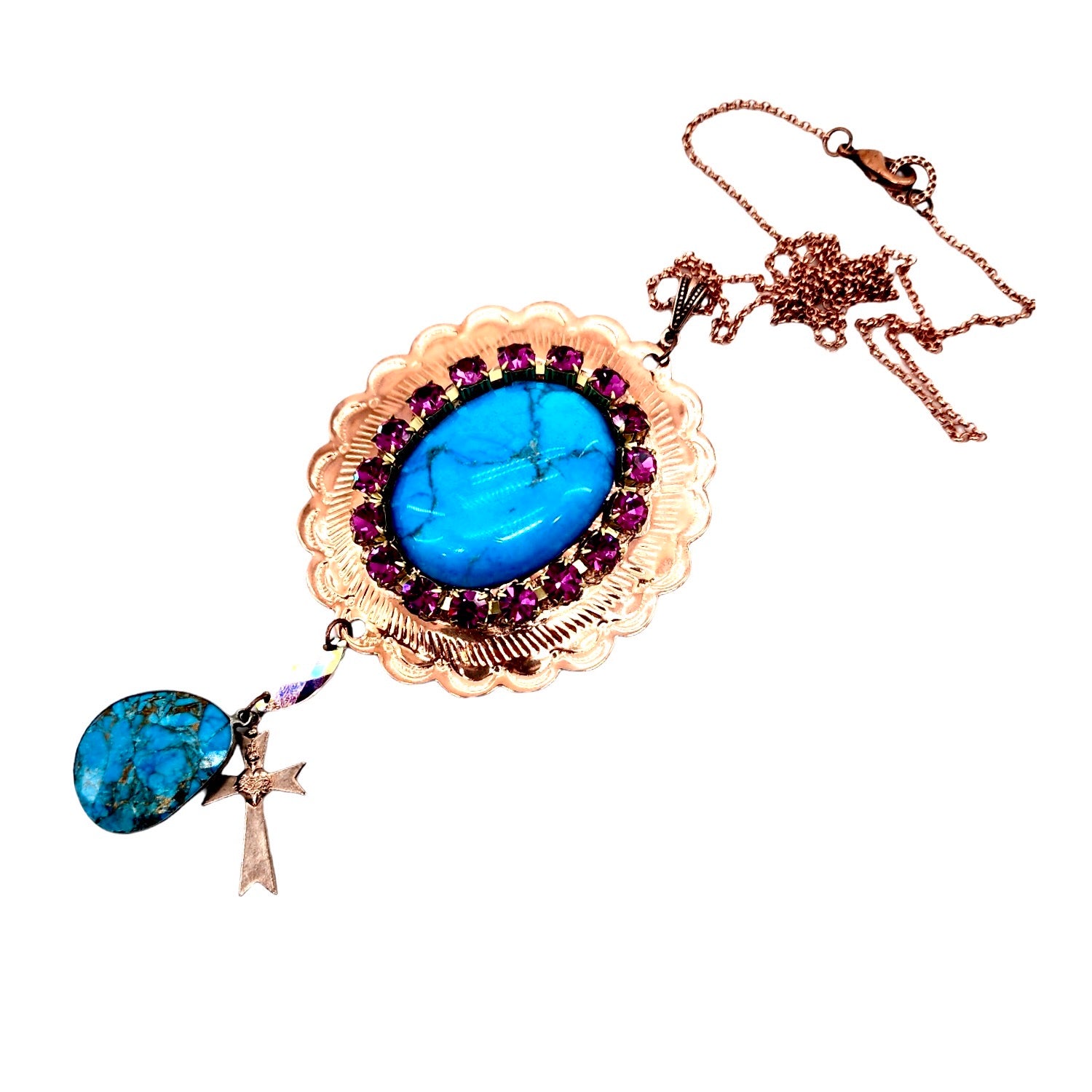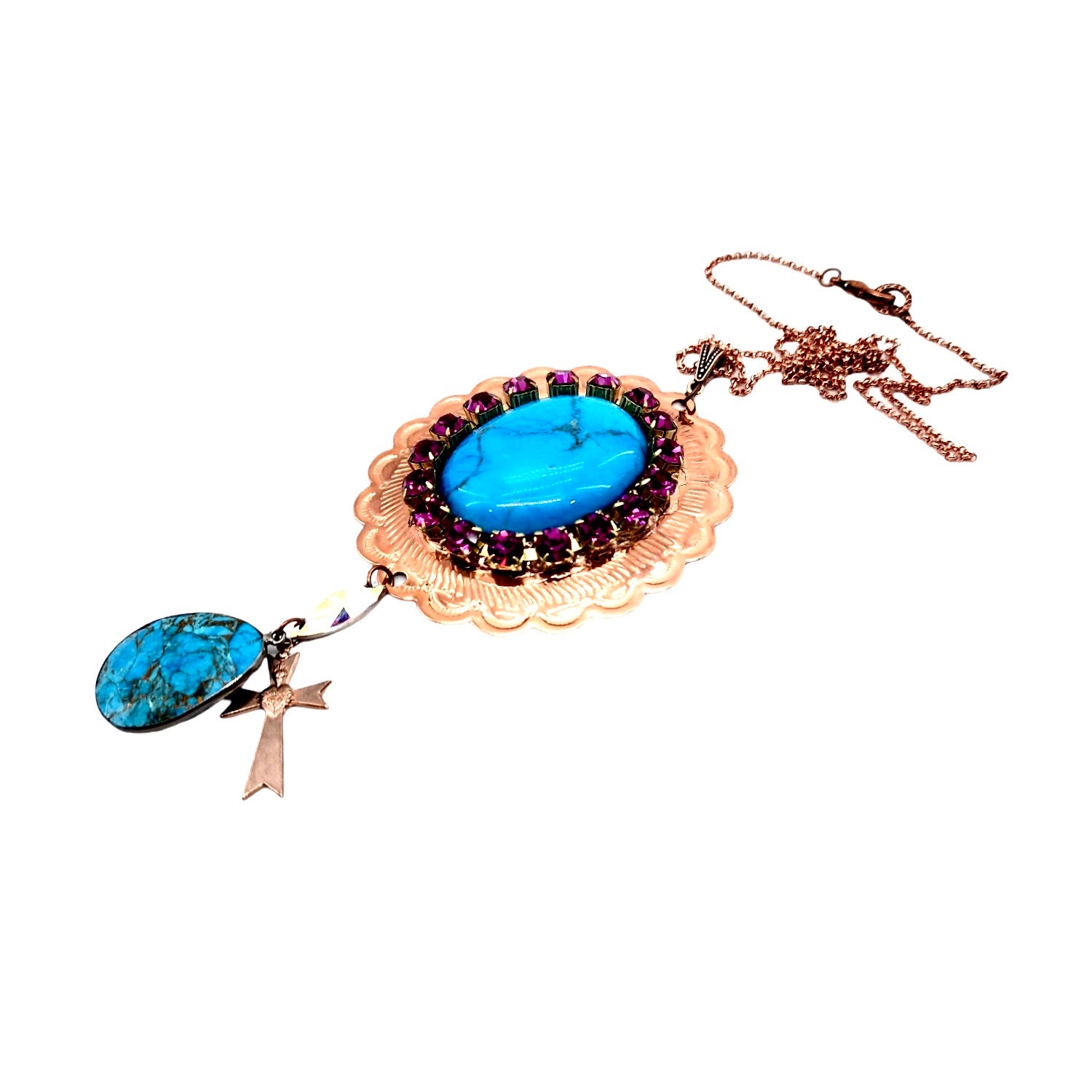 - 1 INCH ROSE GOLD PLATED RAW BRASS SACRED HEART CROSS