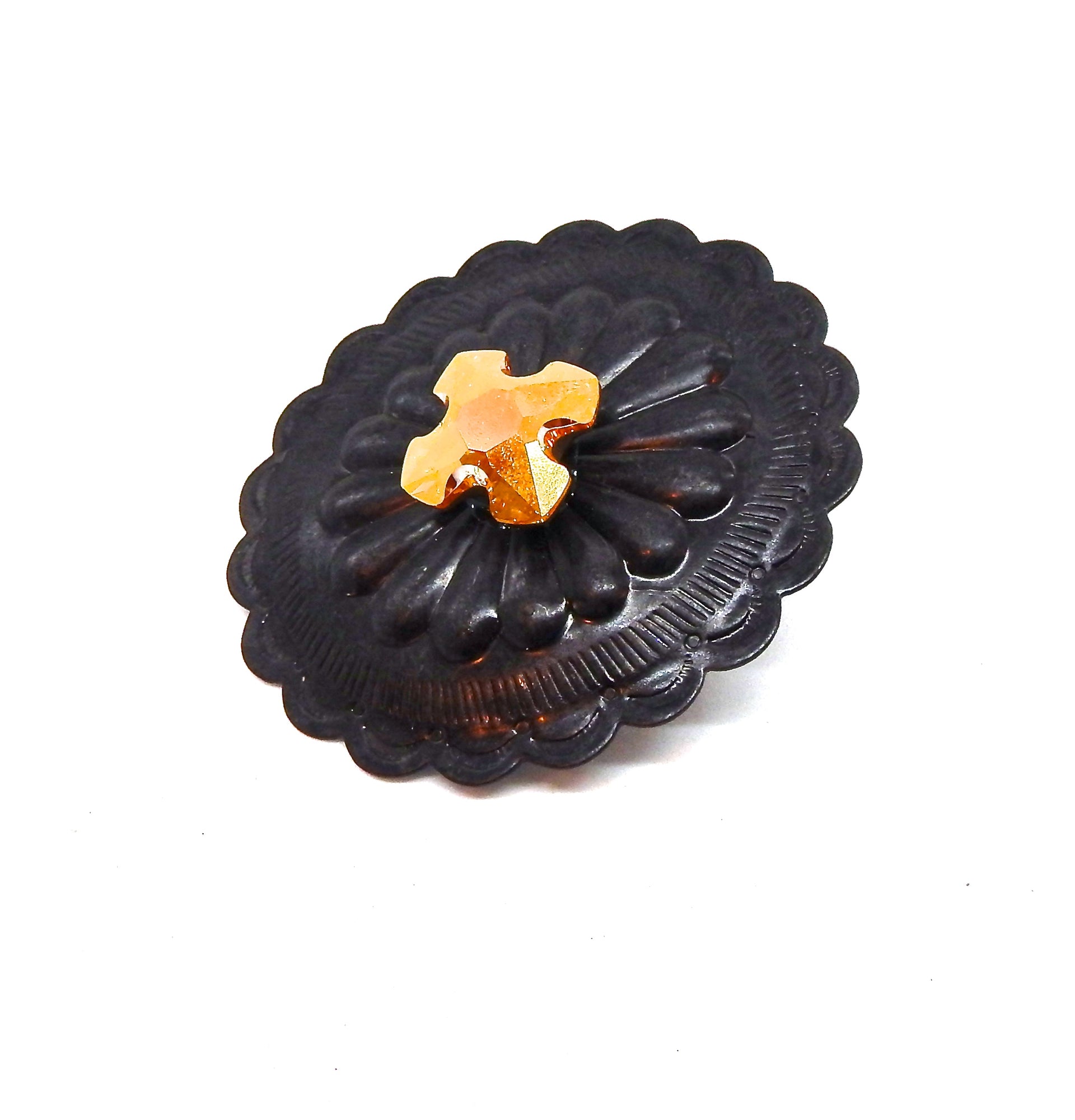 - 3X2.5 INCH FLAT BLACK PLATED RAW BRASS CONCHO