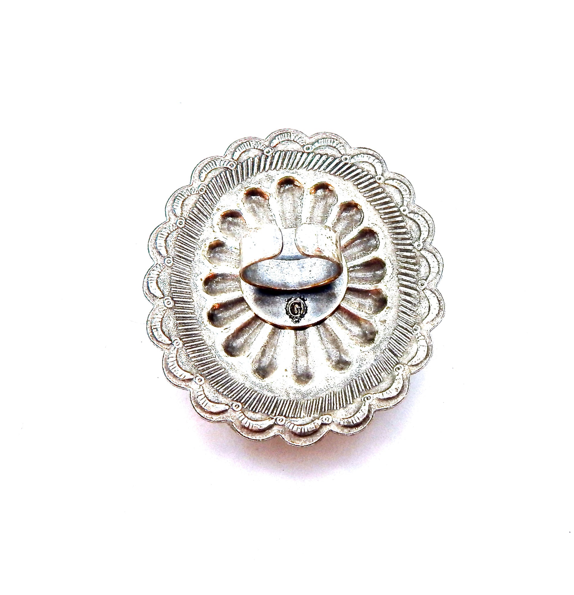 - 3X2.5 INCH SILVER TONE PLATED RAW BRASS CONCHO