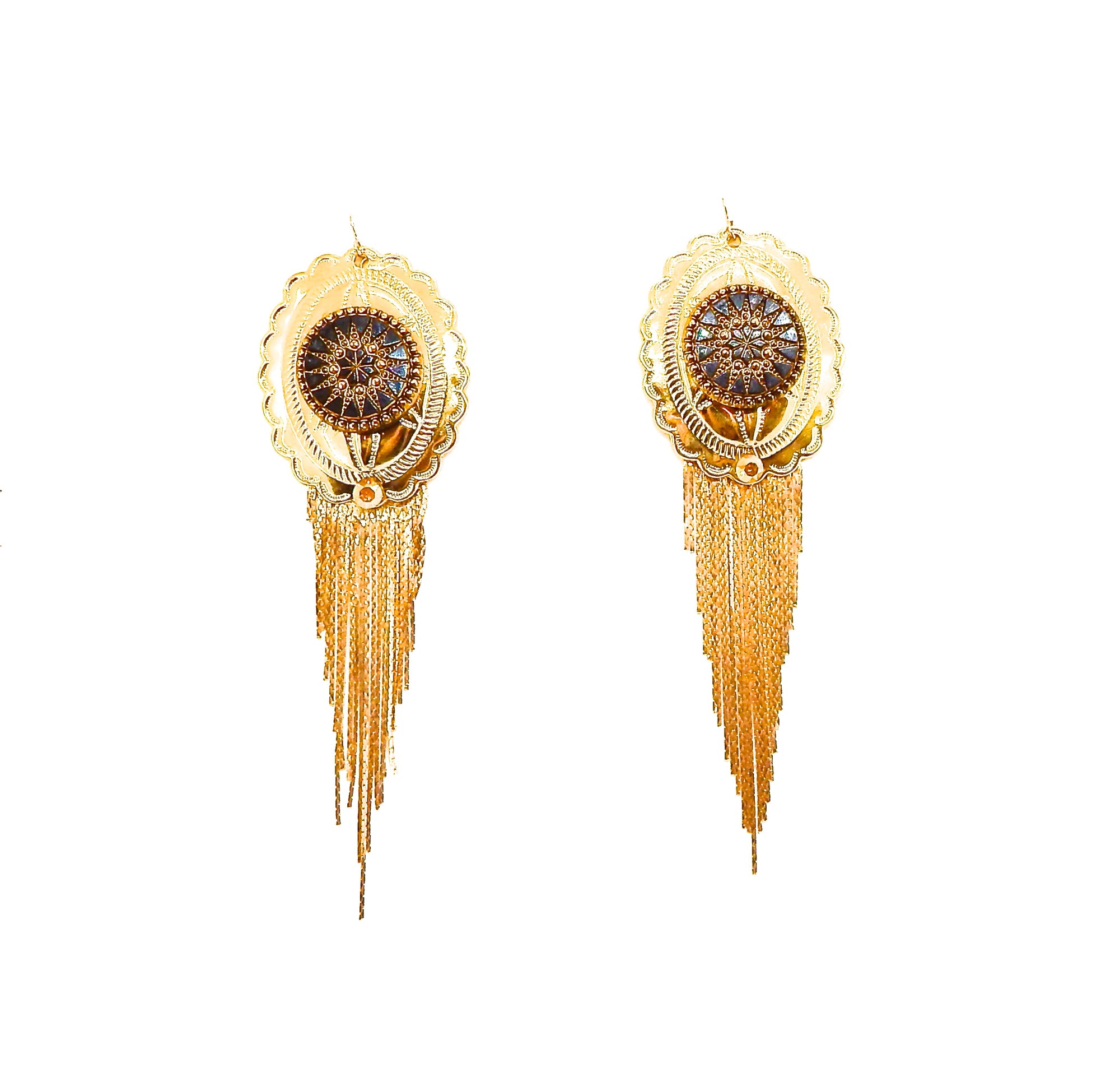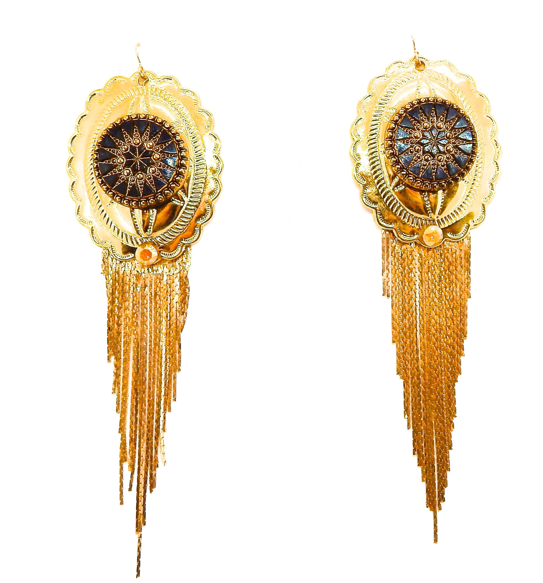 PONDEROSA HIGH NOON CONCHO FRINGE EARRINGS