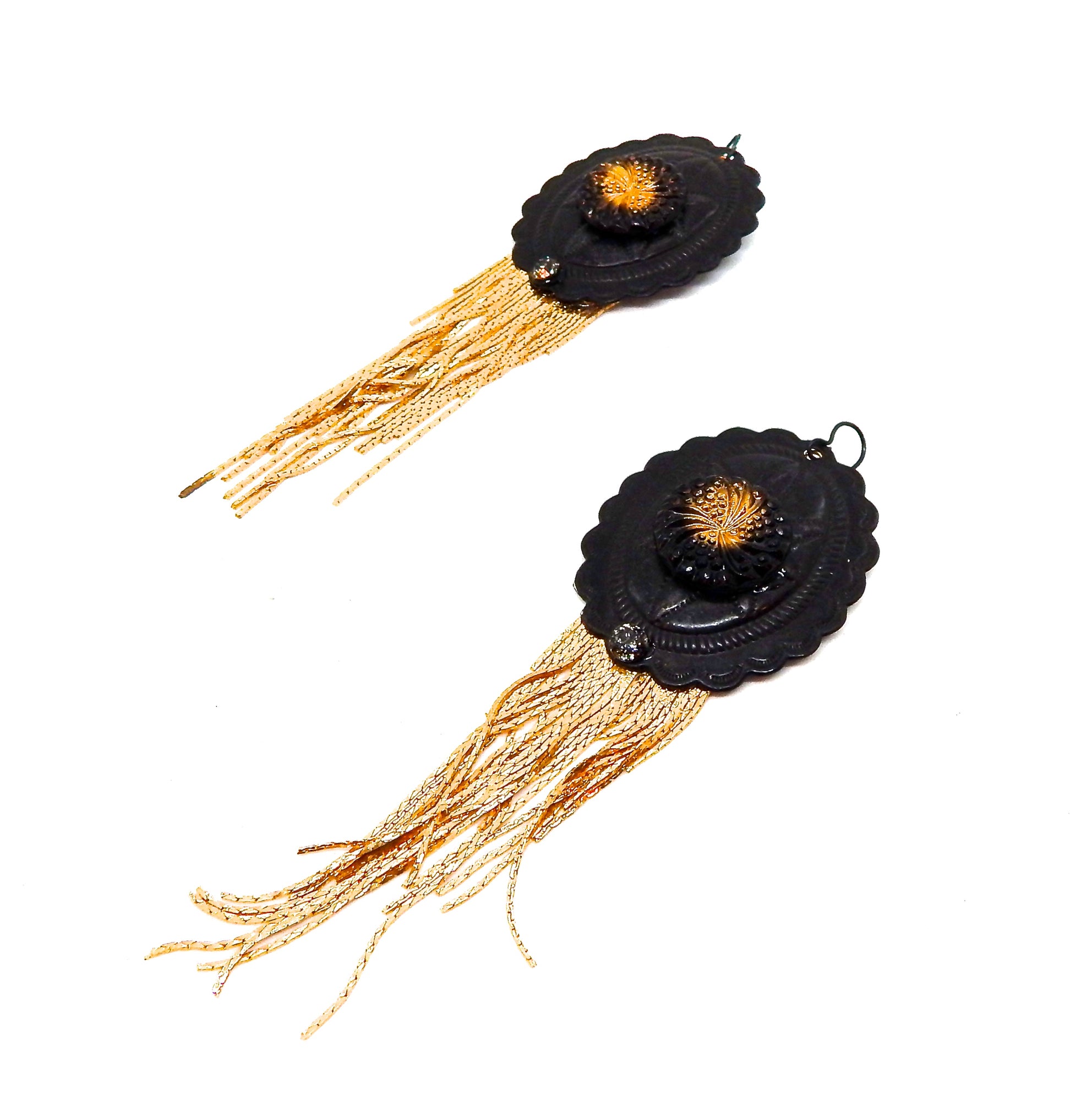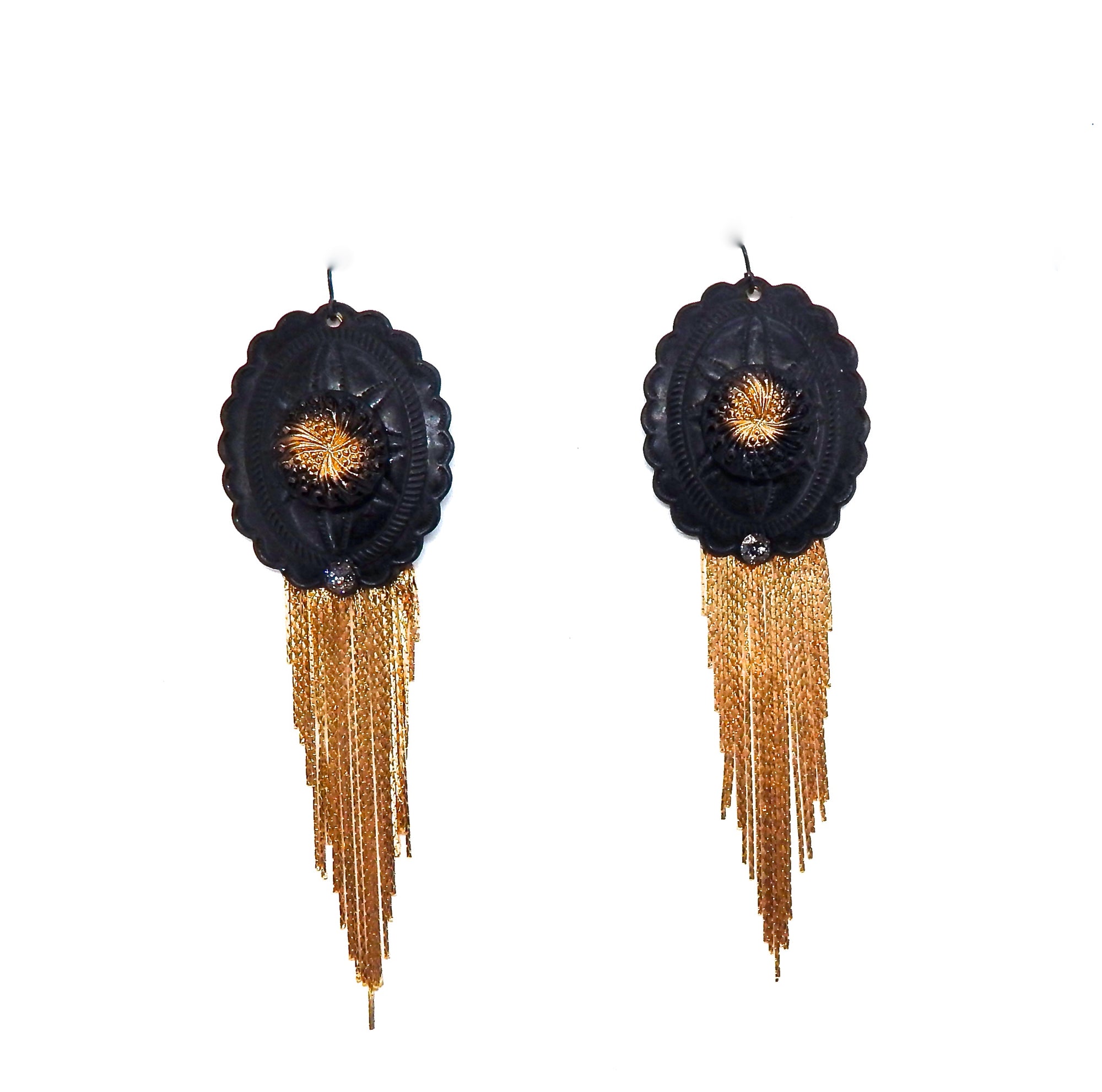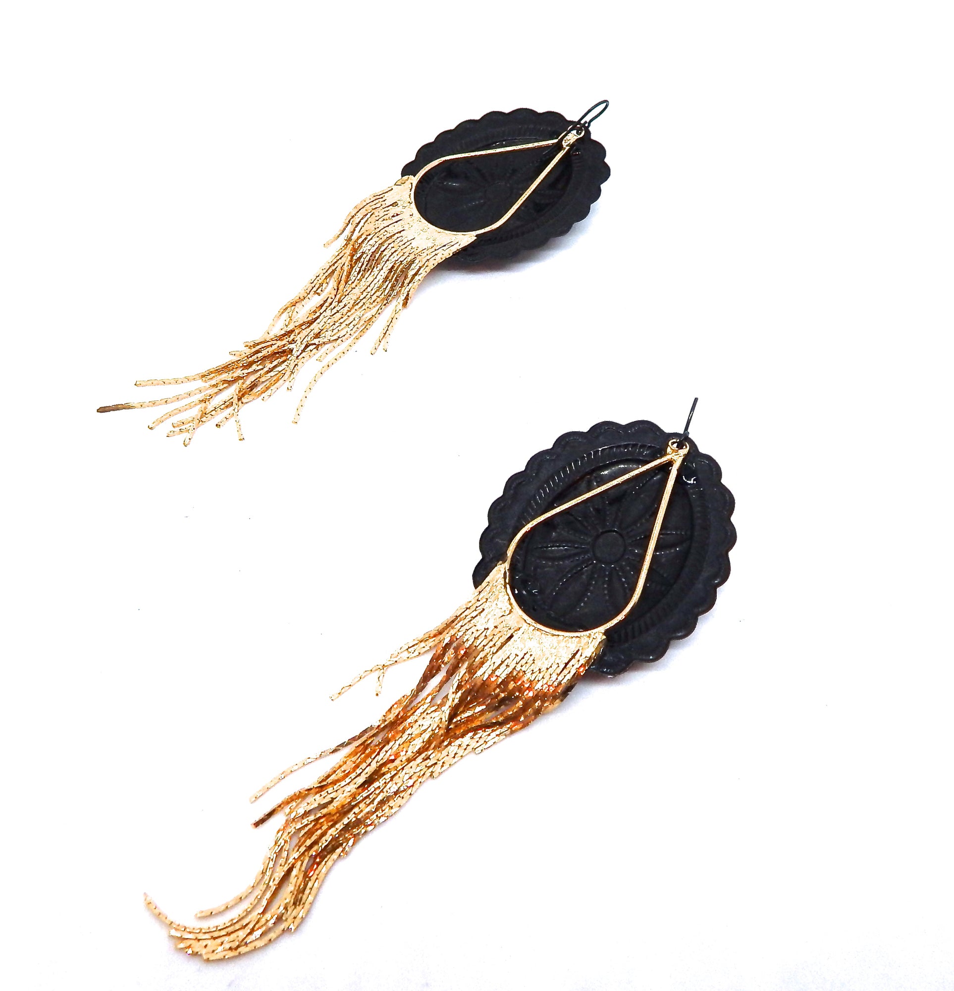 PONDEROSA LONE STAR CONCHO FRINGE EARRINGS