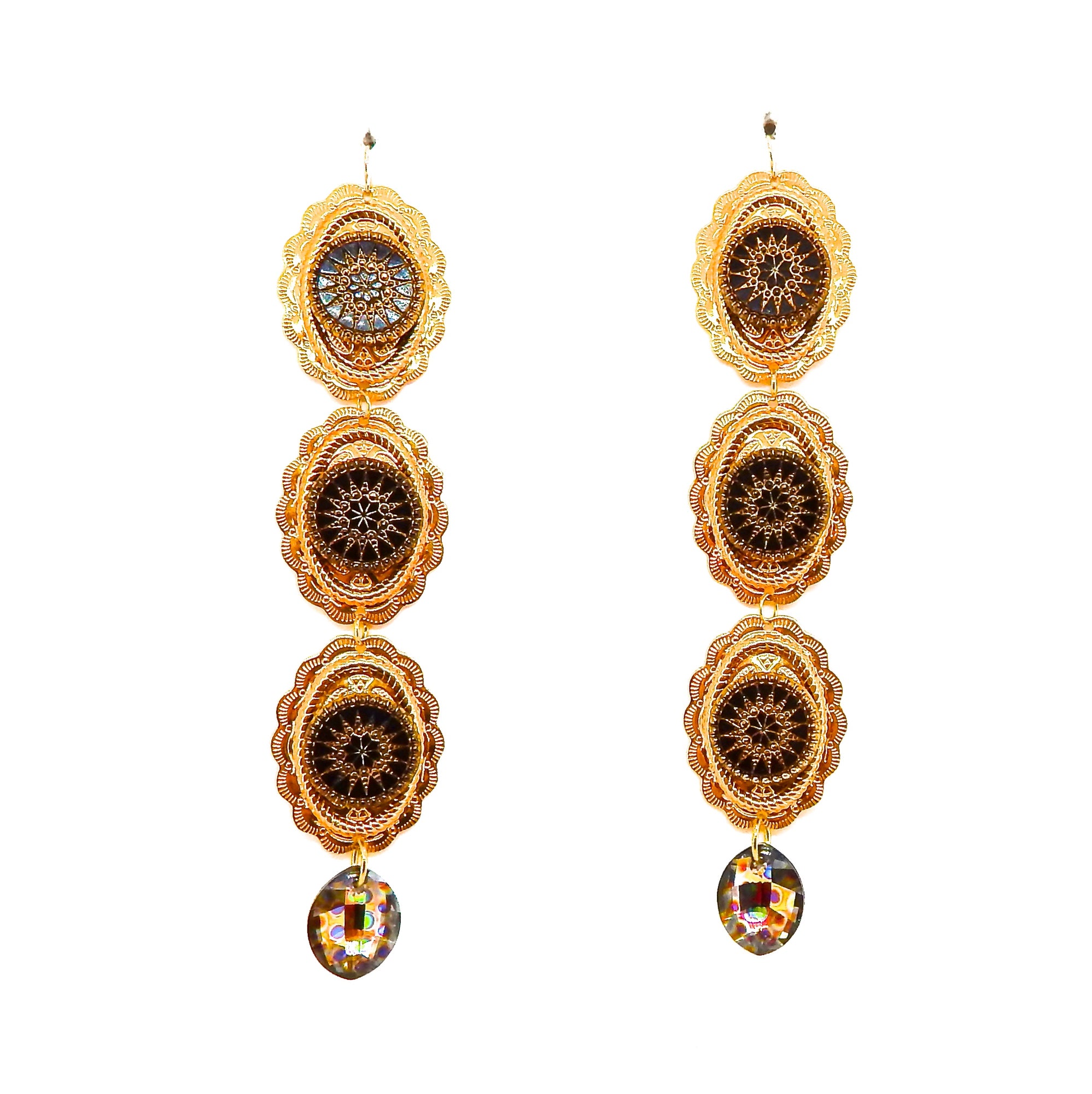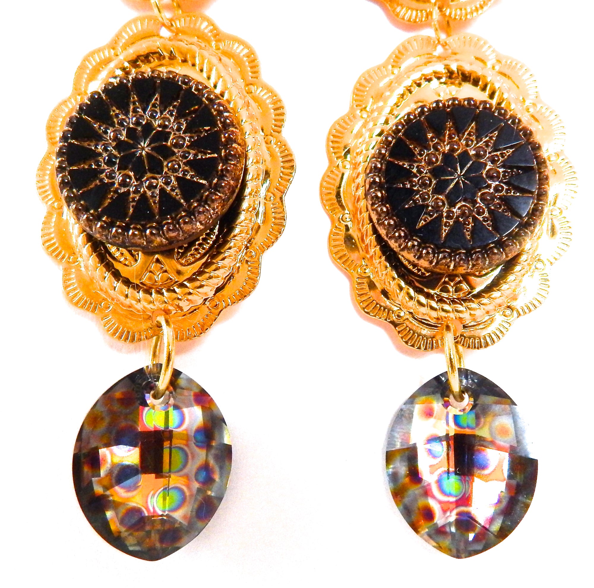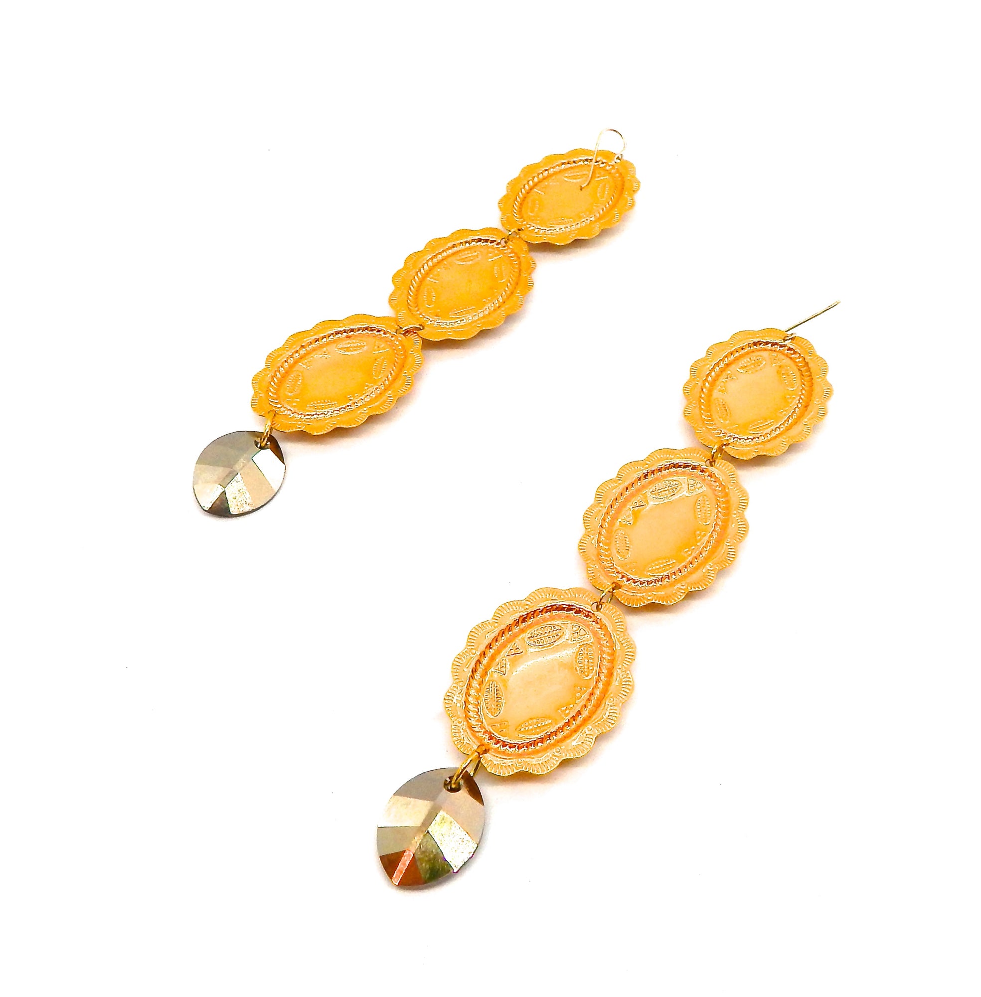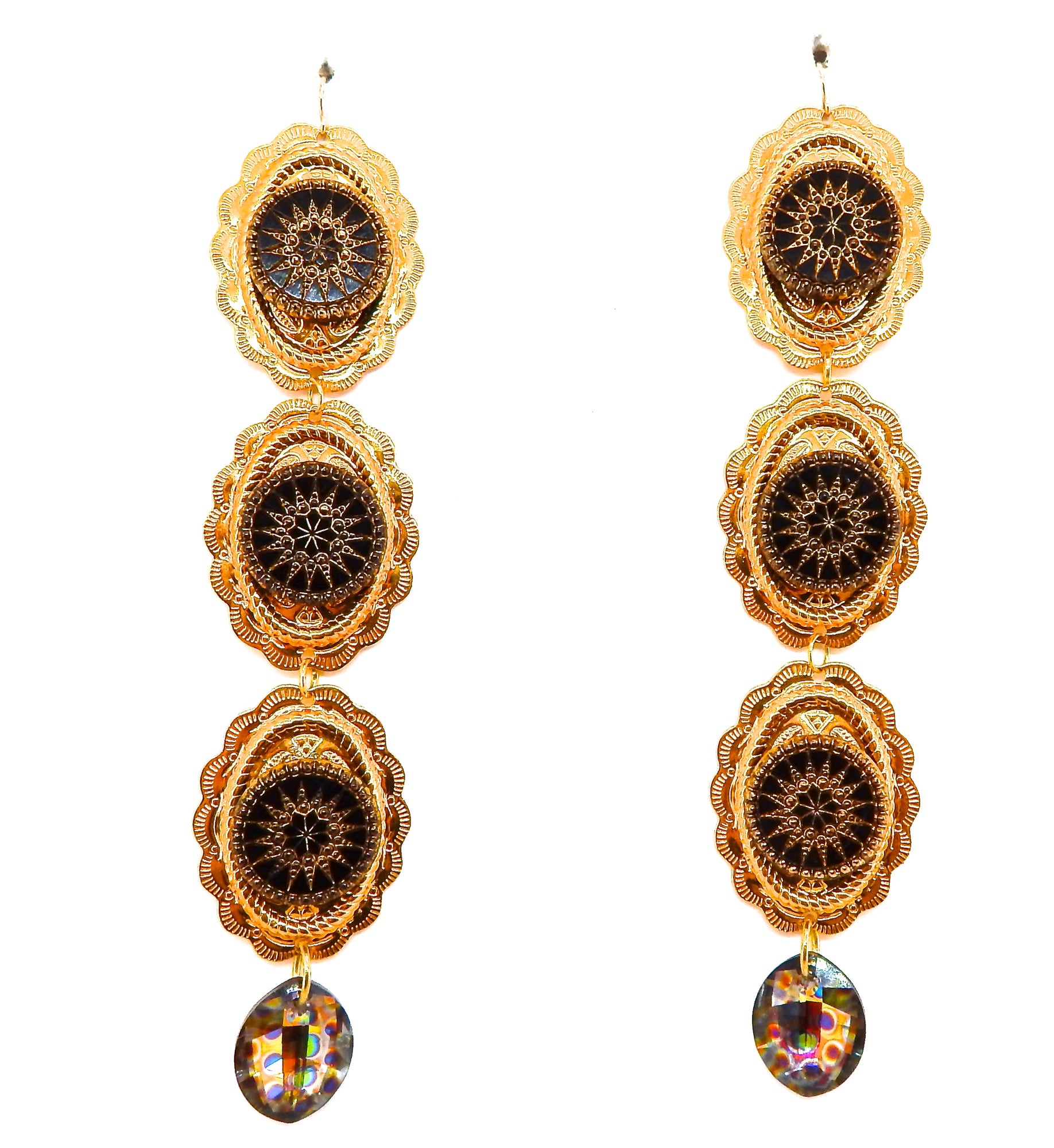 PONDEROSA LONGMIRE GOLDEN PEACOCK CONCHO EARRINGS