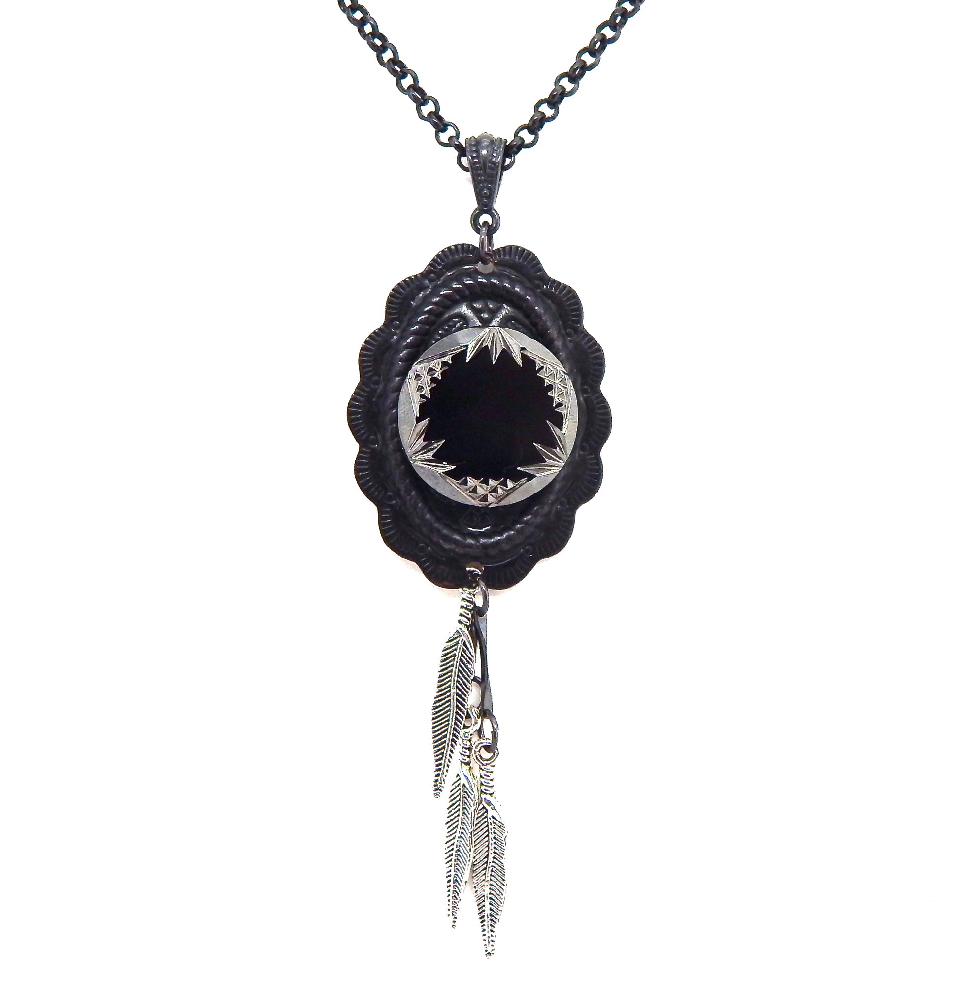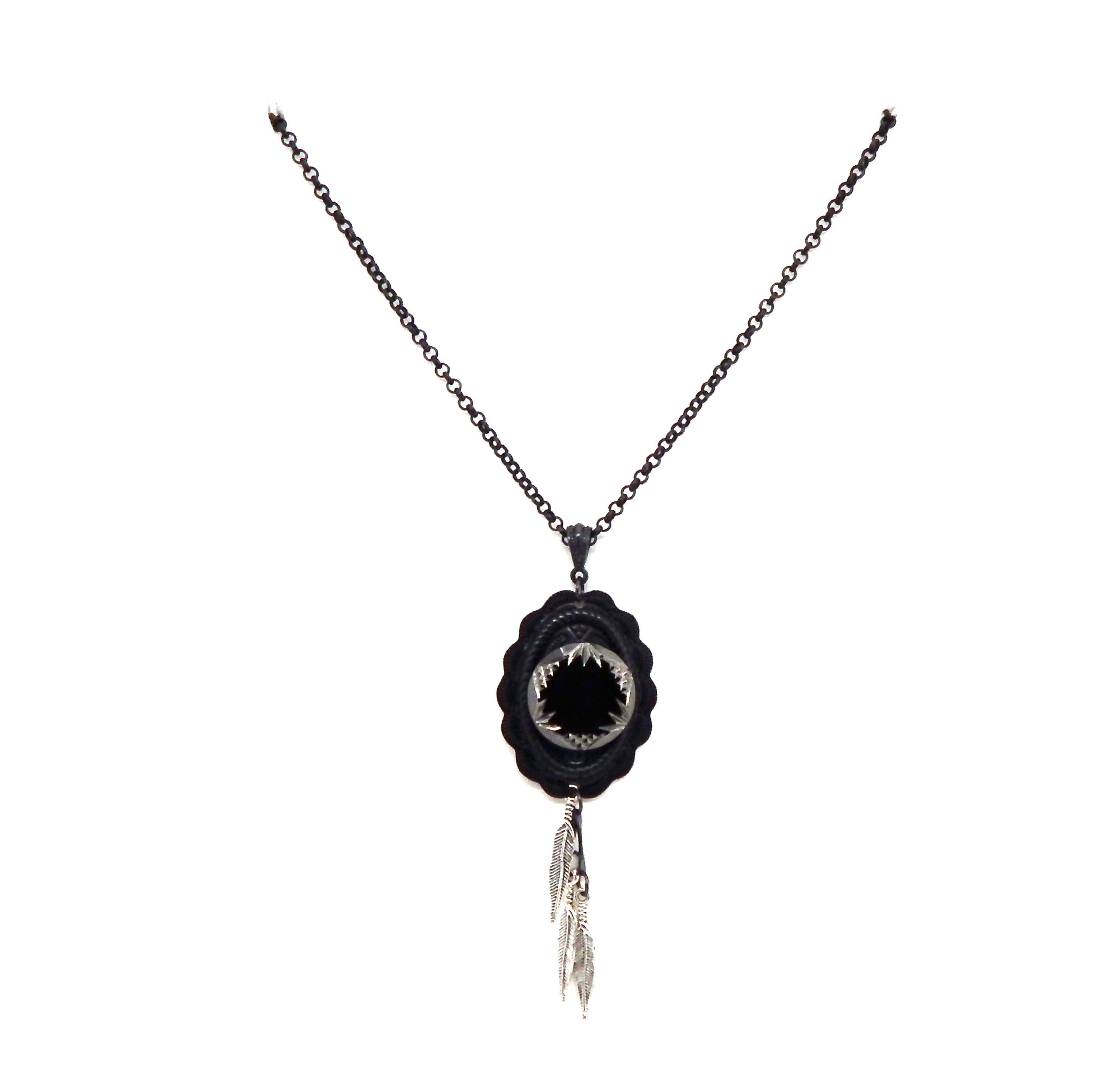 PONDEROSA LONGMIRE SMOKE CONCHO FEATHER NECKLACE