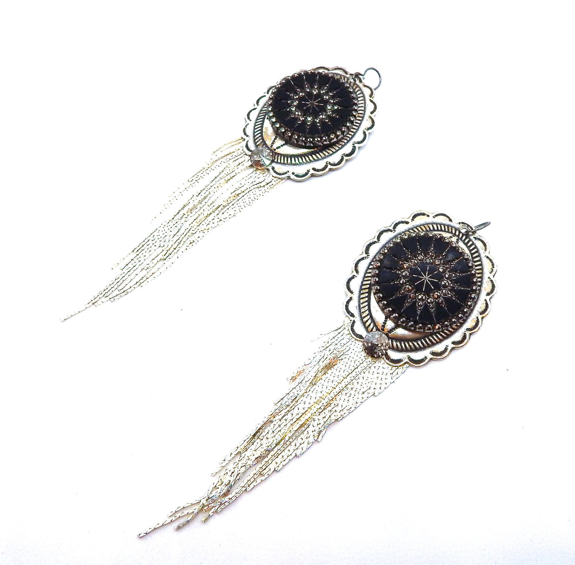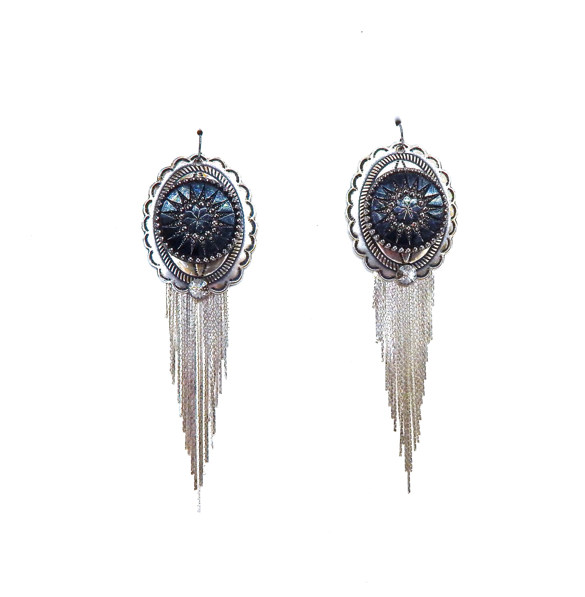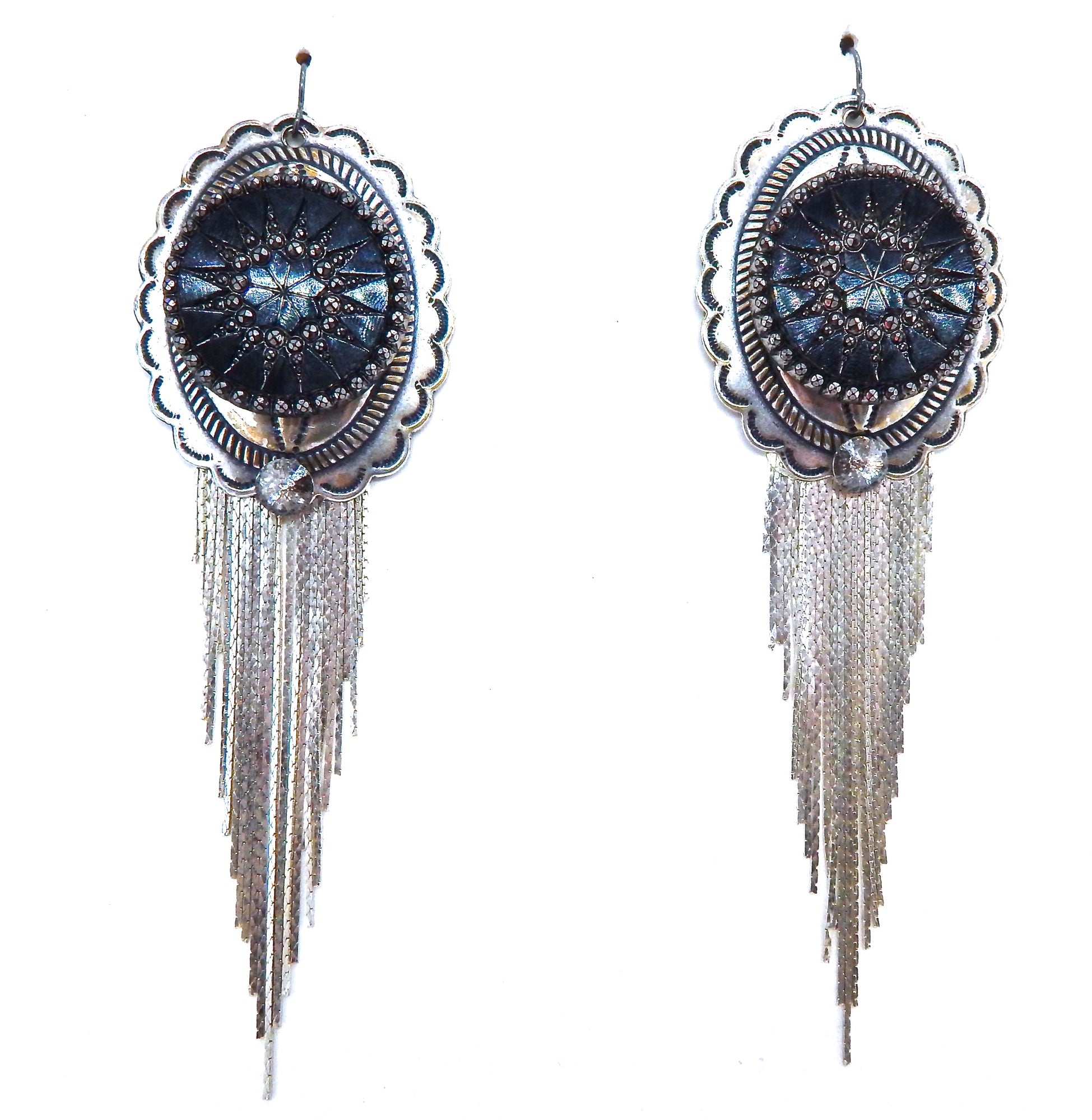 PONDEROSA PONY EXPRESS CONCHO FRINGE EARRINGS