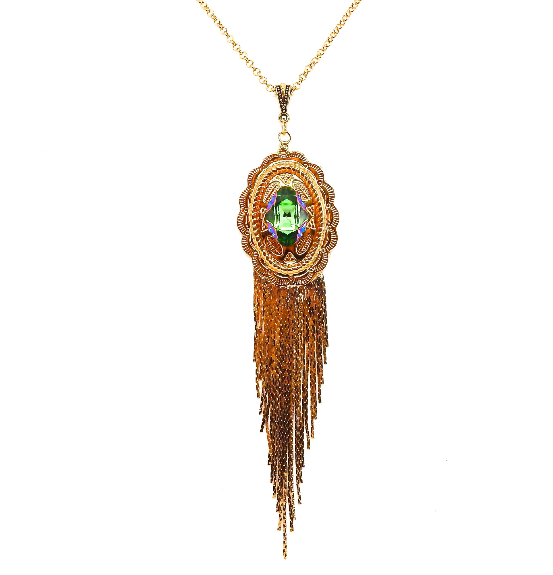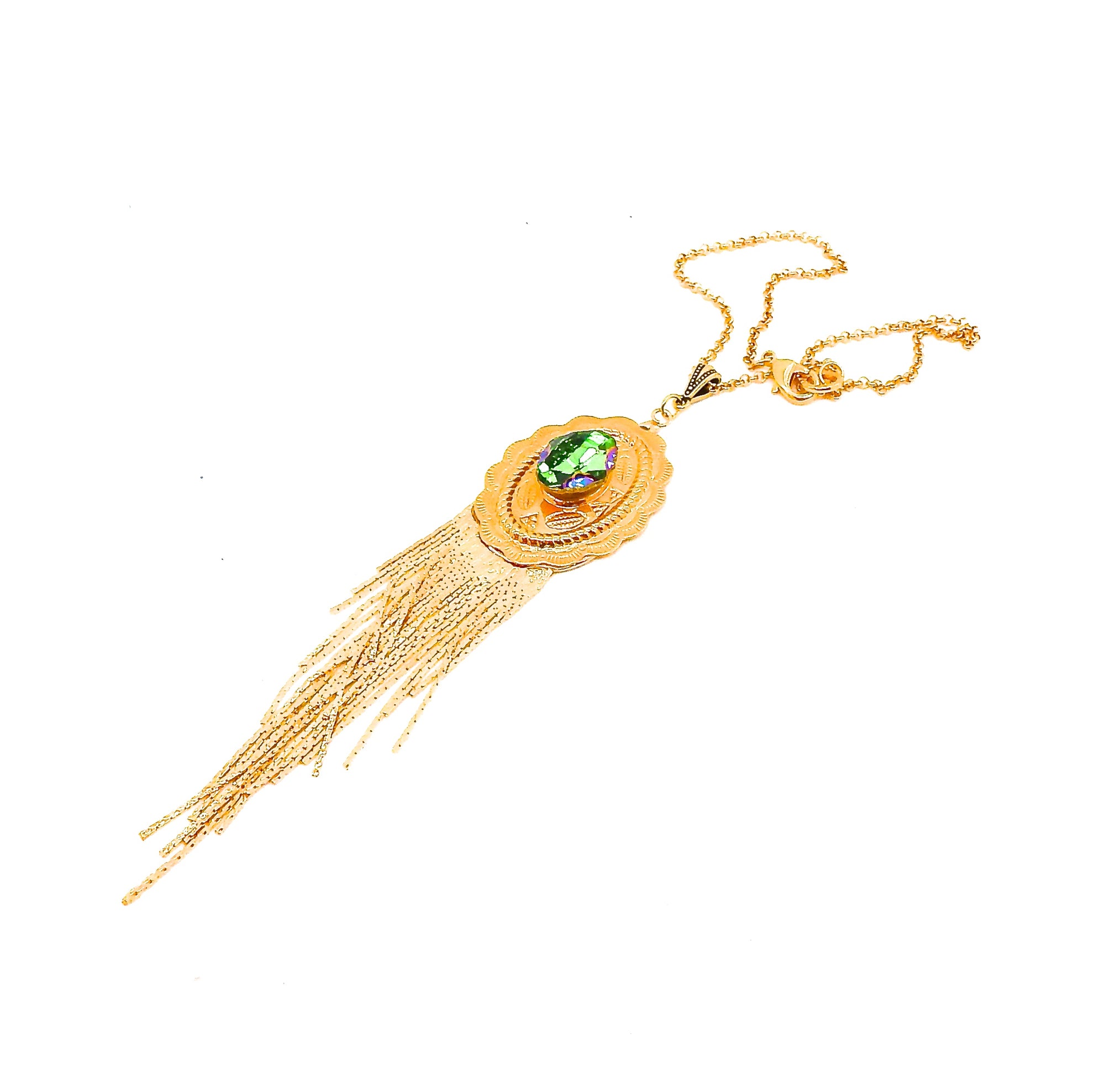 - 19MM AUSTRIAN CRYSTAL PERIDOT GREEN RAINBOW TRIBAL OVAL