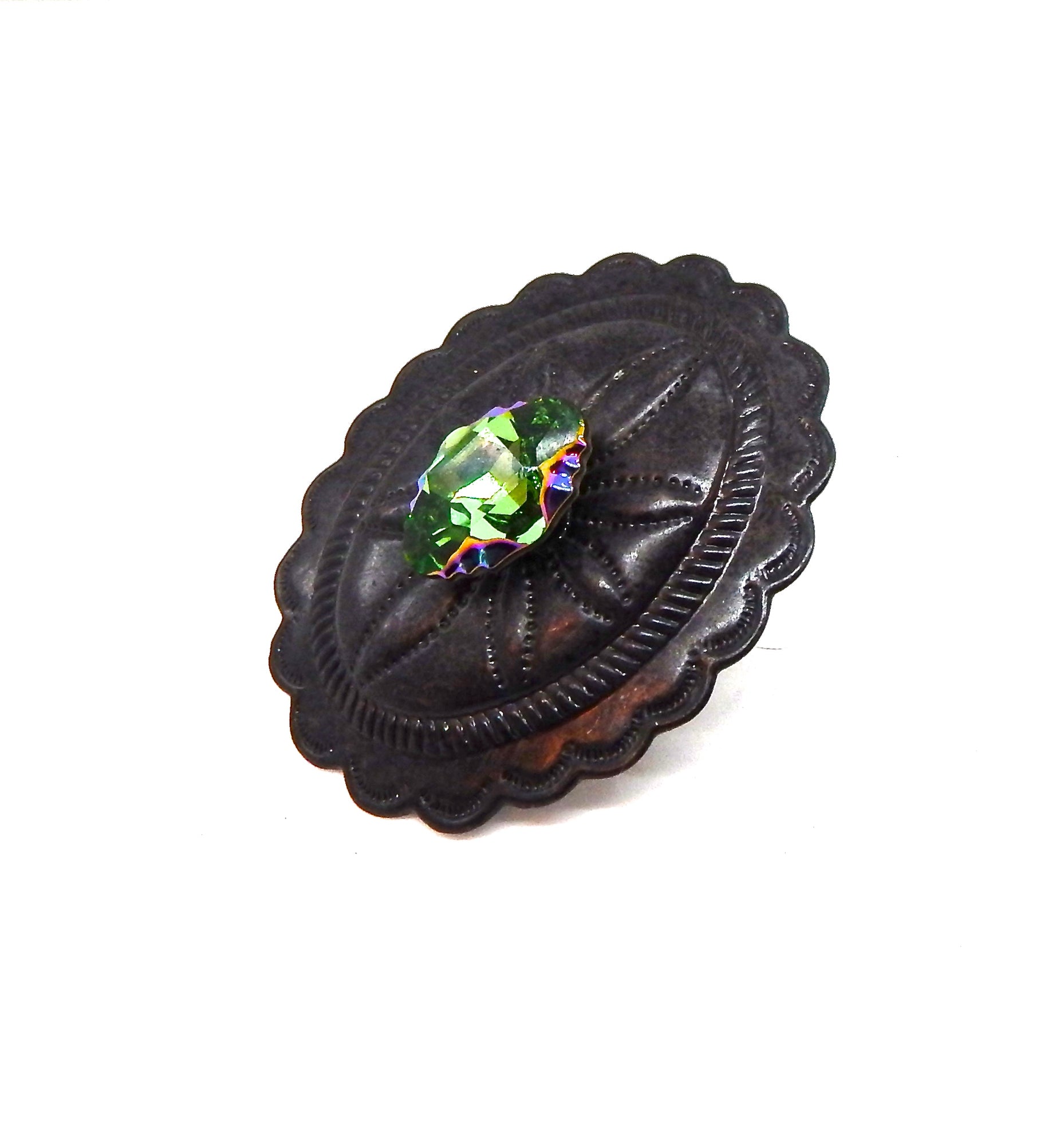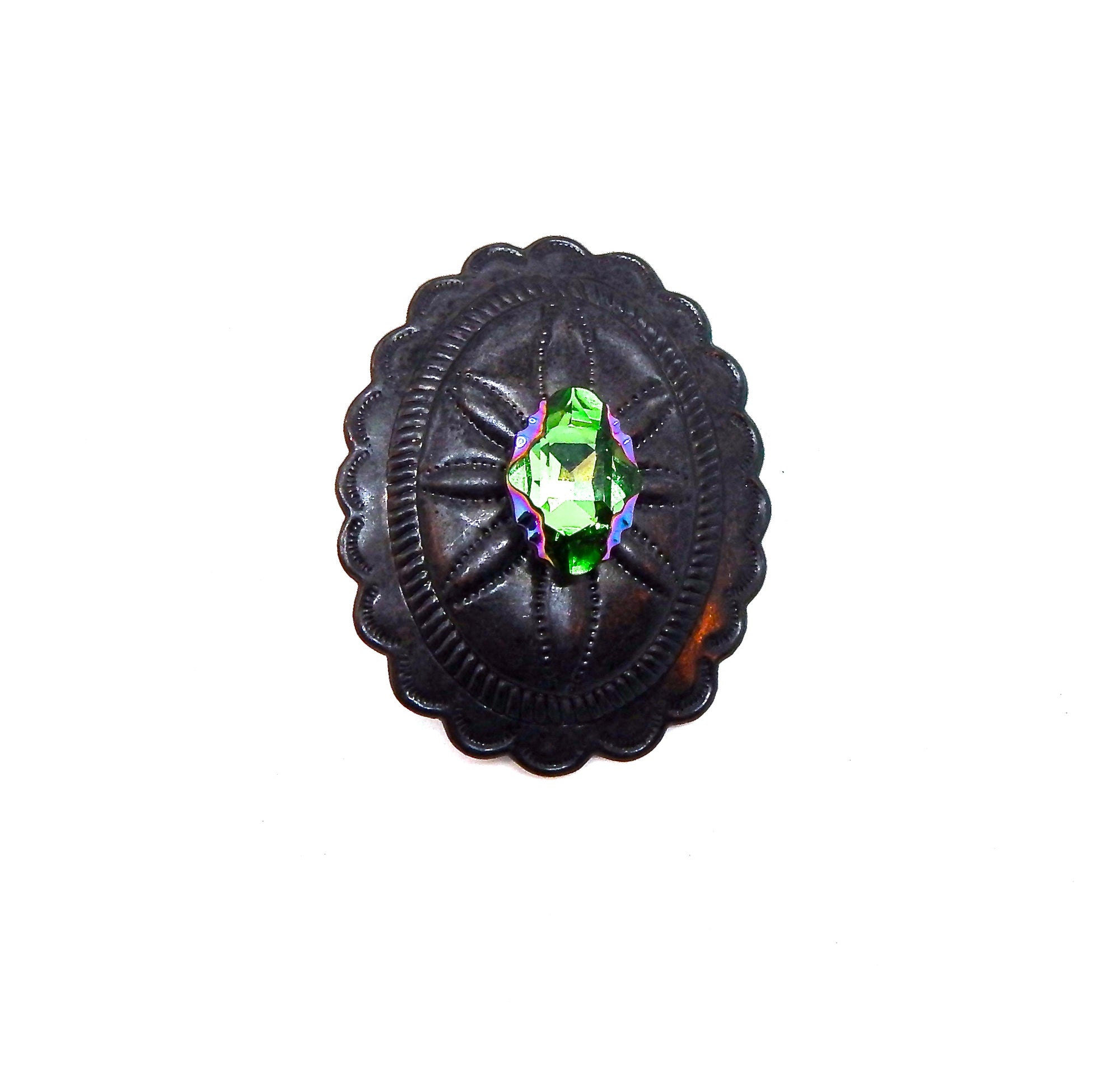 - 2.25X1.25 INCH FLAT BLACK PLATED RAW BRASS CONCHO