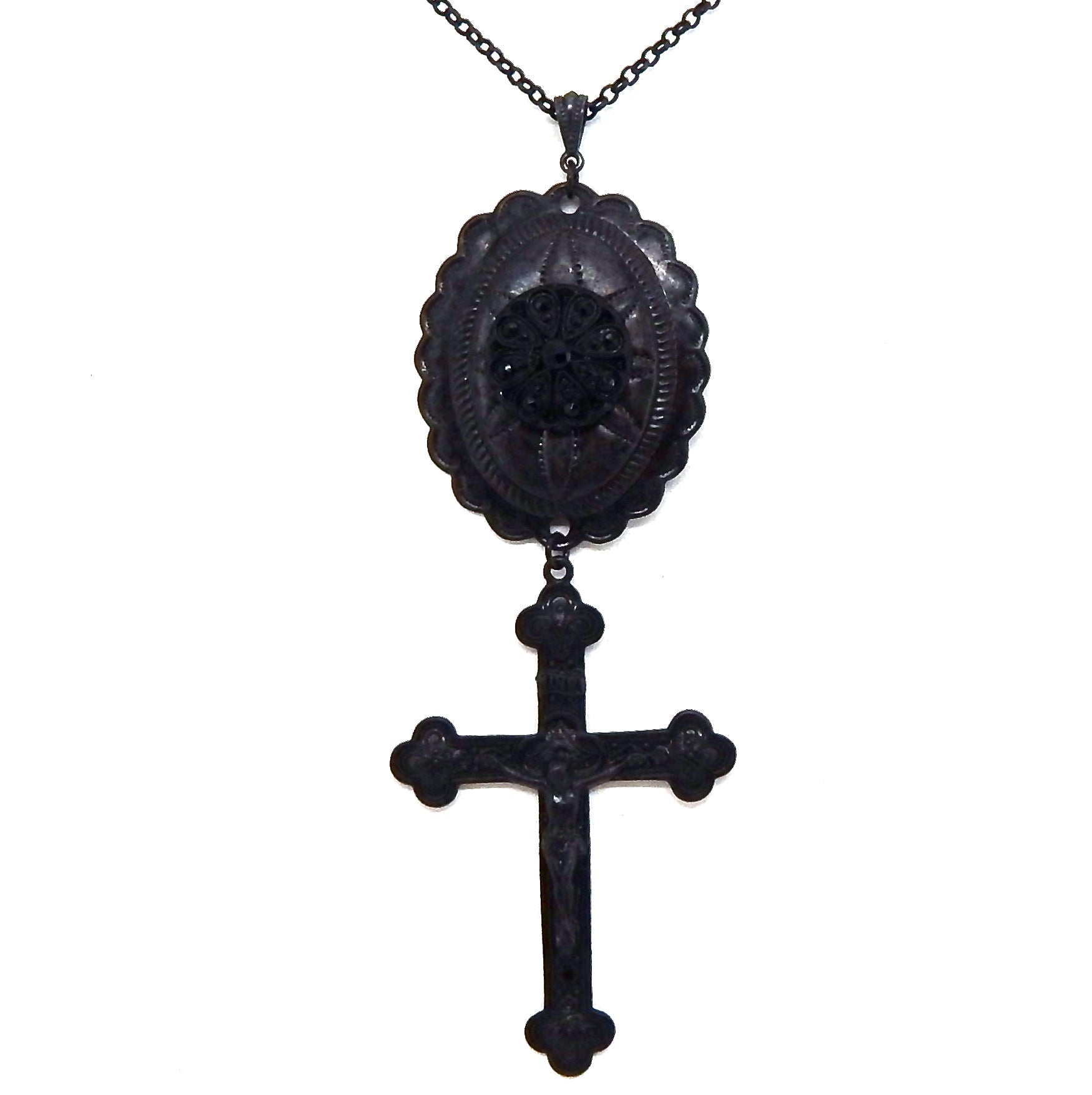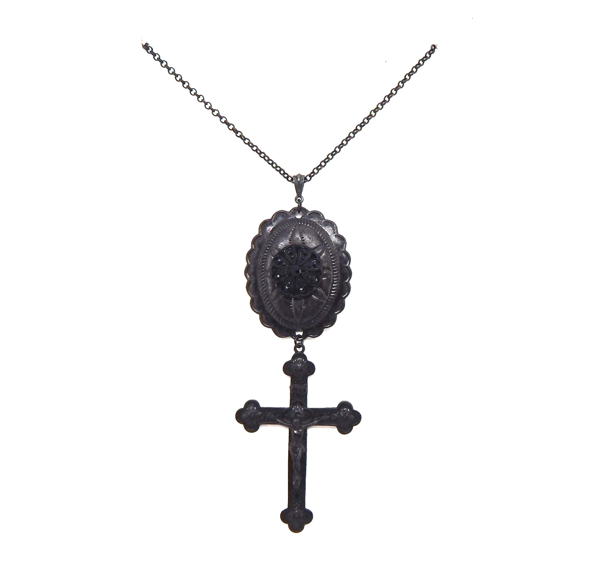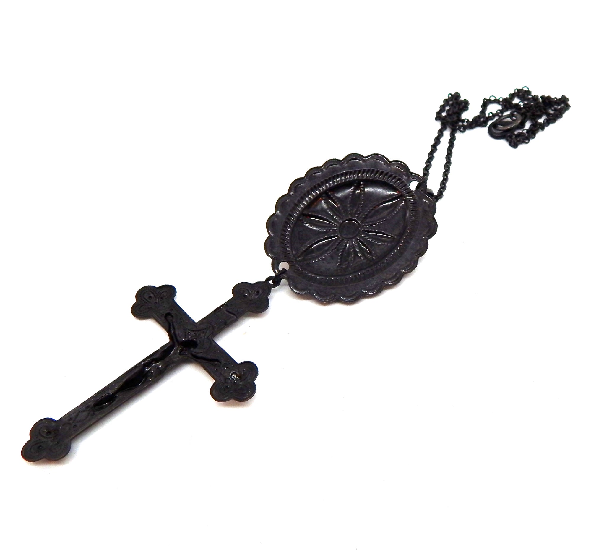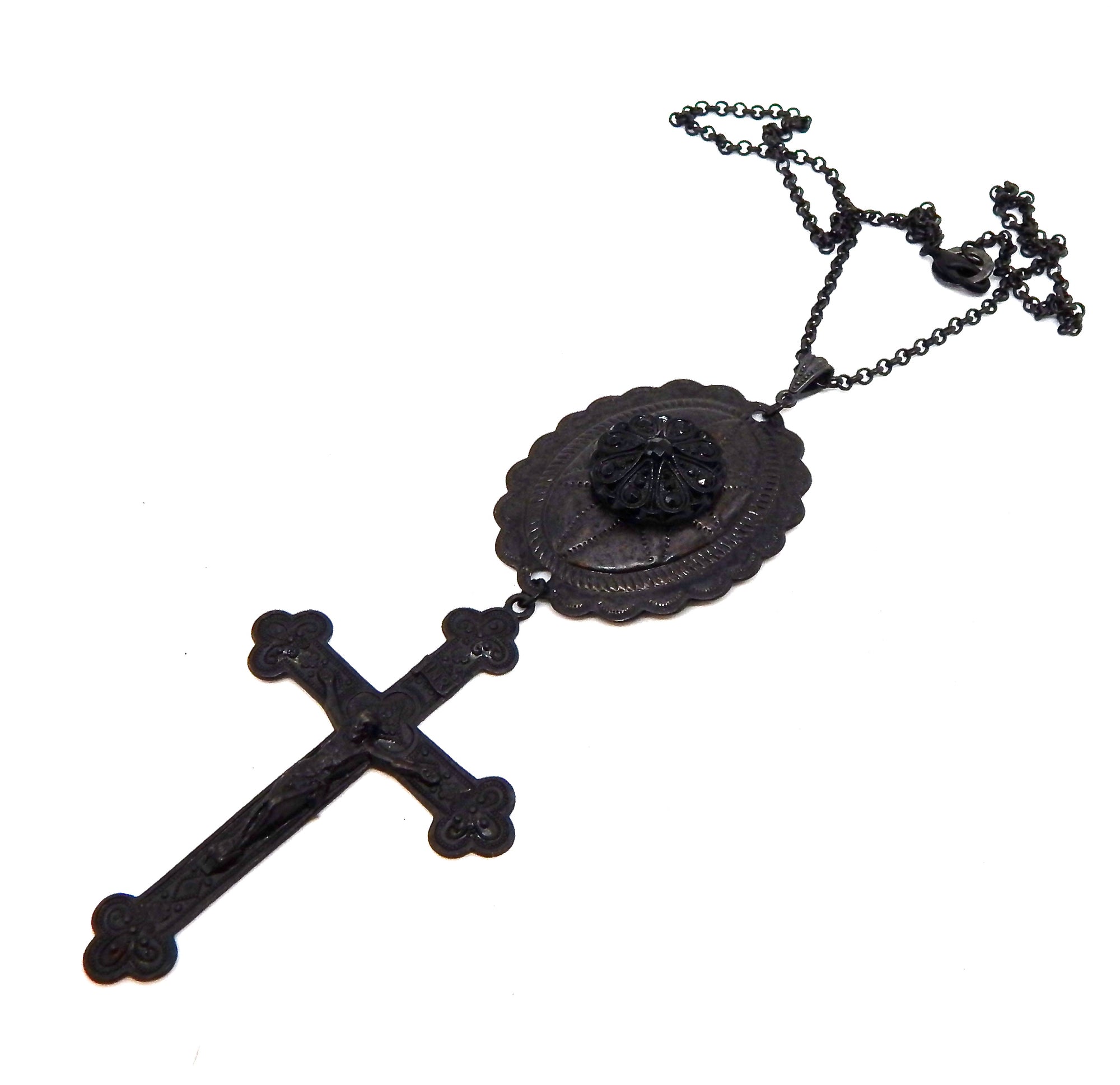 - 3X2 INCH FLAT BLACK PLATED RAW BRASS CRUCIFIX