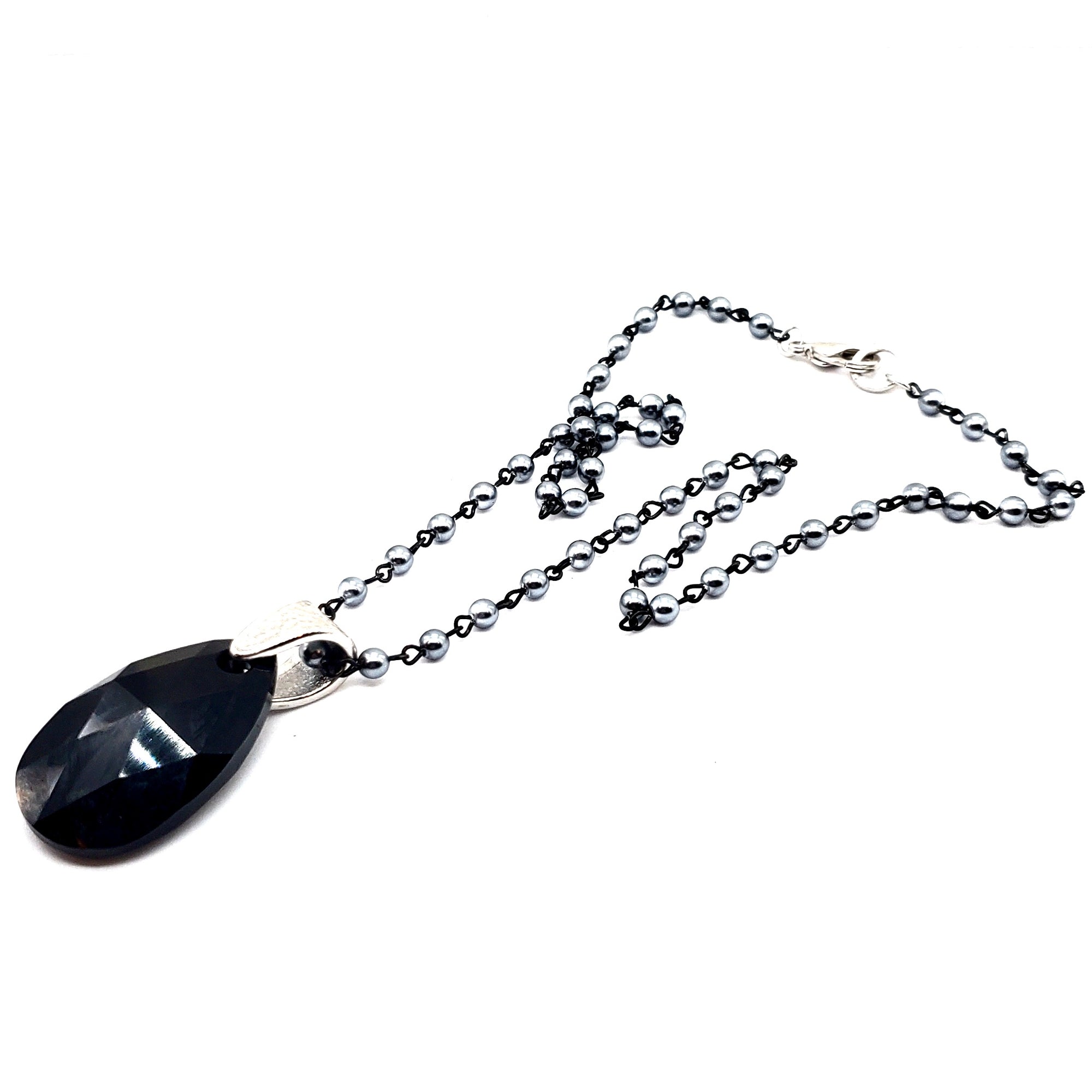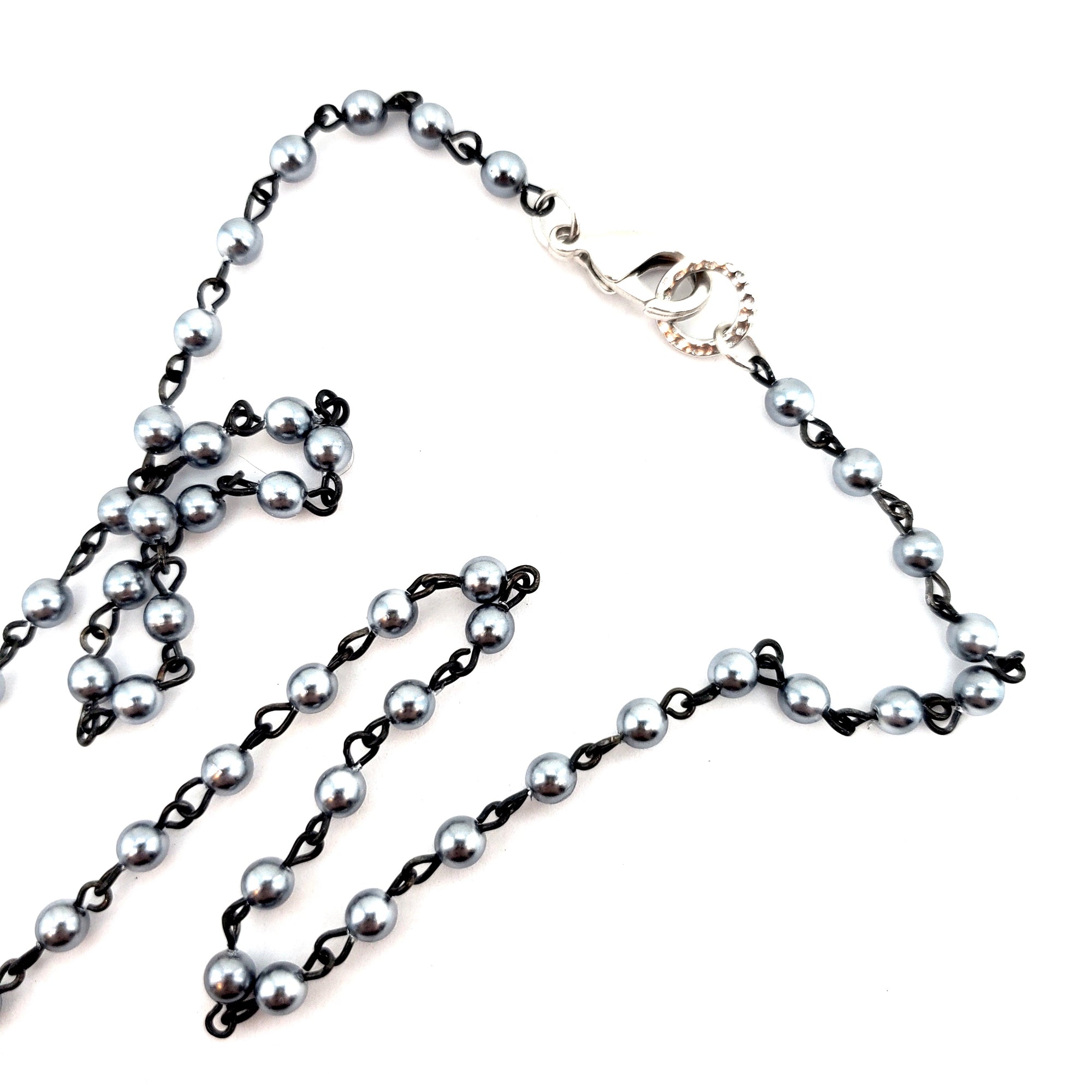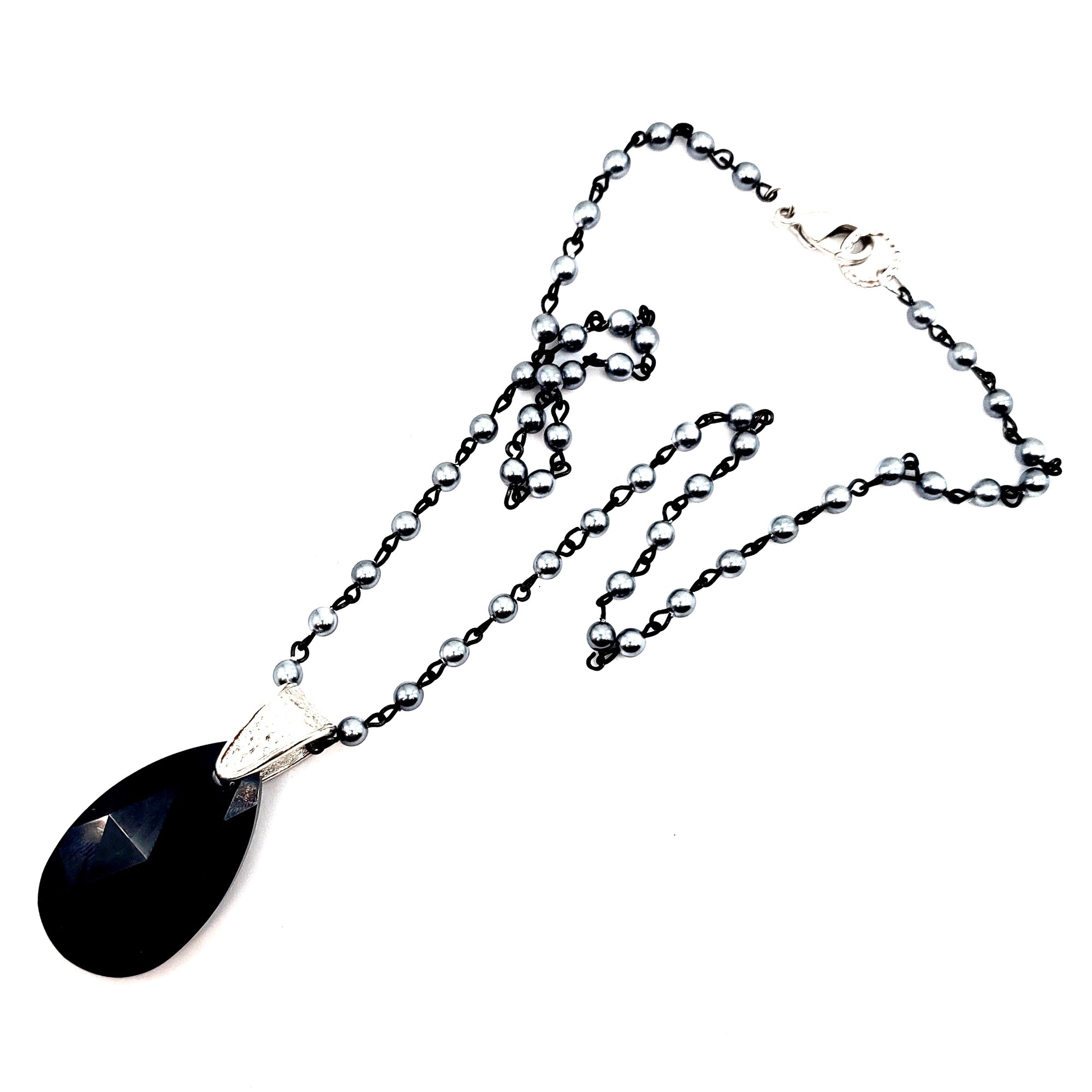 RARE FIND SMOKE DROP GREY PEARL CHAIN NECKLACE