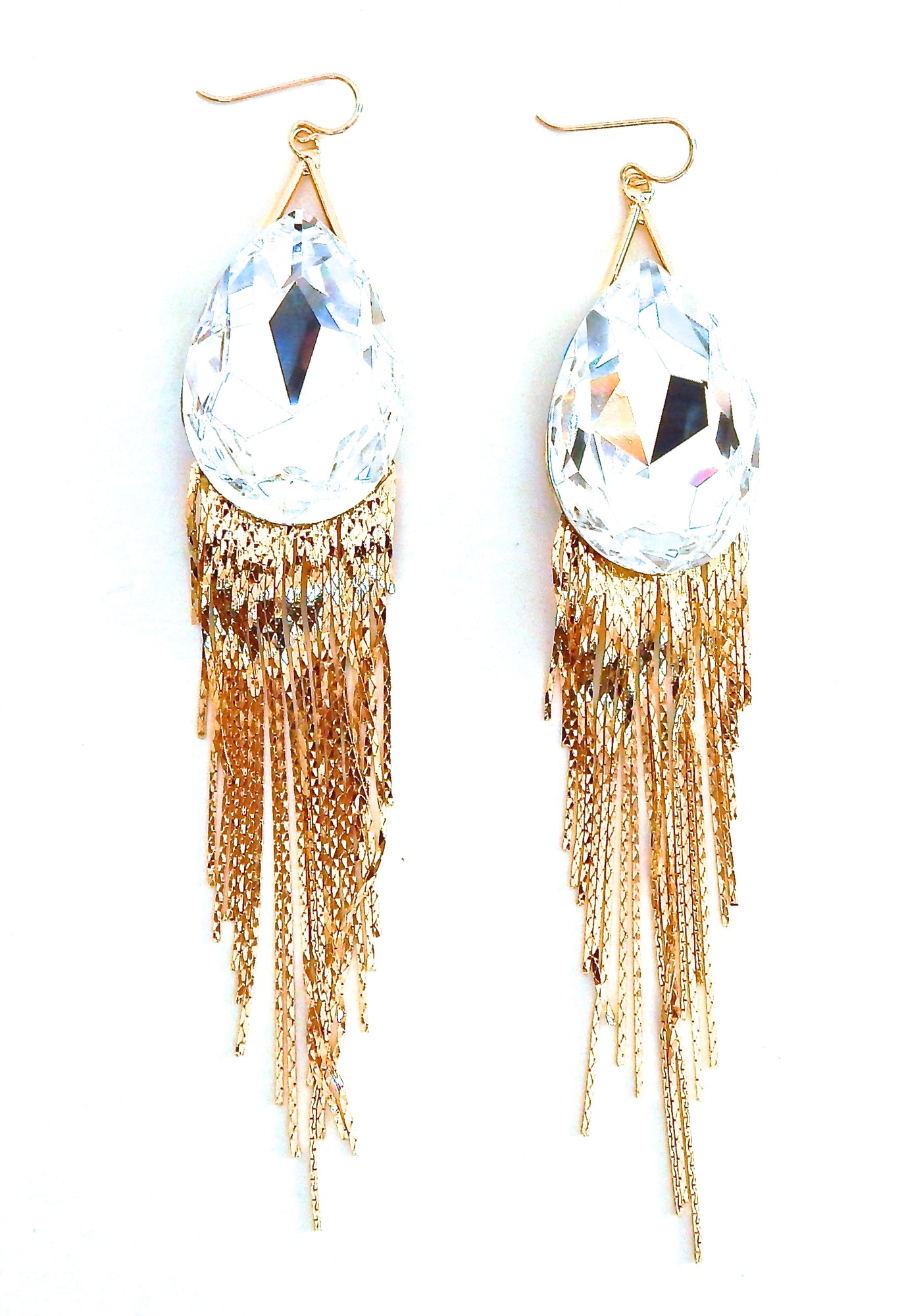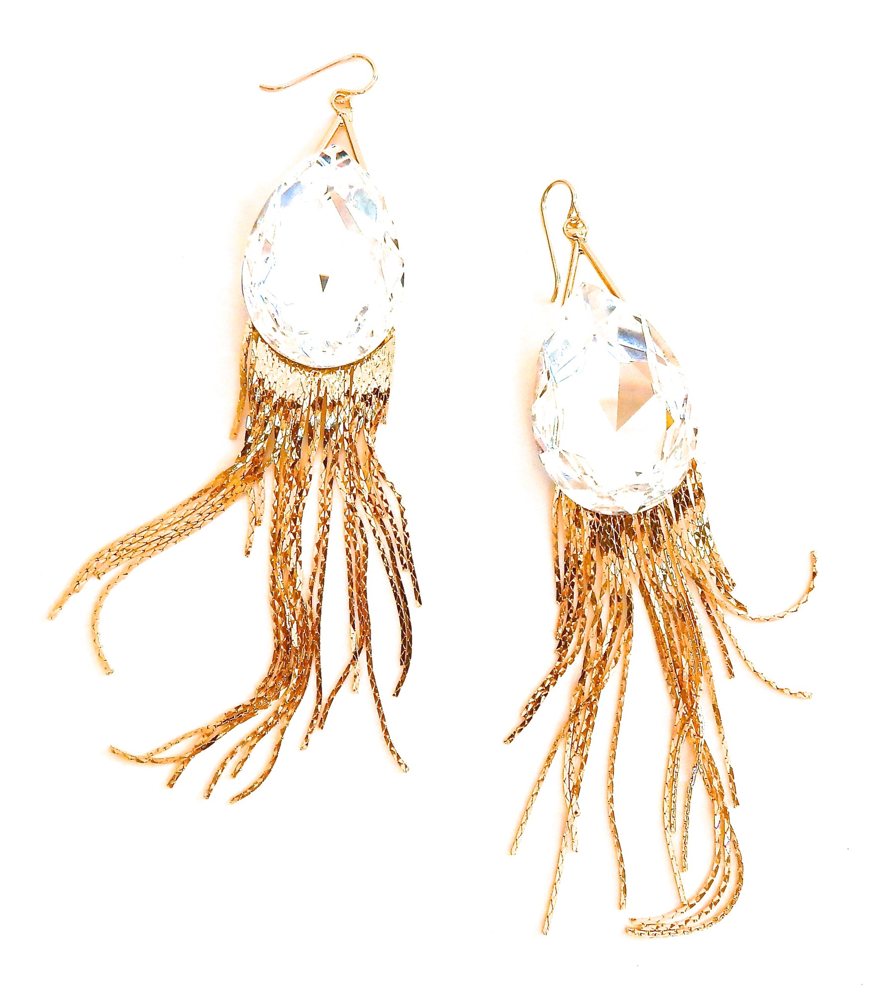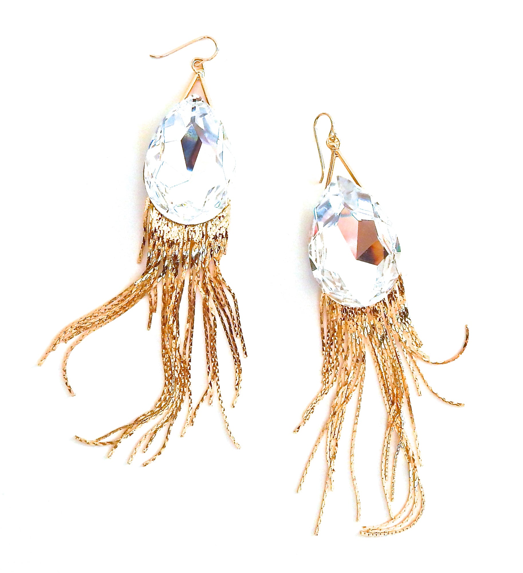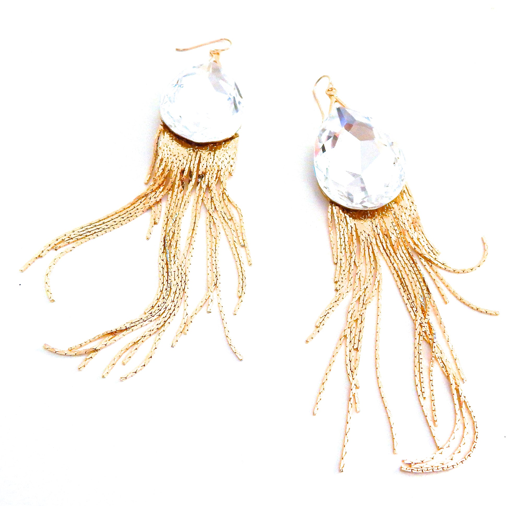 THUNDERBIRD MOONDUST DROP GOLD FRINGE EARRINGS