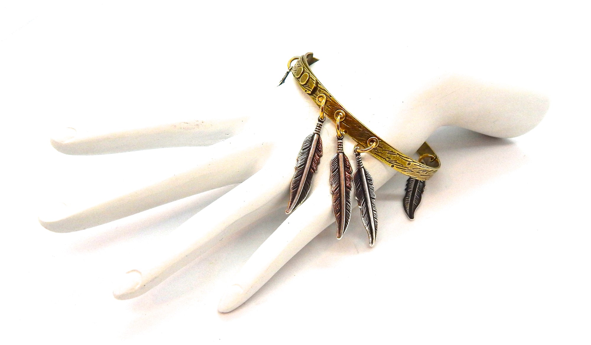 - 6 1.75 INCH SILVER TONE BRASS FEATHER CHARMS