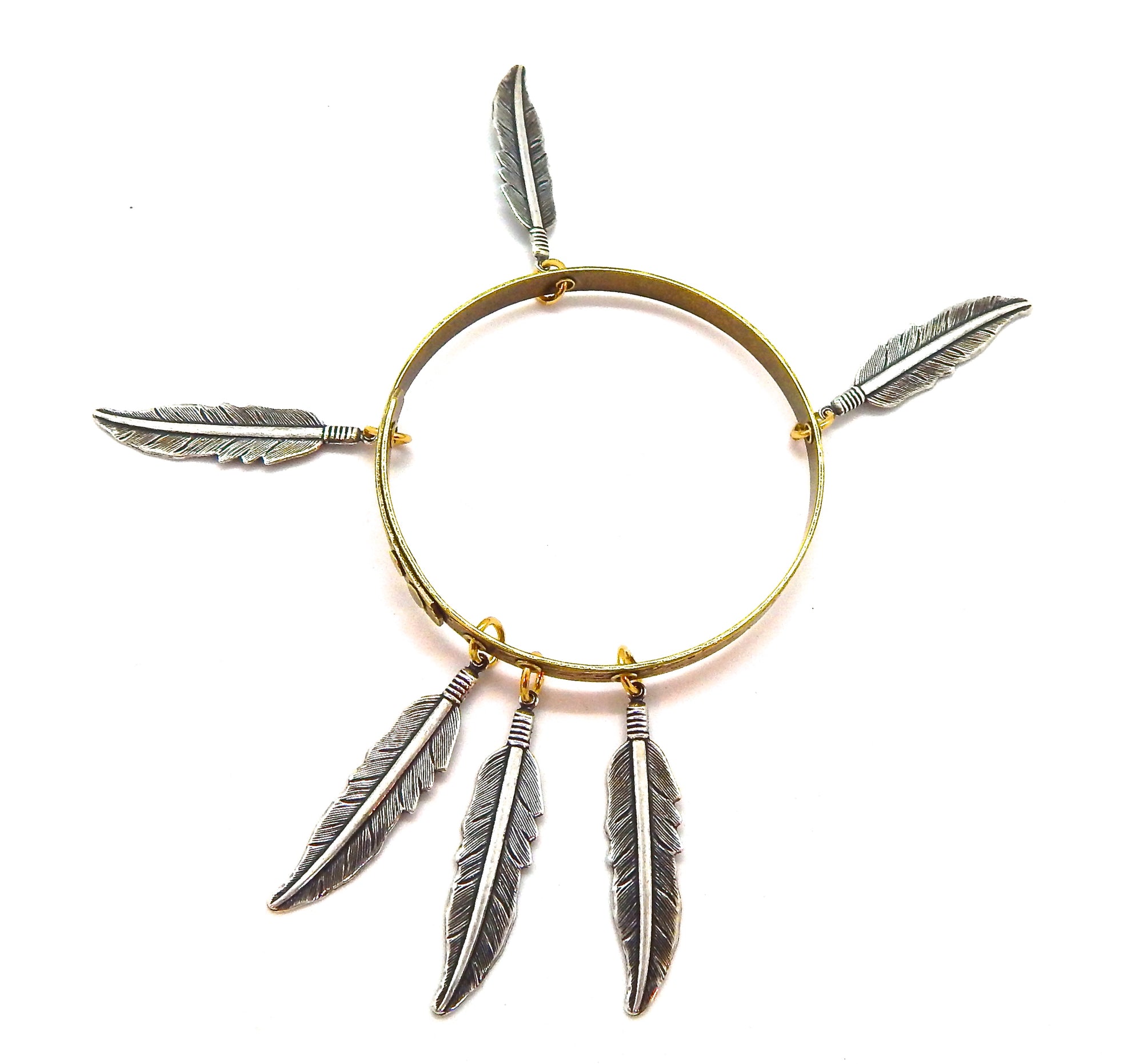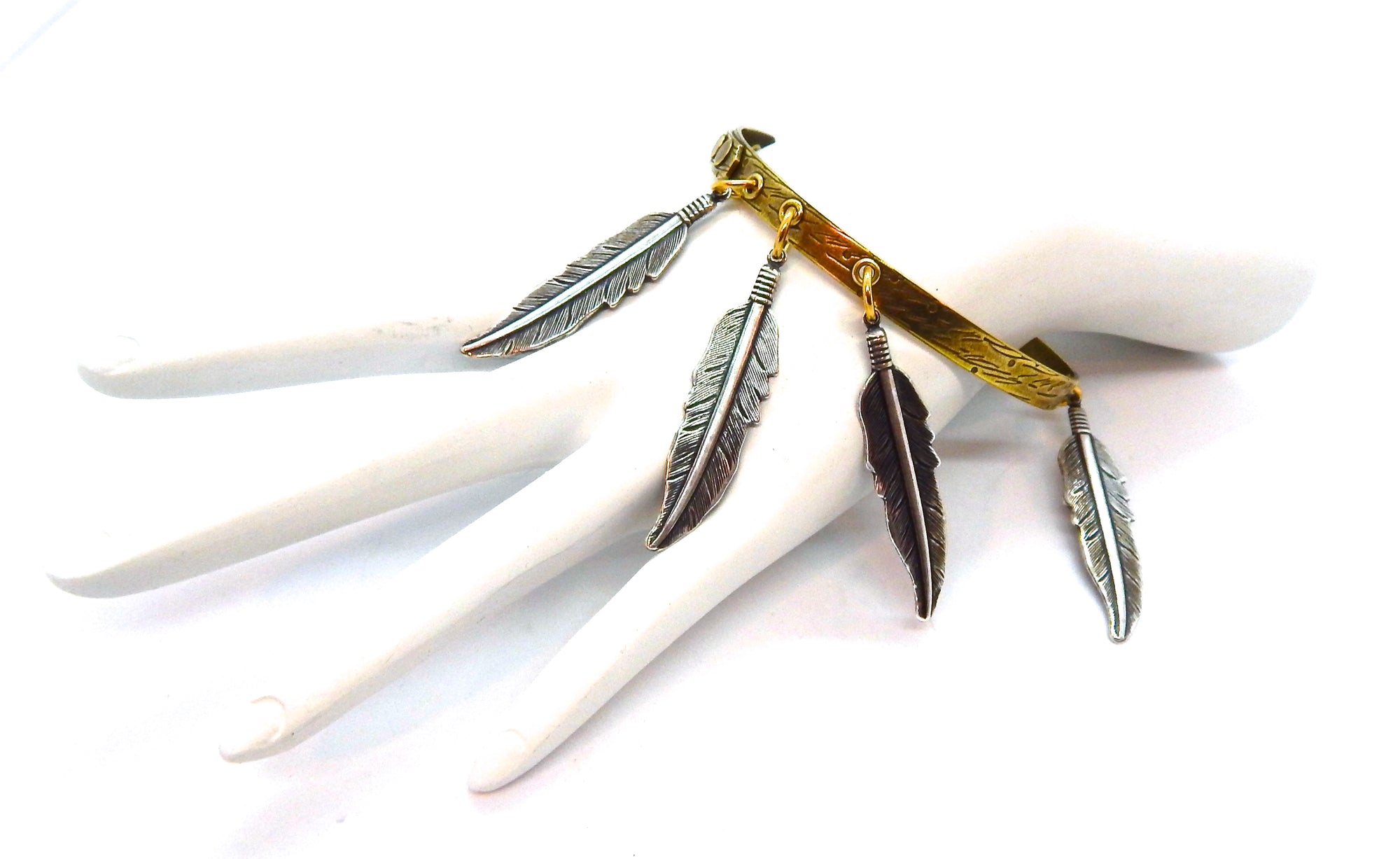 - 6 1.75 INCH SILVER TONE BRASS FEATHER CHARMS