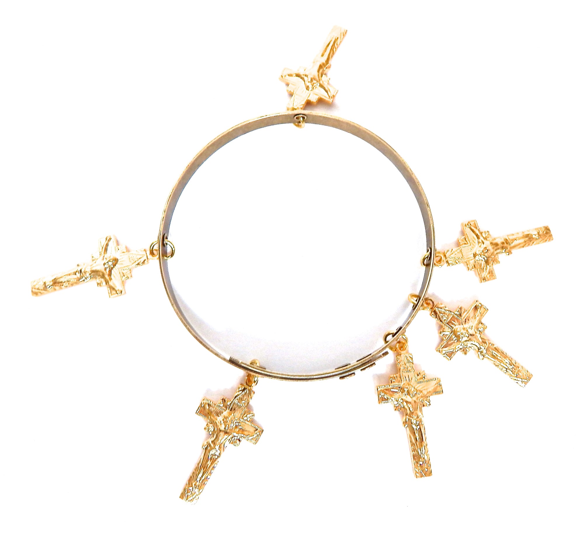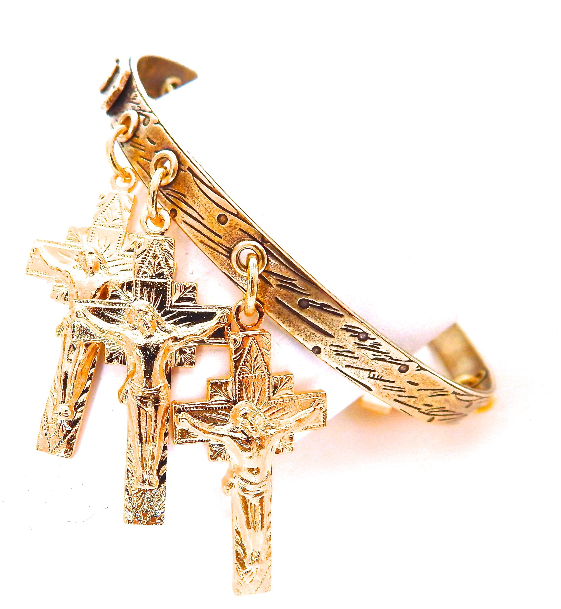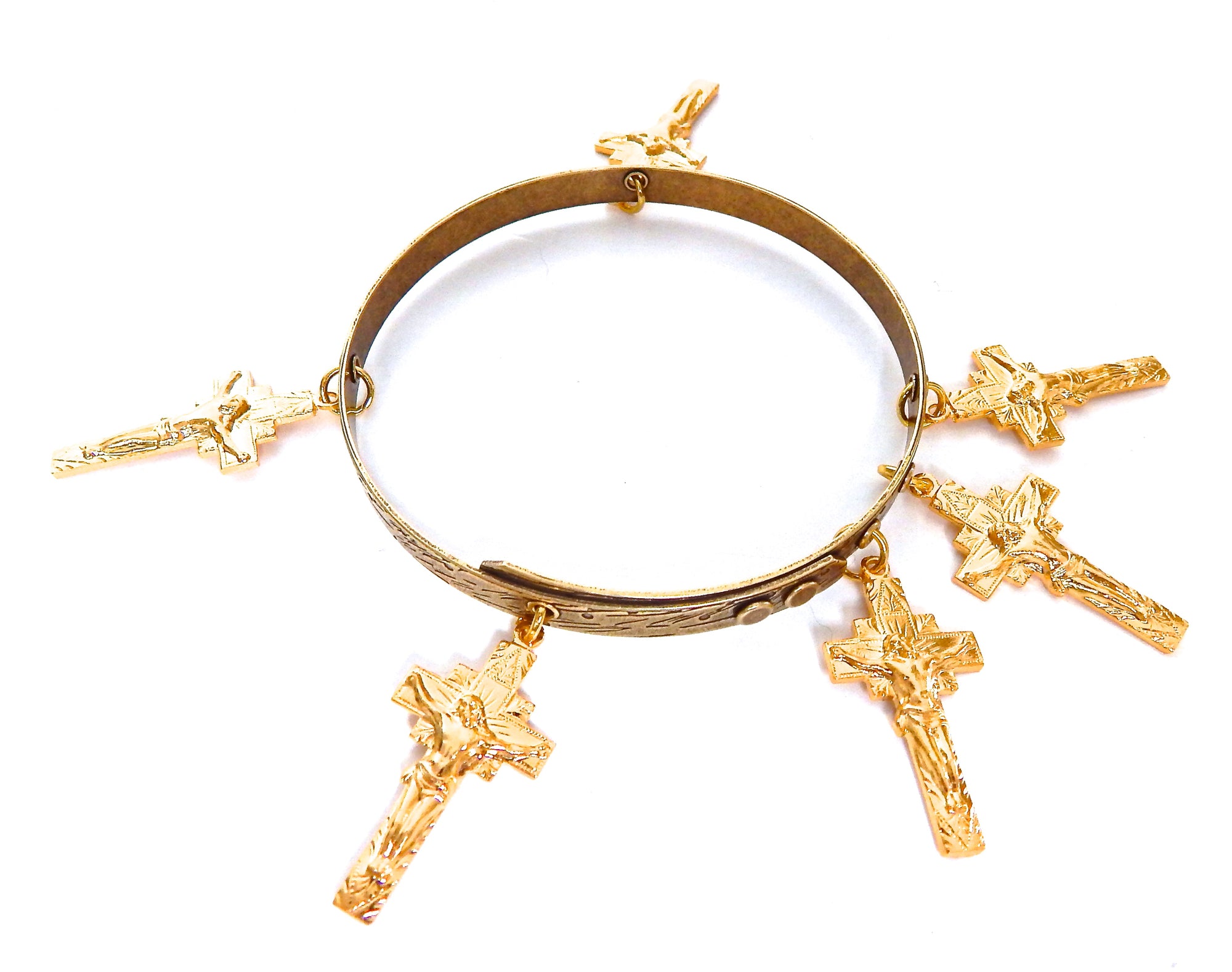 - 6 1.5 GOLDTONE BRASS PLATED CRUCIFIX CHARMS