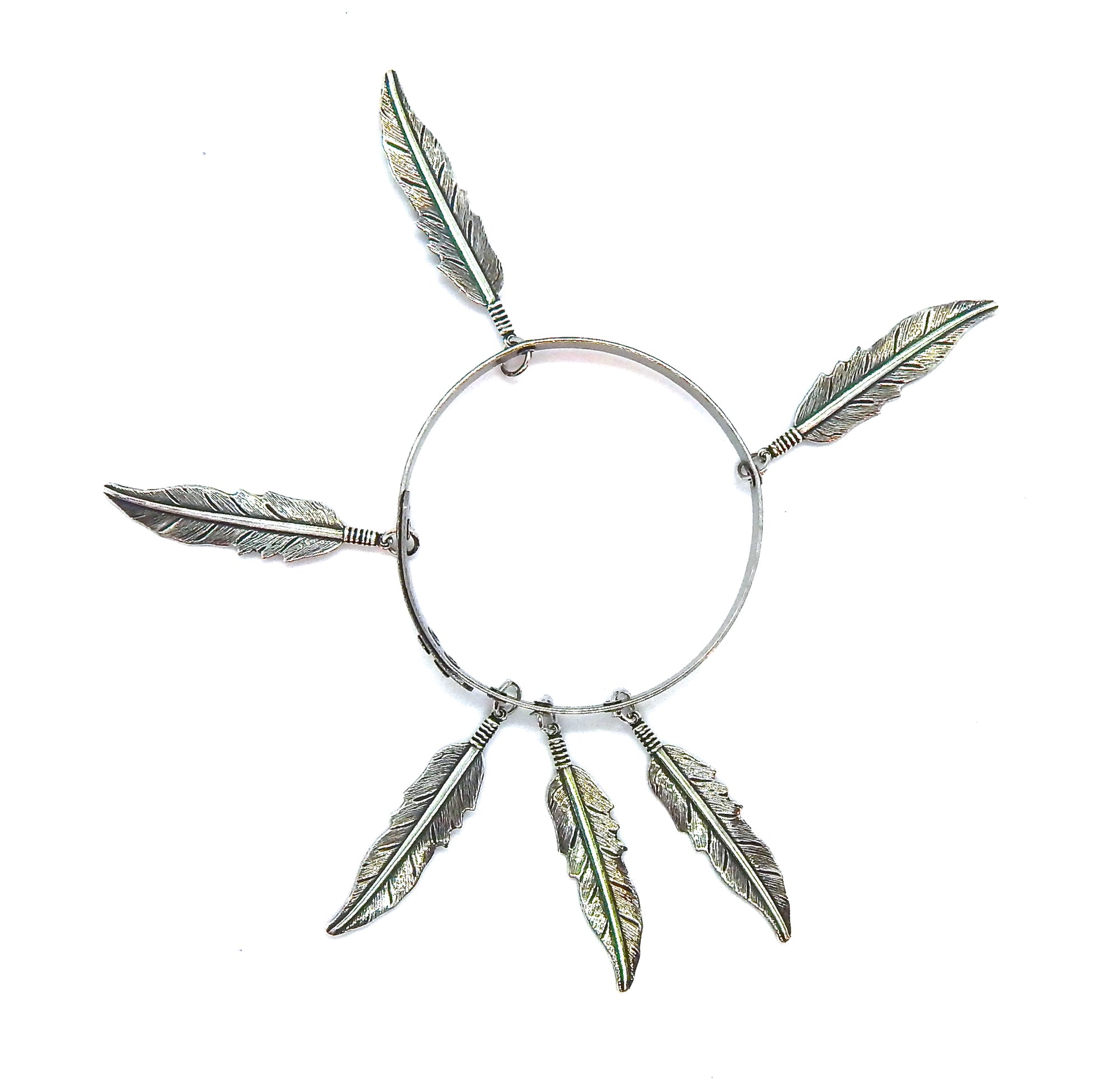 - 6 2 INCH SILVER TONE BRASS FEATHER CHARMS