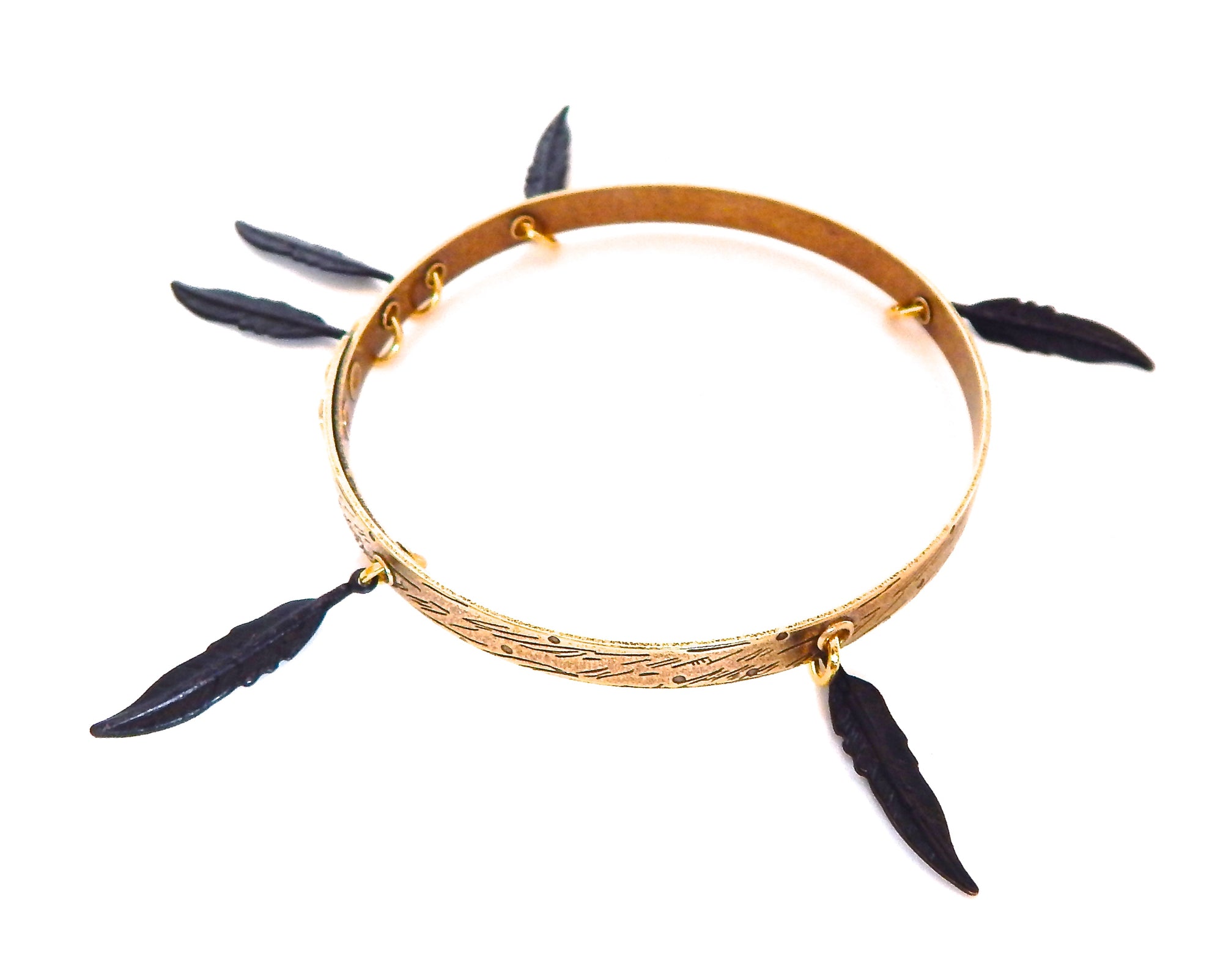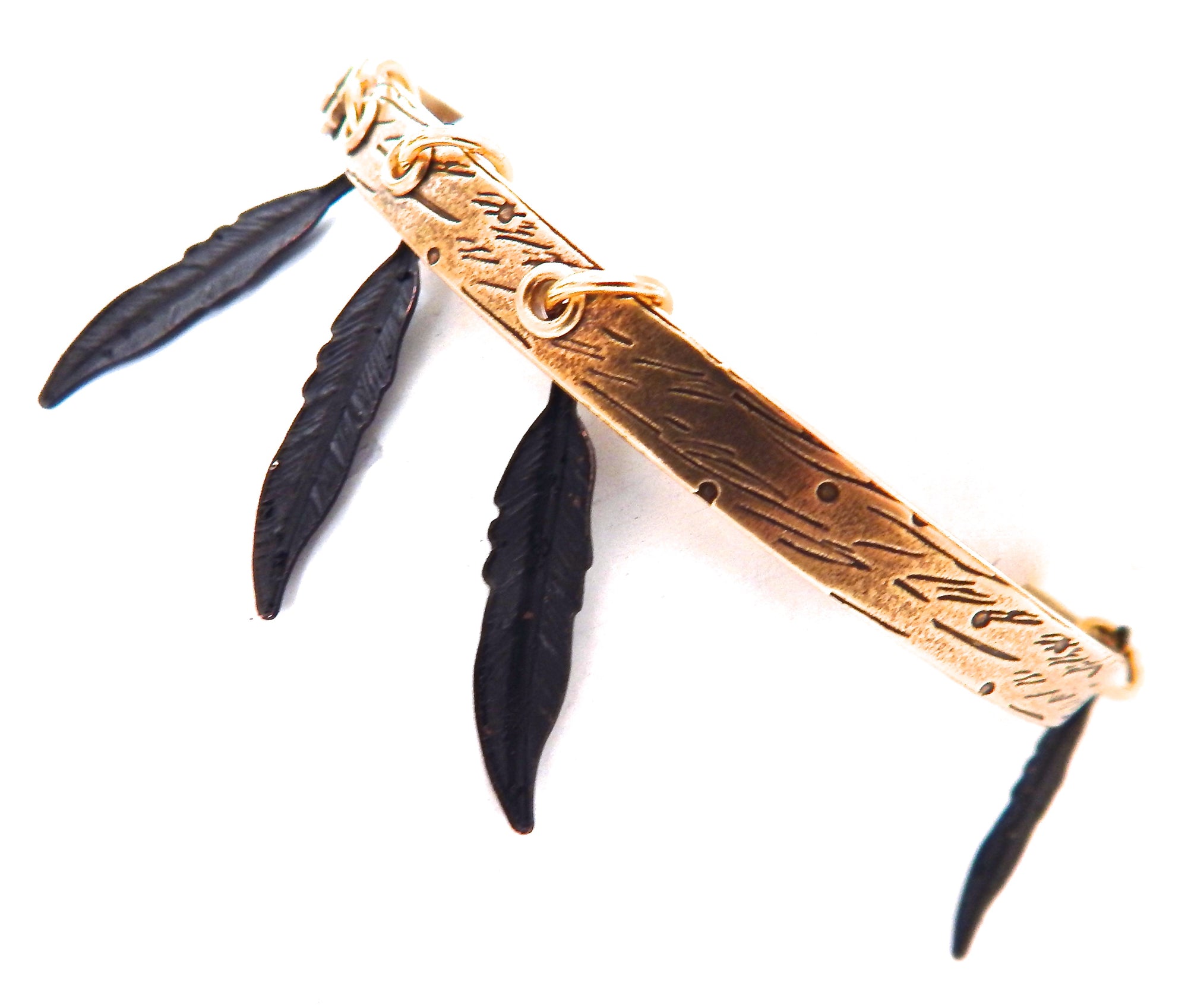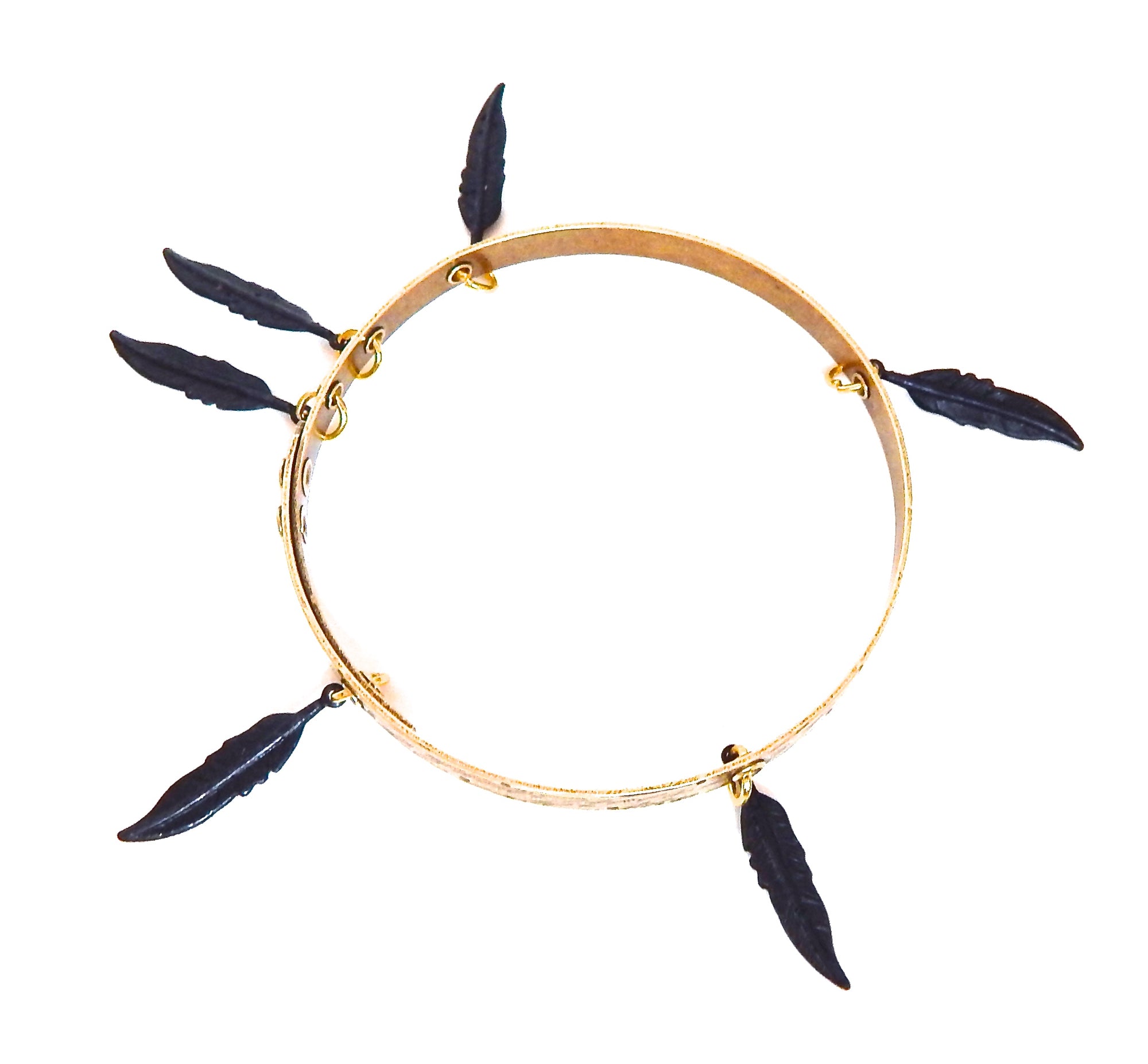 - 6 1 INCH FLAT BLACK BRASS PLATED FEATHER CHARMS