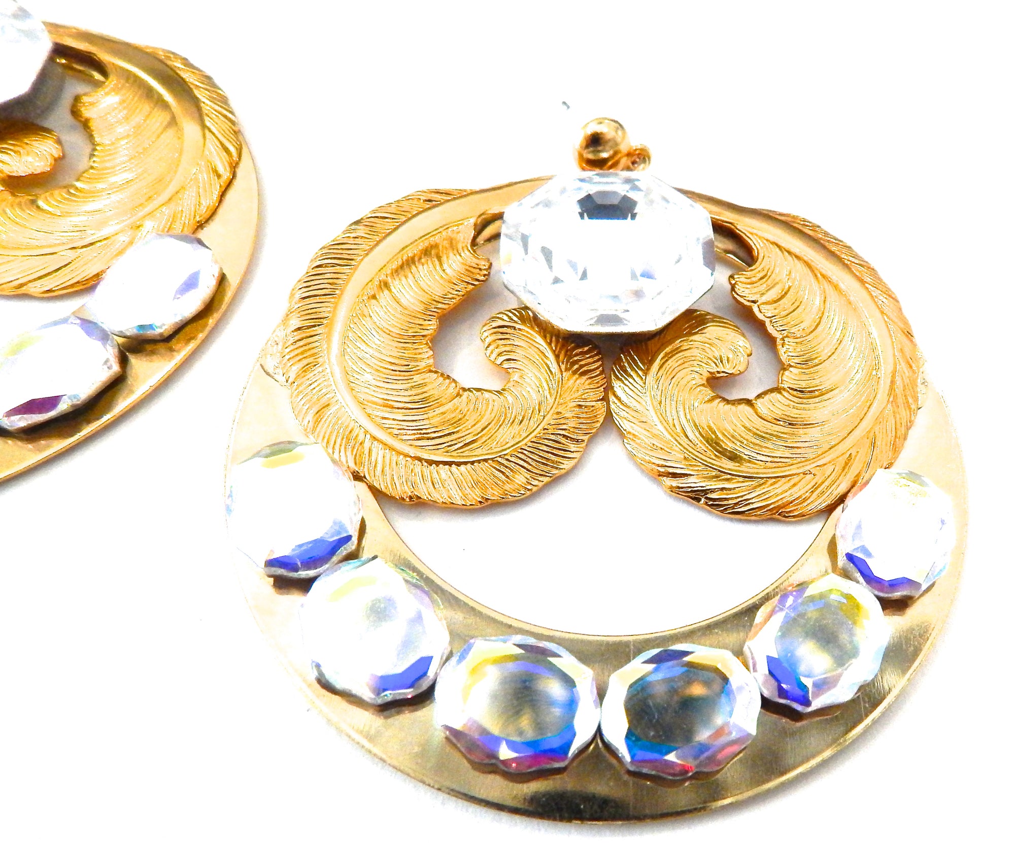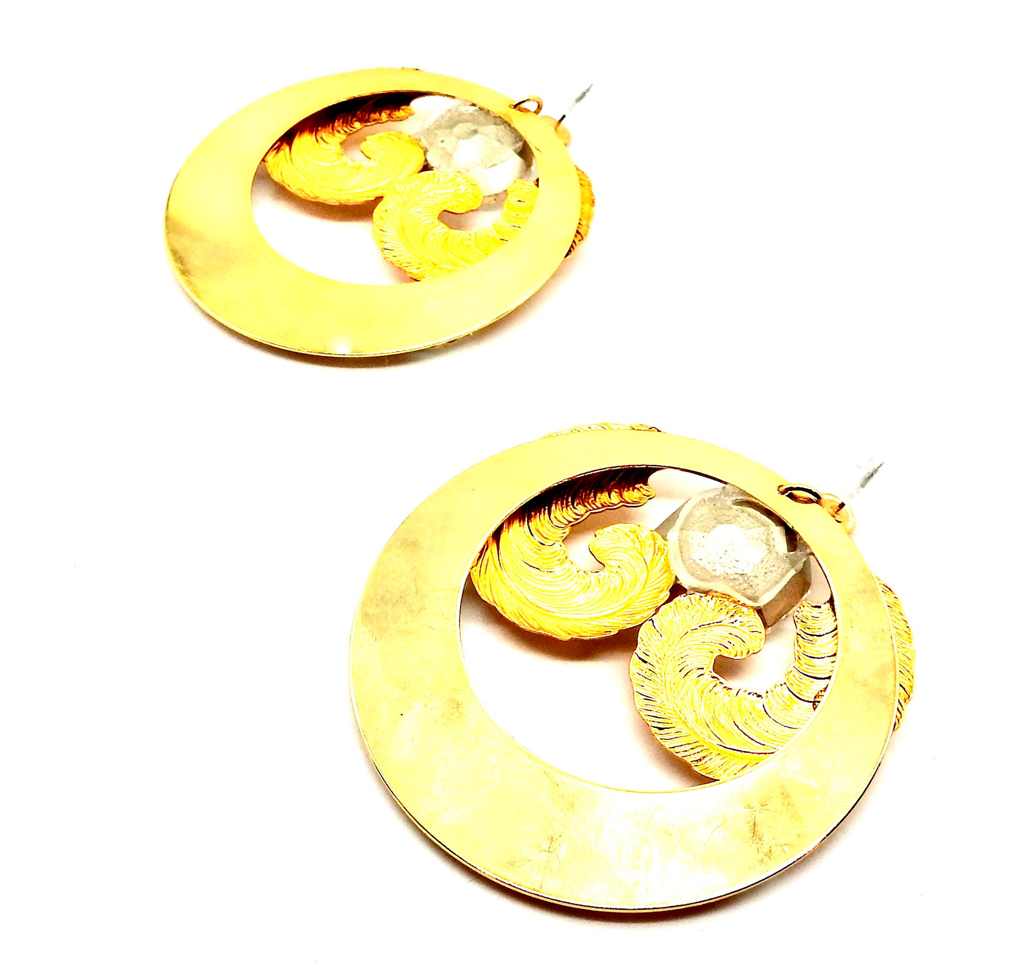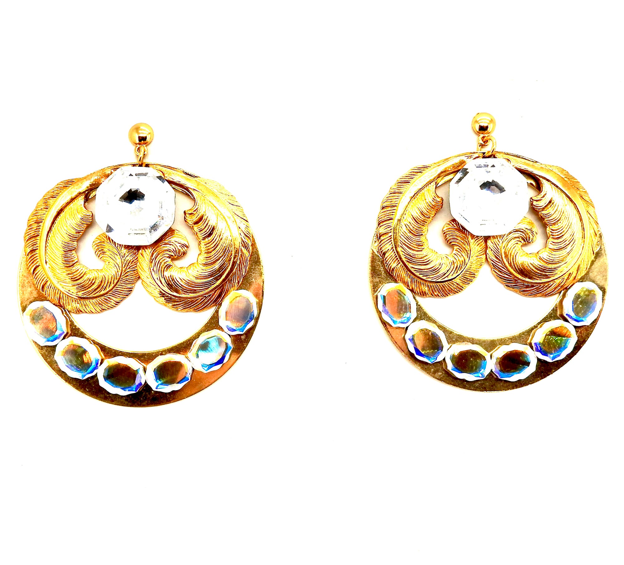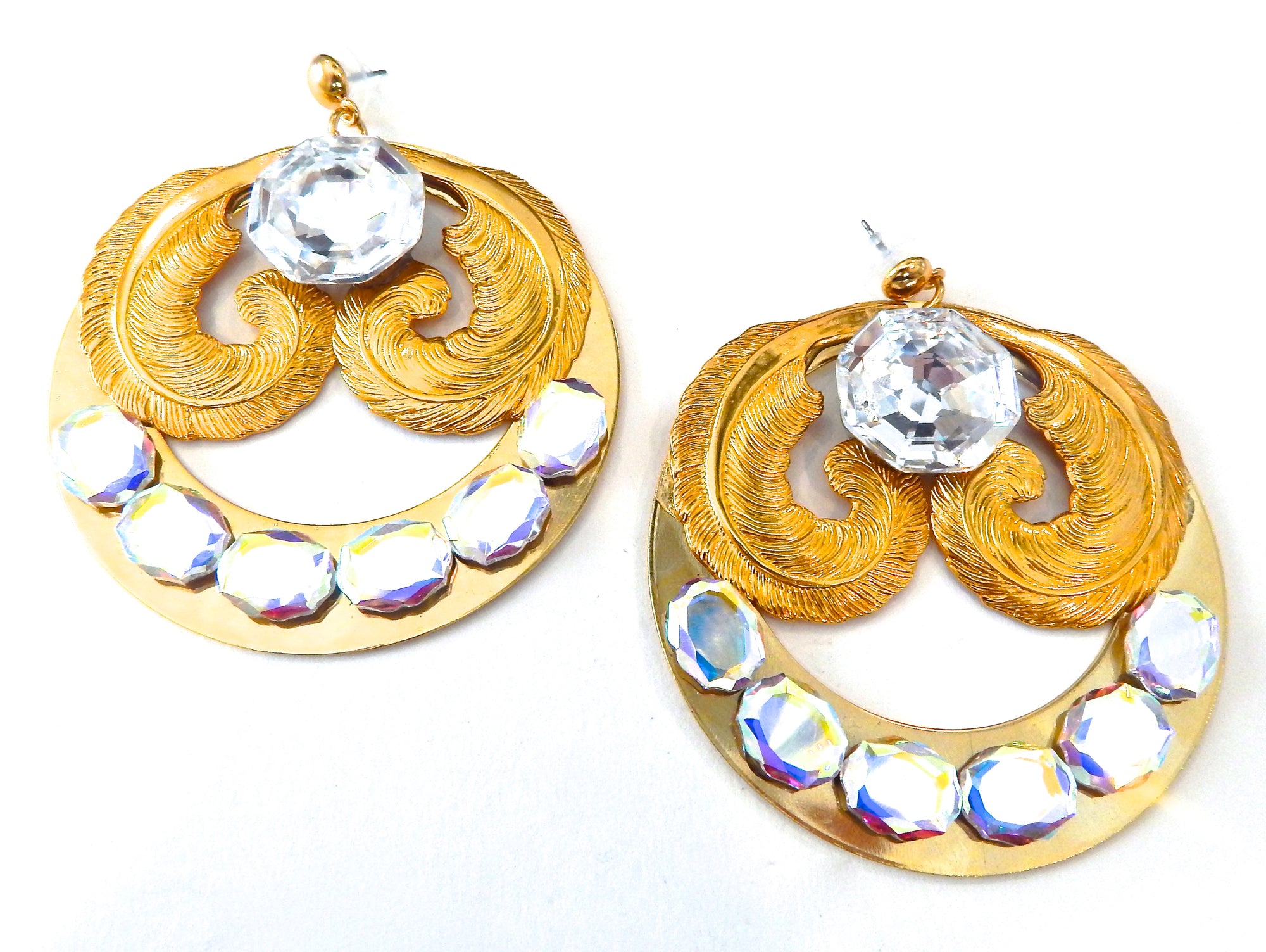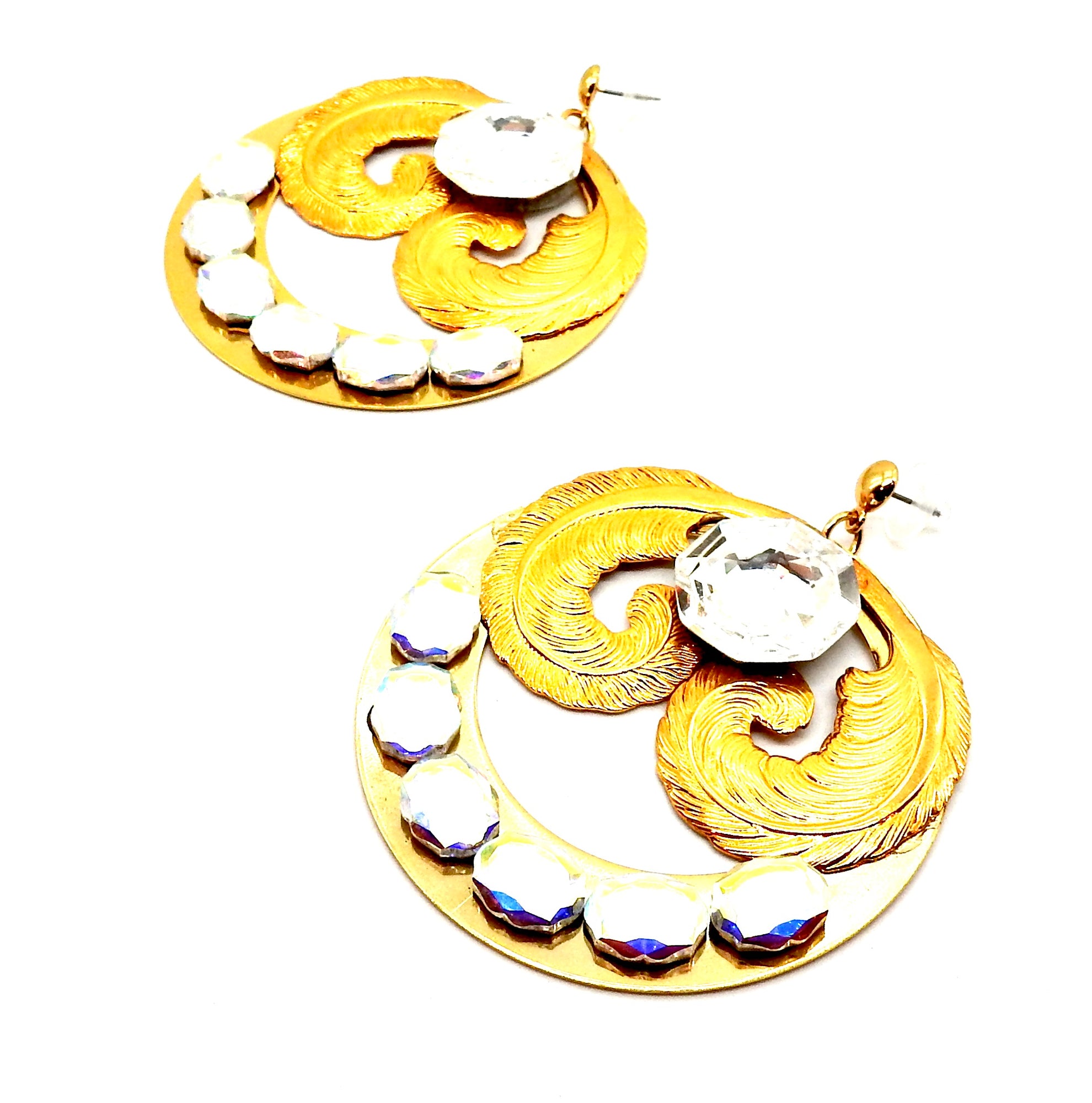 - GOLD TONE PLATED BRASS METAL HOOP EARRINGS & FEATHERS