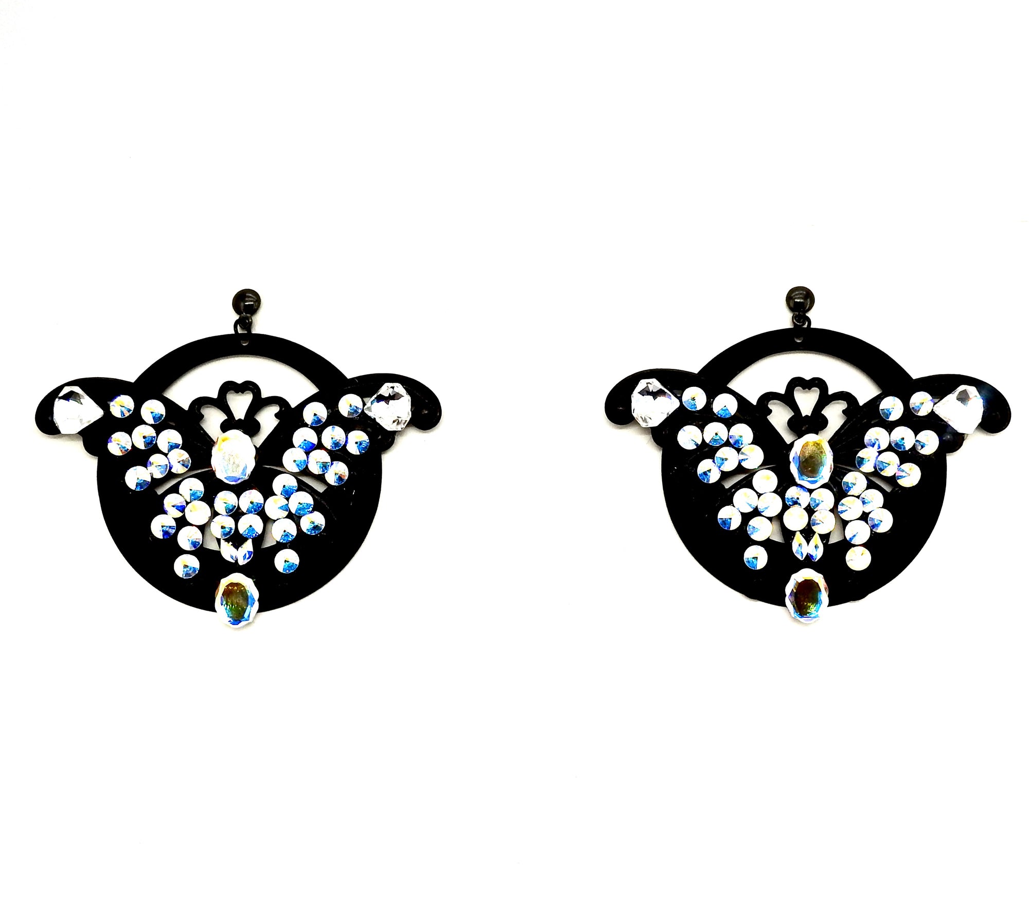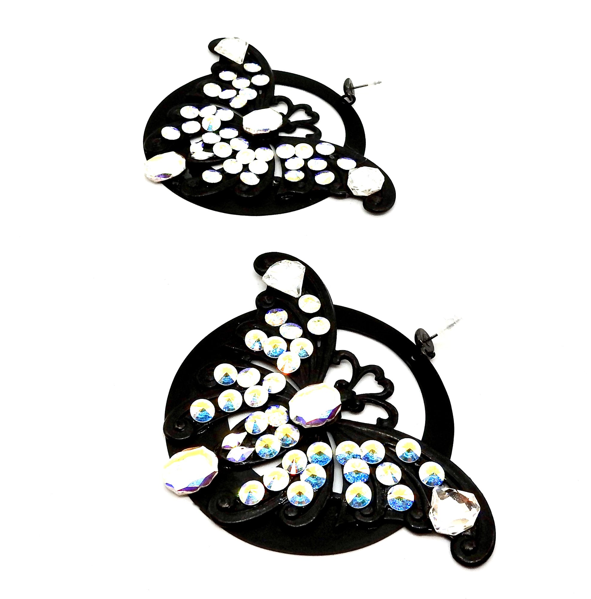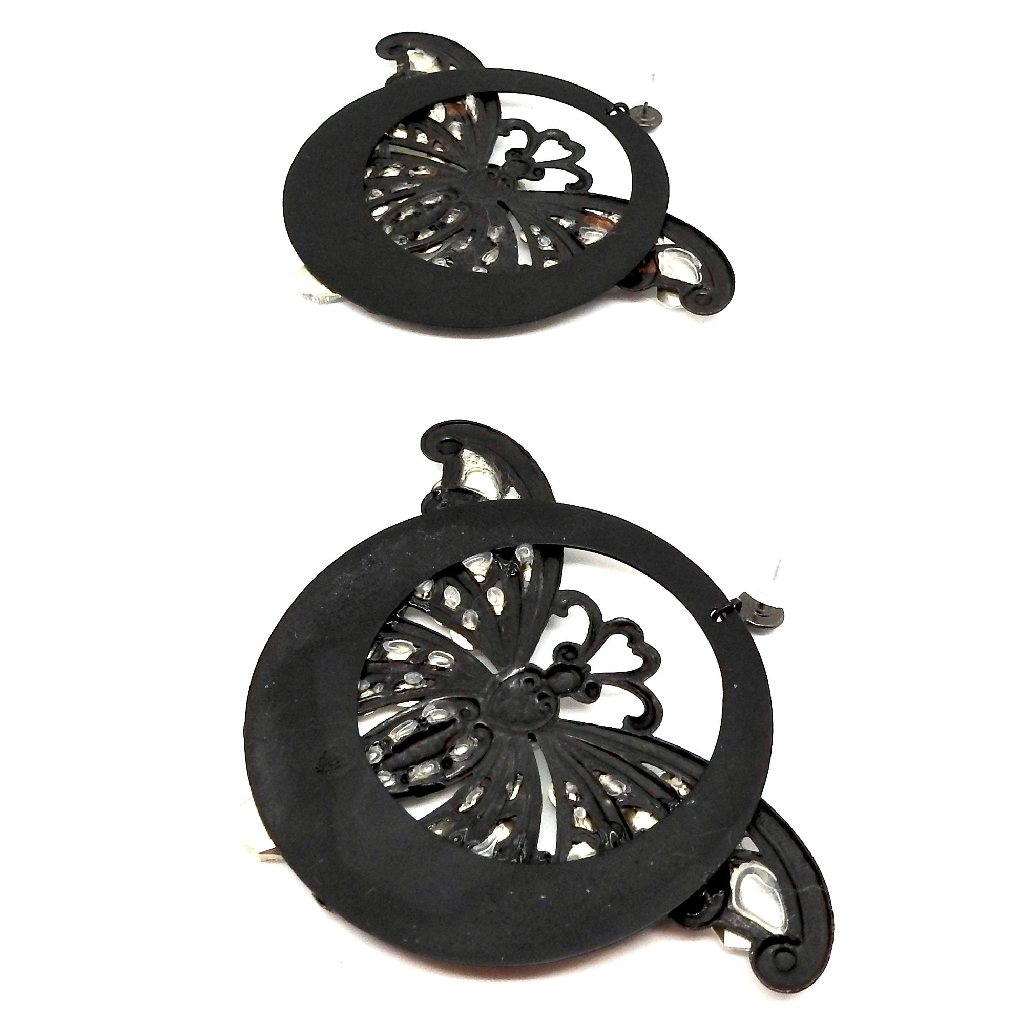 - FLAT BLACK BRASS METAL HOOPS & BUTTERFLY