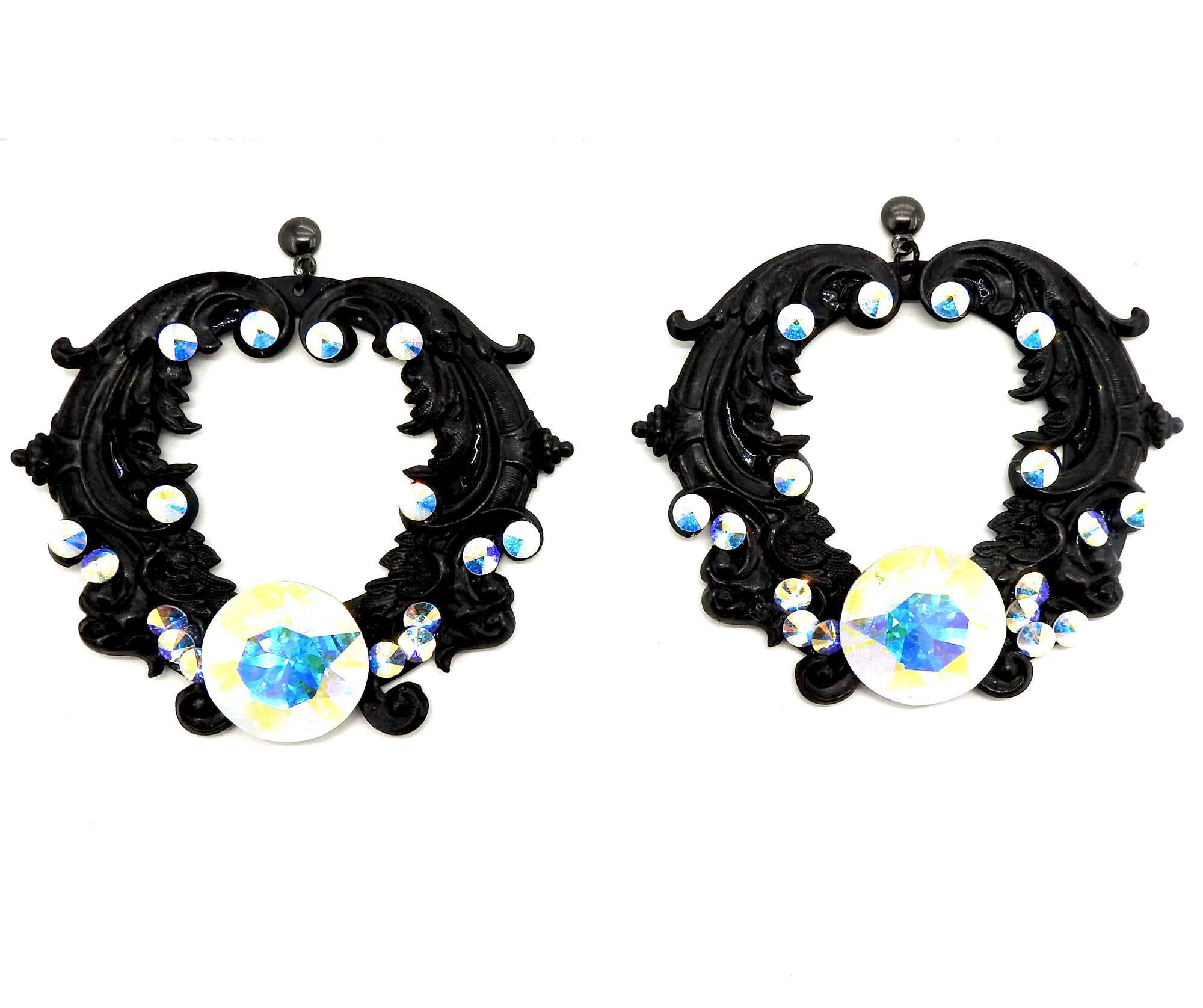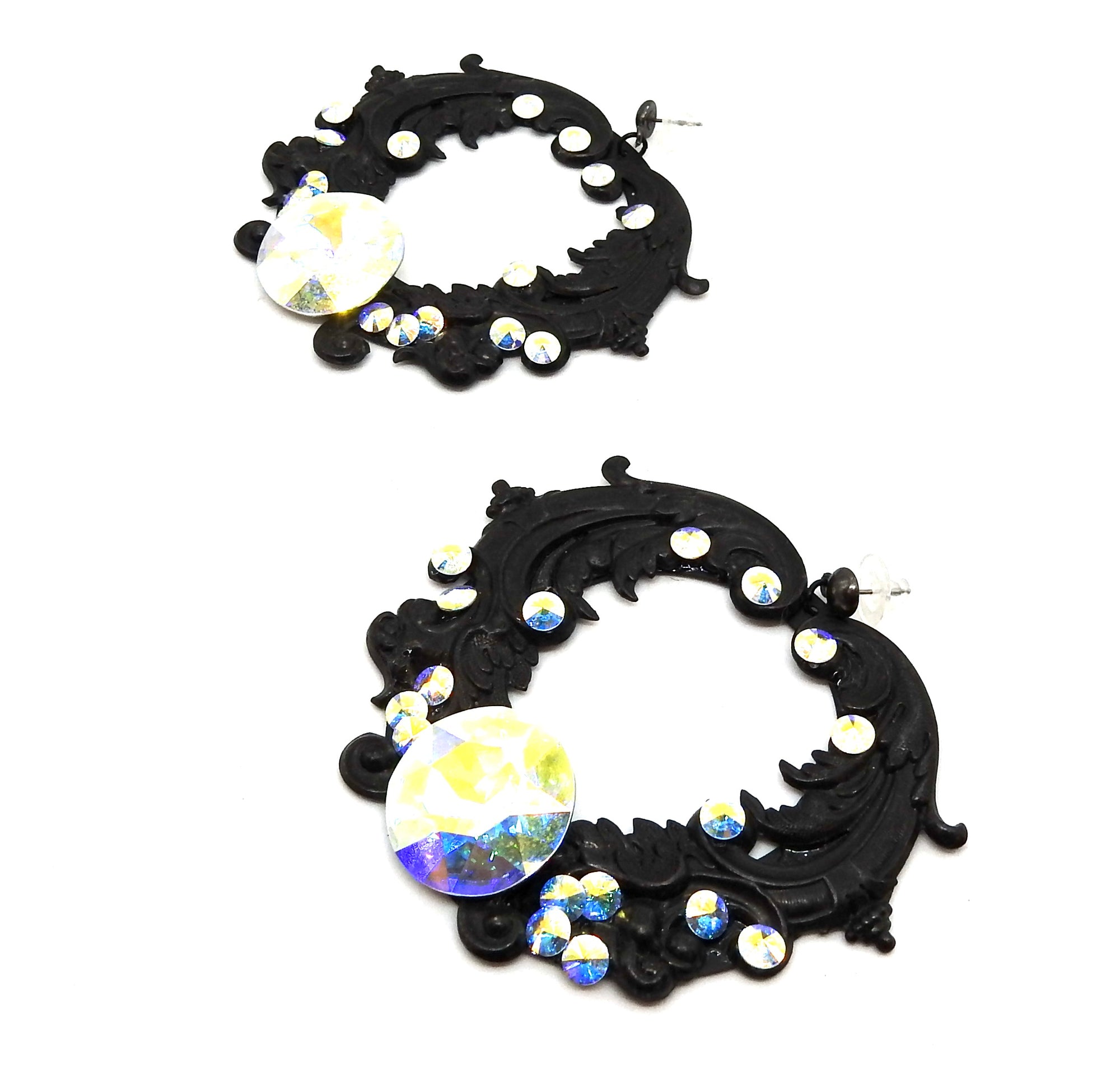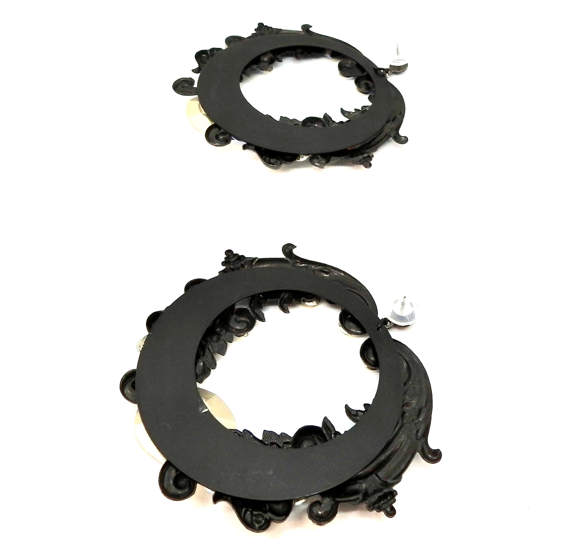 - FLAT BLACK PLATED BRASS METAL HOOP EARRINGS & SCROLLS
