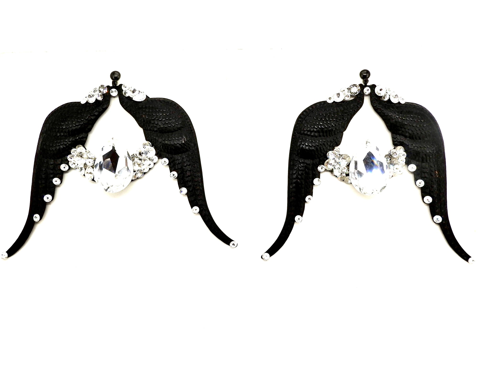 - FLAT BLACK PLATED BRASS METAL HOOPS & WINGS