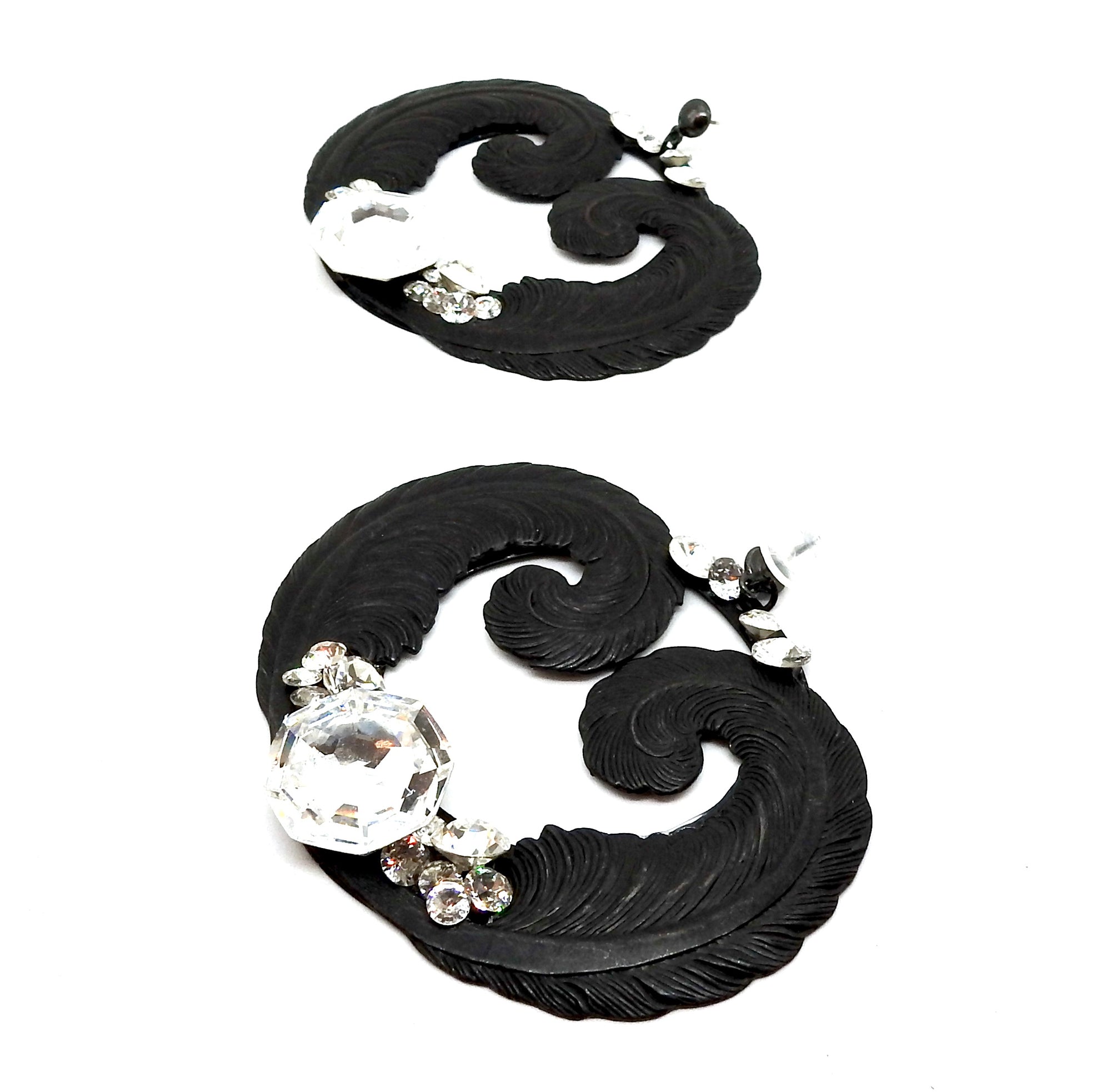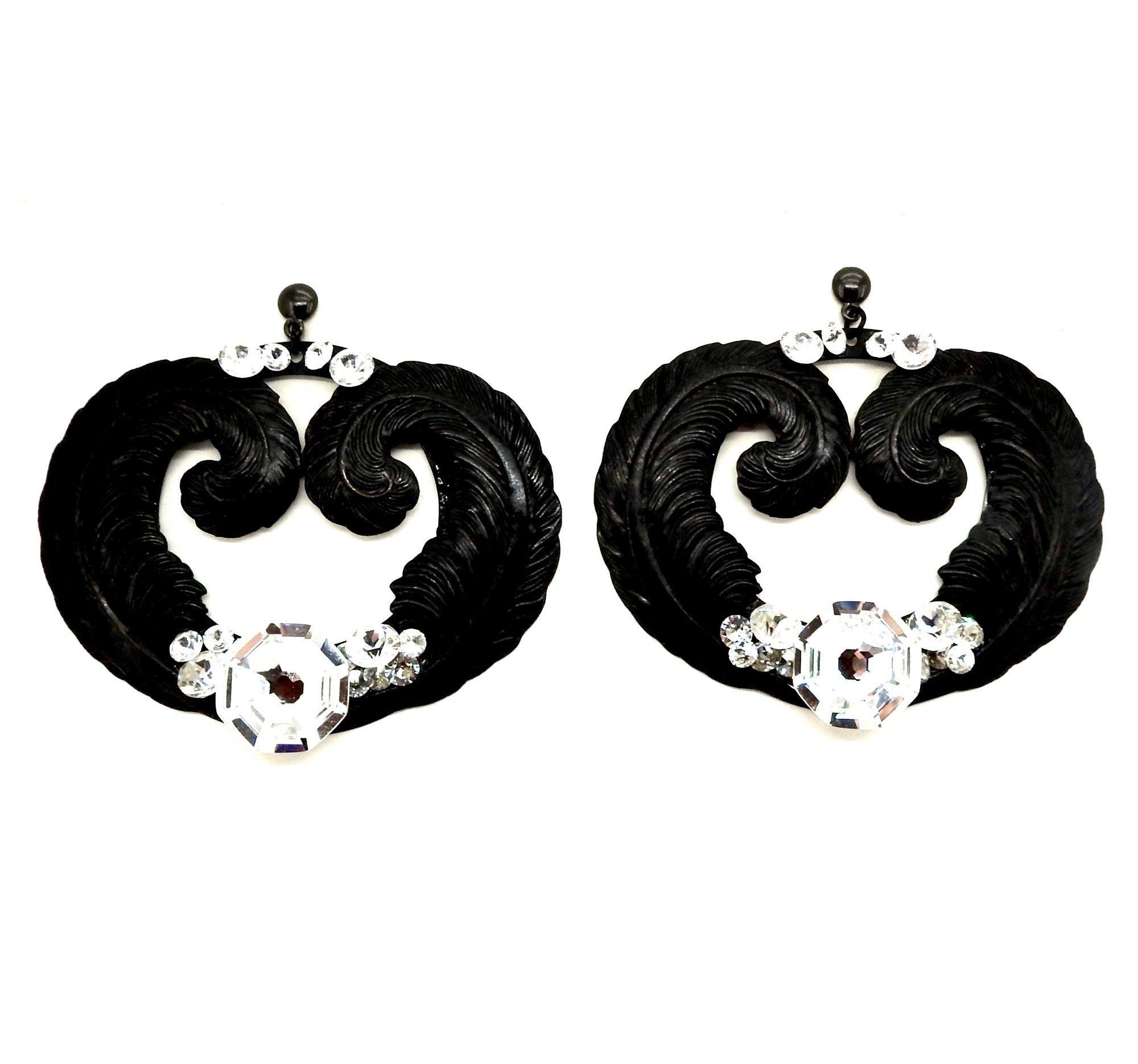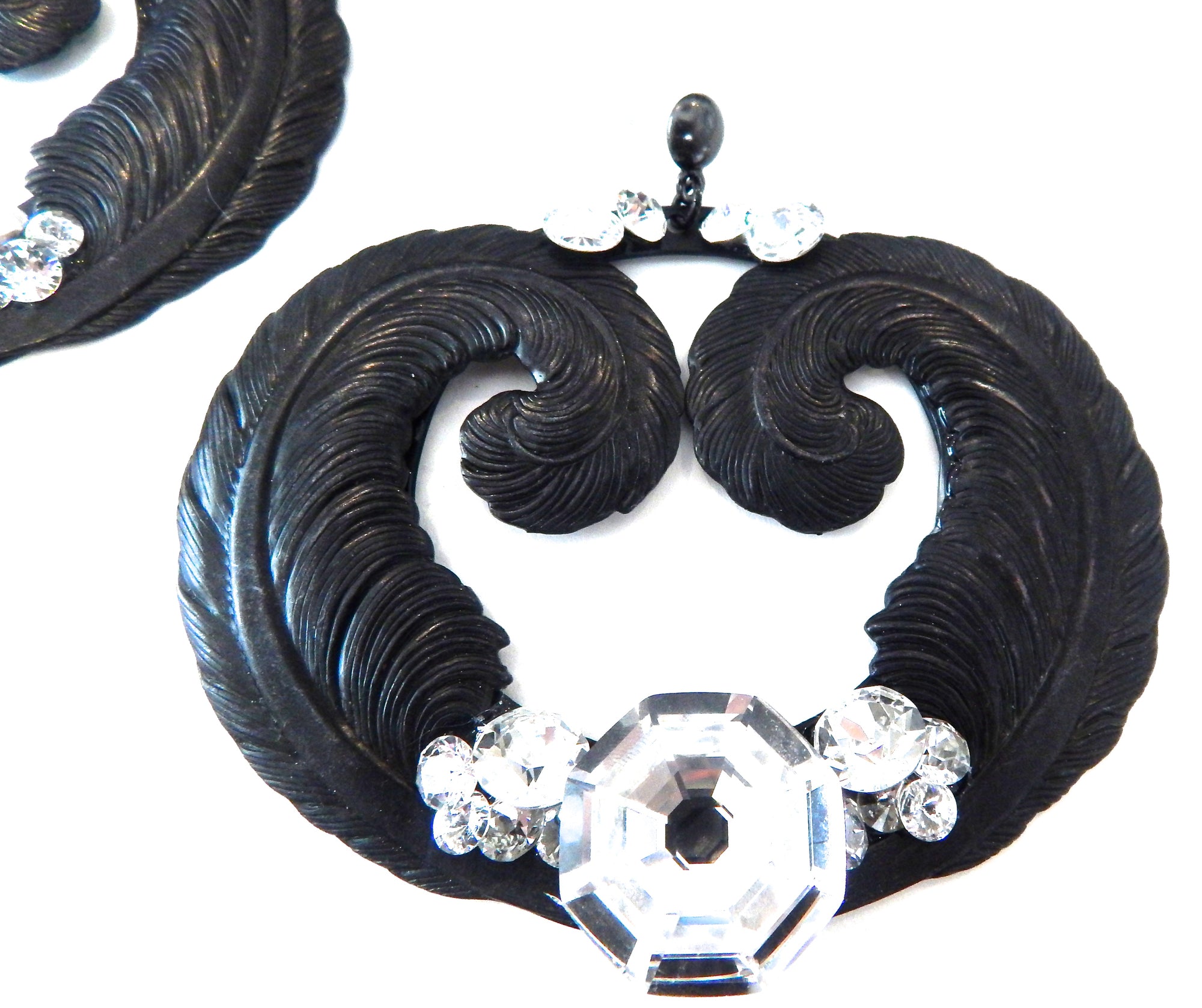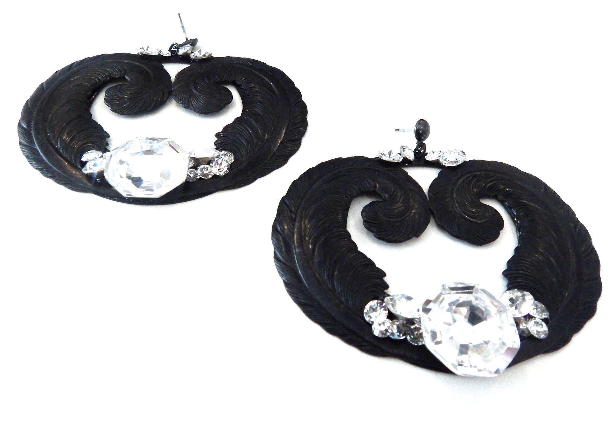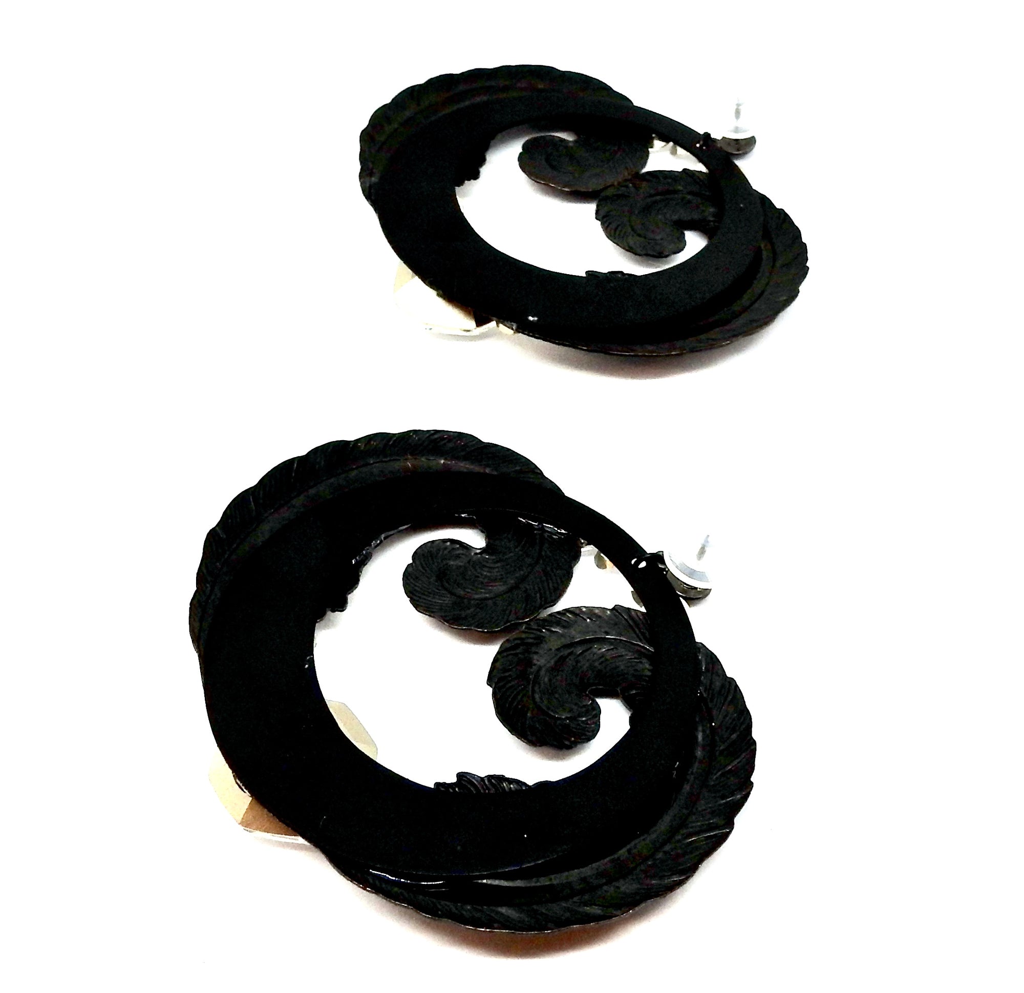 - FLAT BLACK PLATED BRASS METAL HOOP EARRINGS & FEATHERS