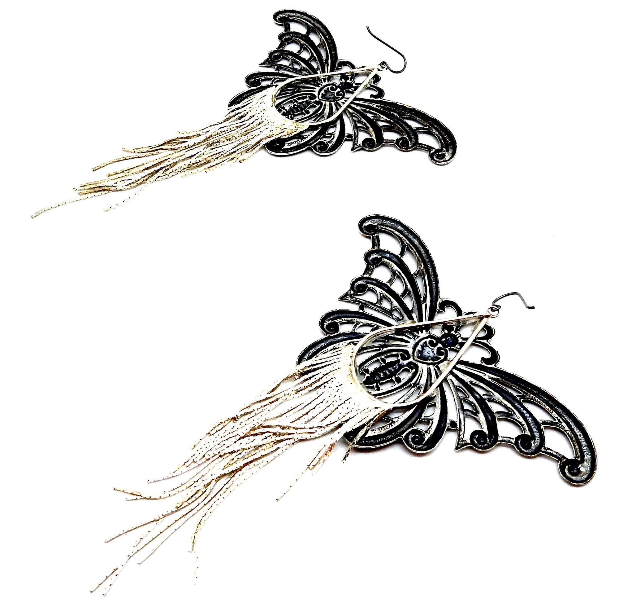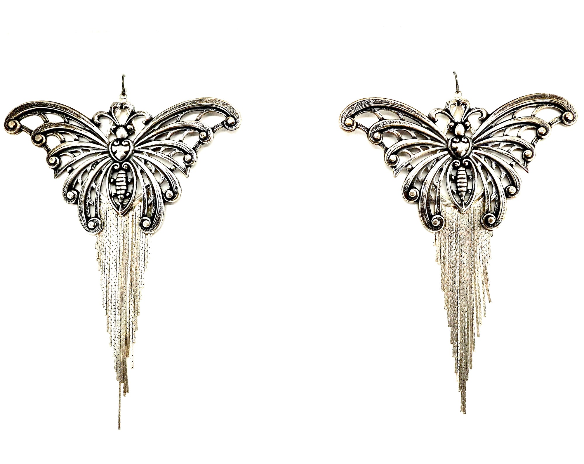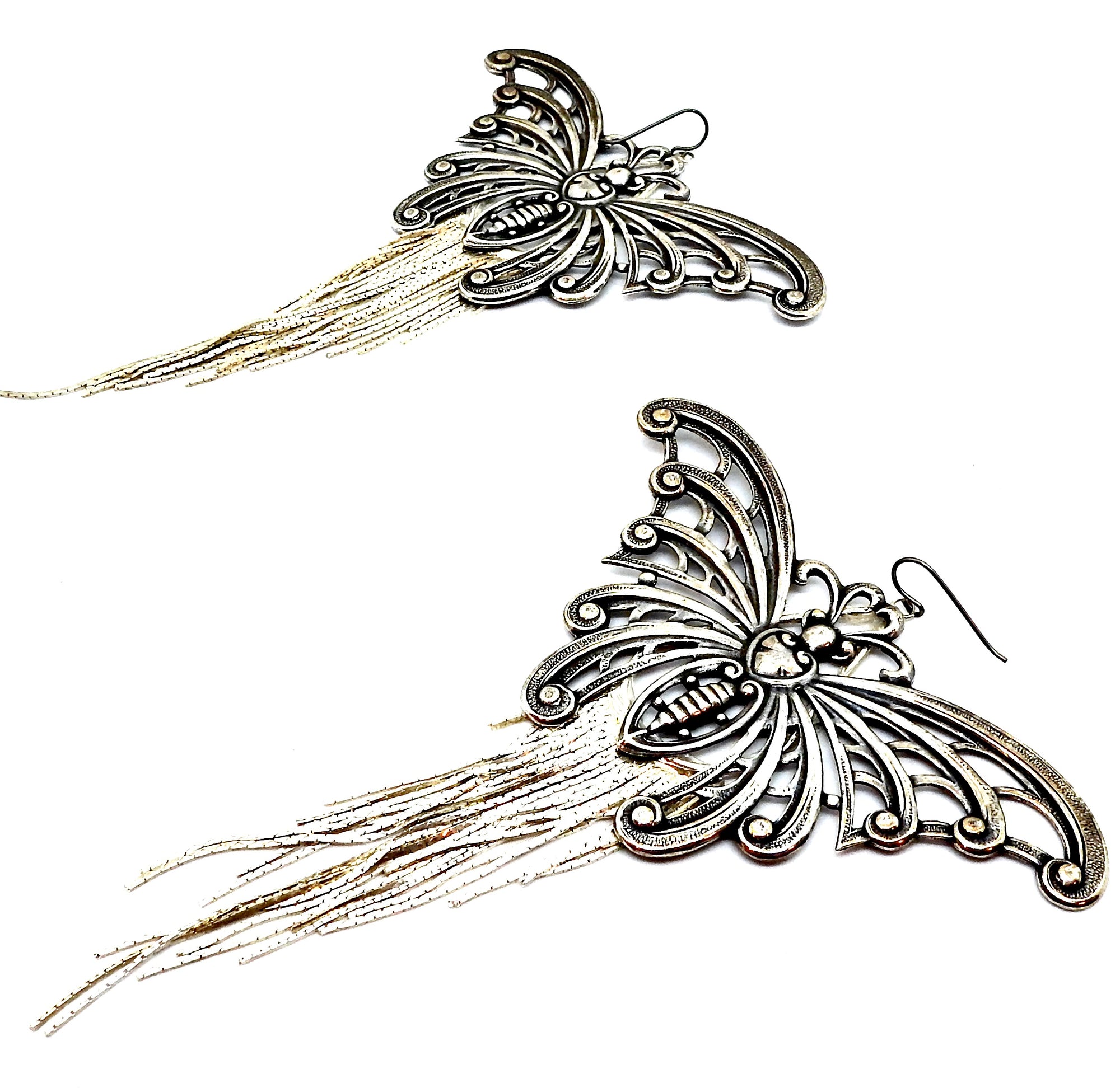 WESTRAY SILVER BUTTERFLY KNIFE FRINGE EARRINGS
