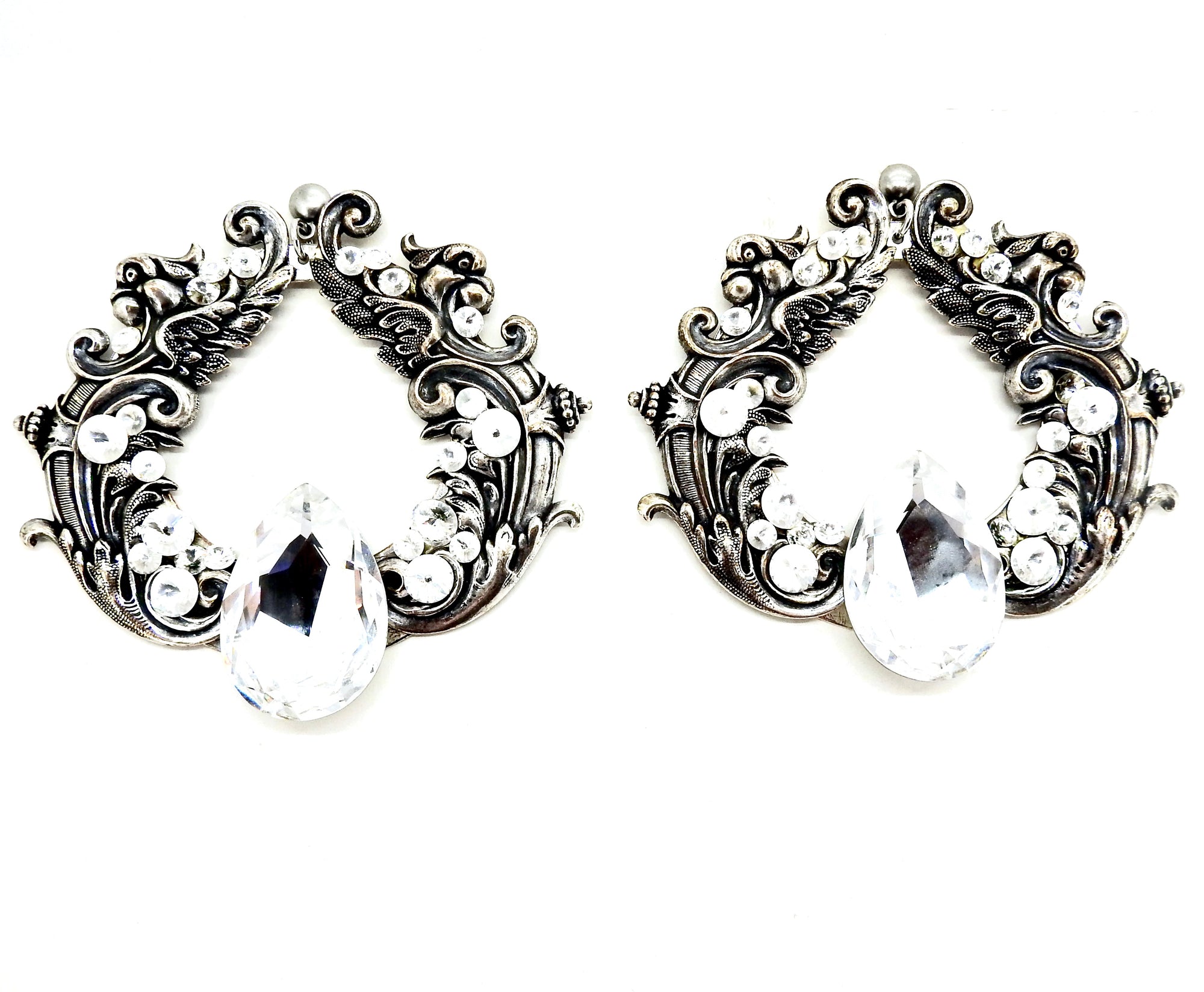 SILVER TONE PLATED BRASS METAL HOOP EARRINGS & SCROLLS
